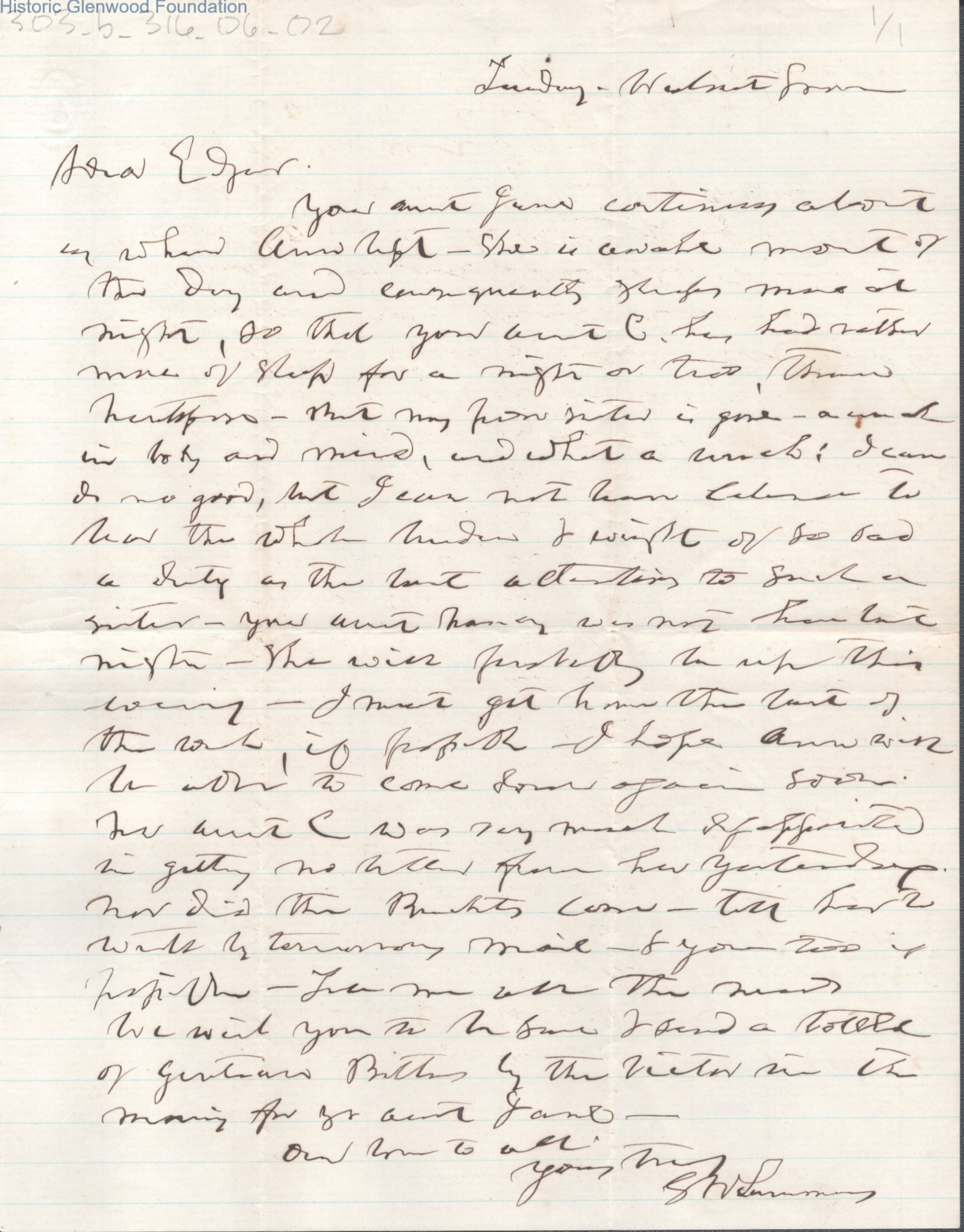 Single page letter from Judge George Summers to A. E. Summers ("Edgar"), no date.