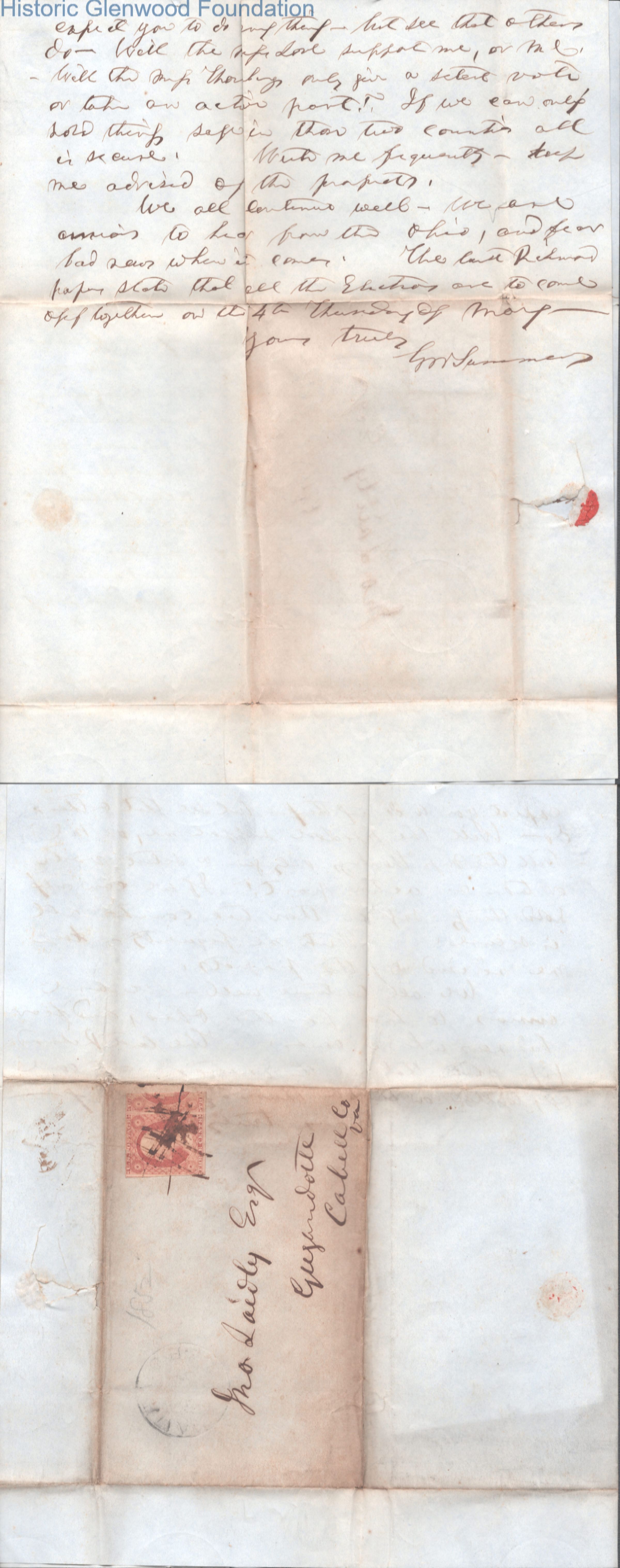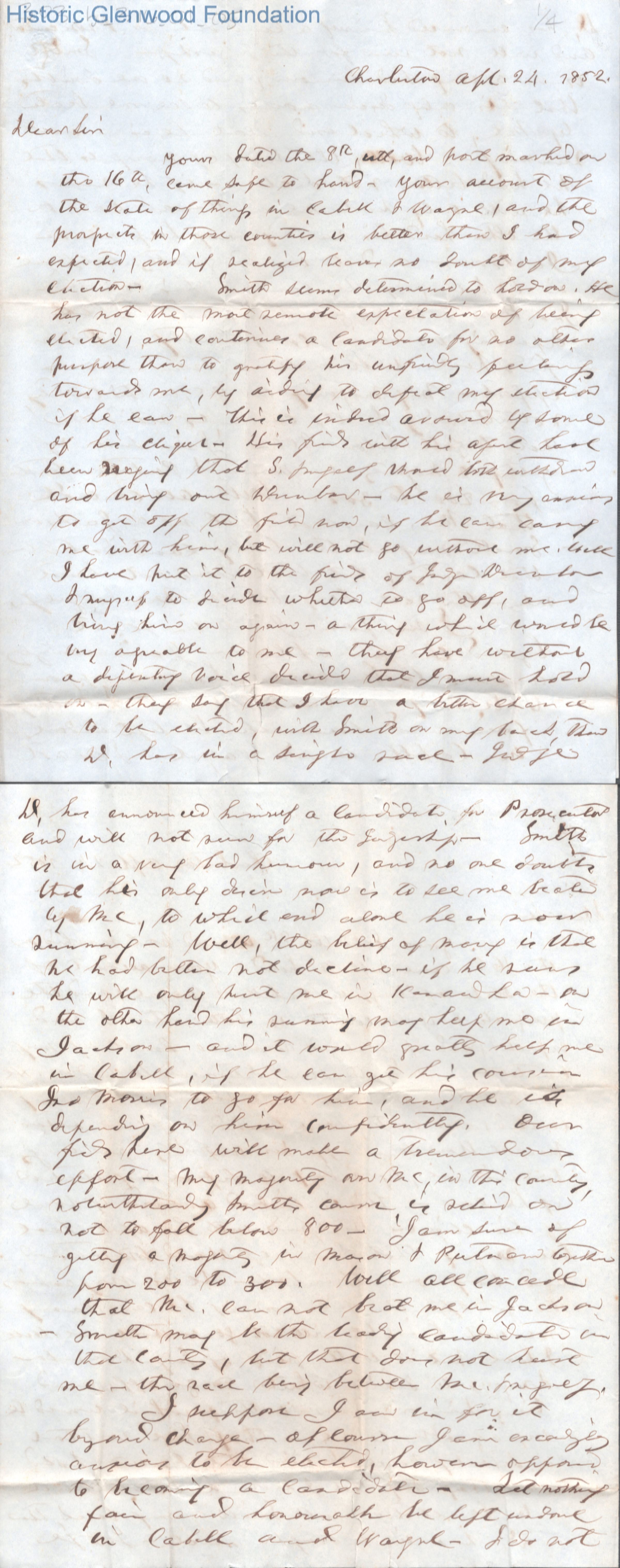 Three-page letter from Judge George Summers to father-in-law John O. Laidley, Apr 24, 1852.