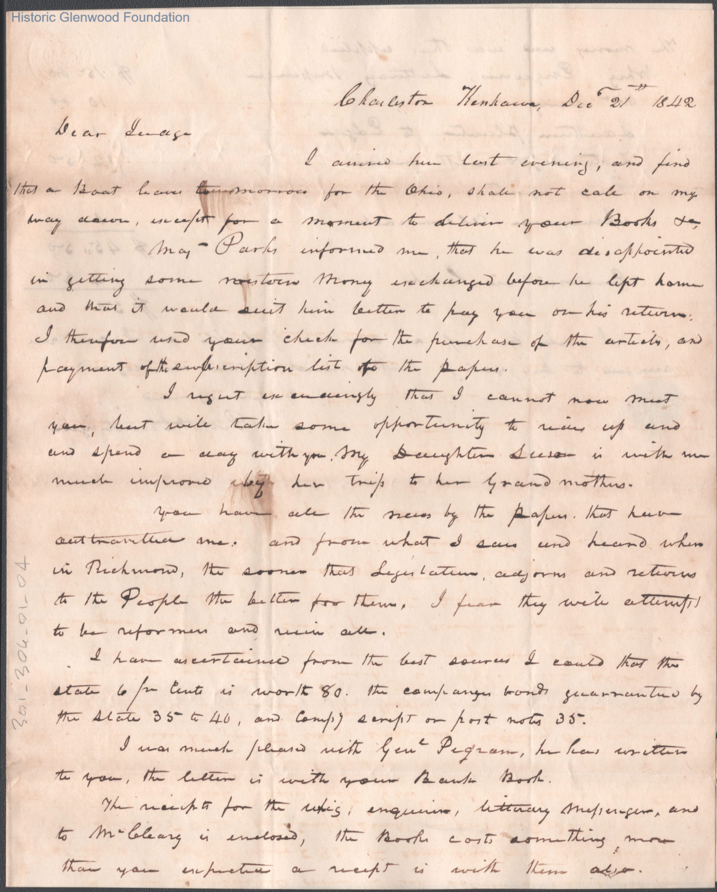 Handwritten letter to Judge Lewis Summers, author's name illegible