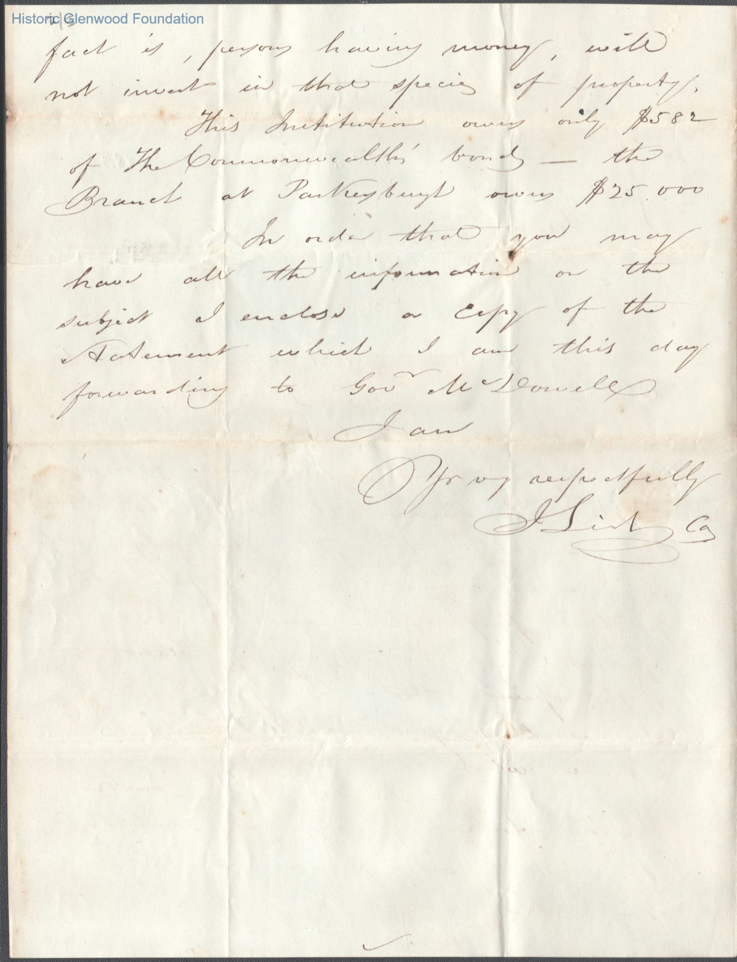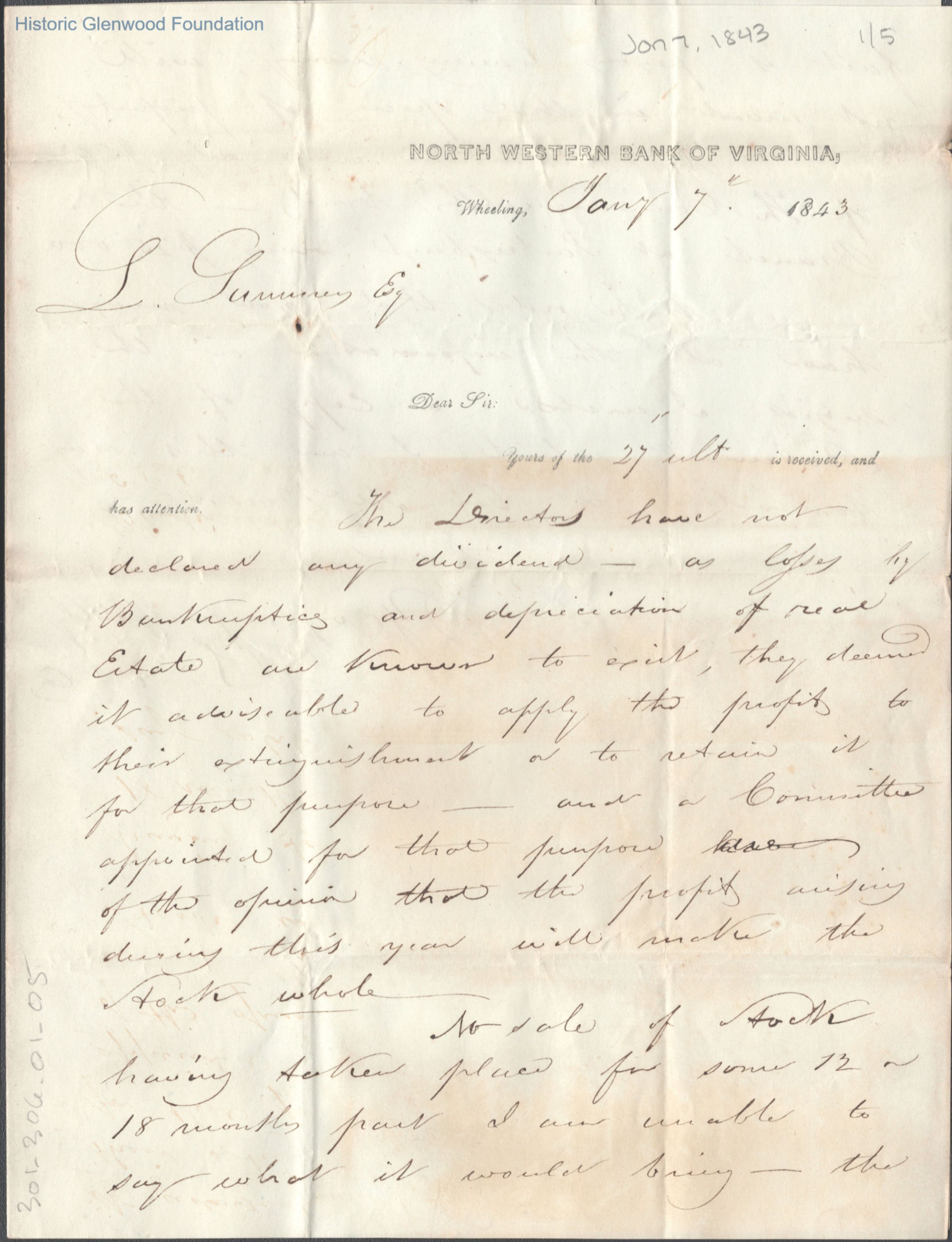 Handwritten 1843 letter to Judge Lewis Summers from unknown author