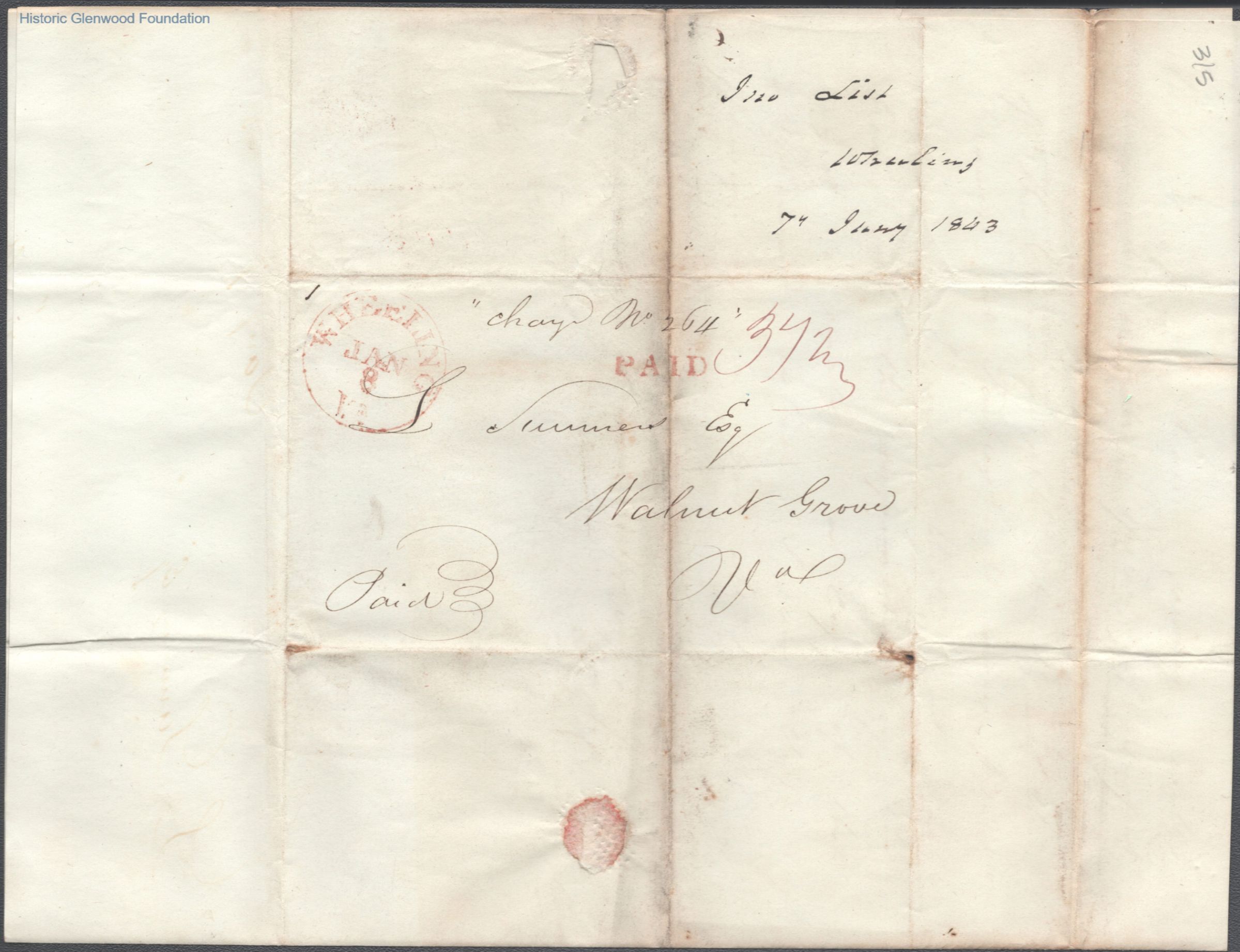 Judge Lewis Summers; 1843 letter, from unknown author