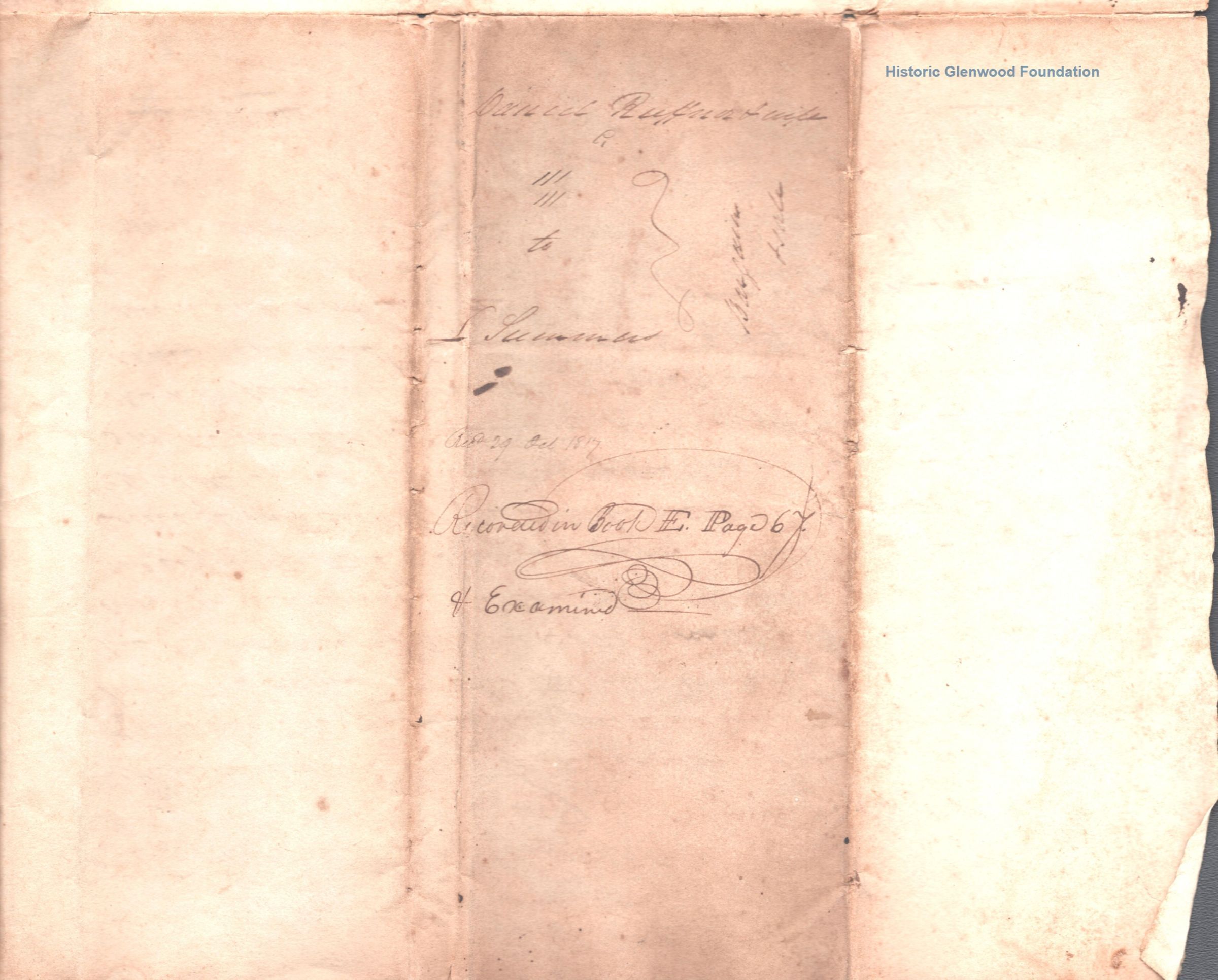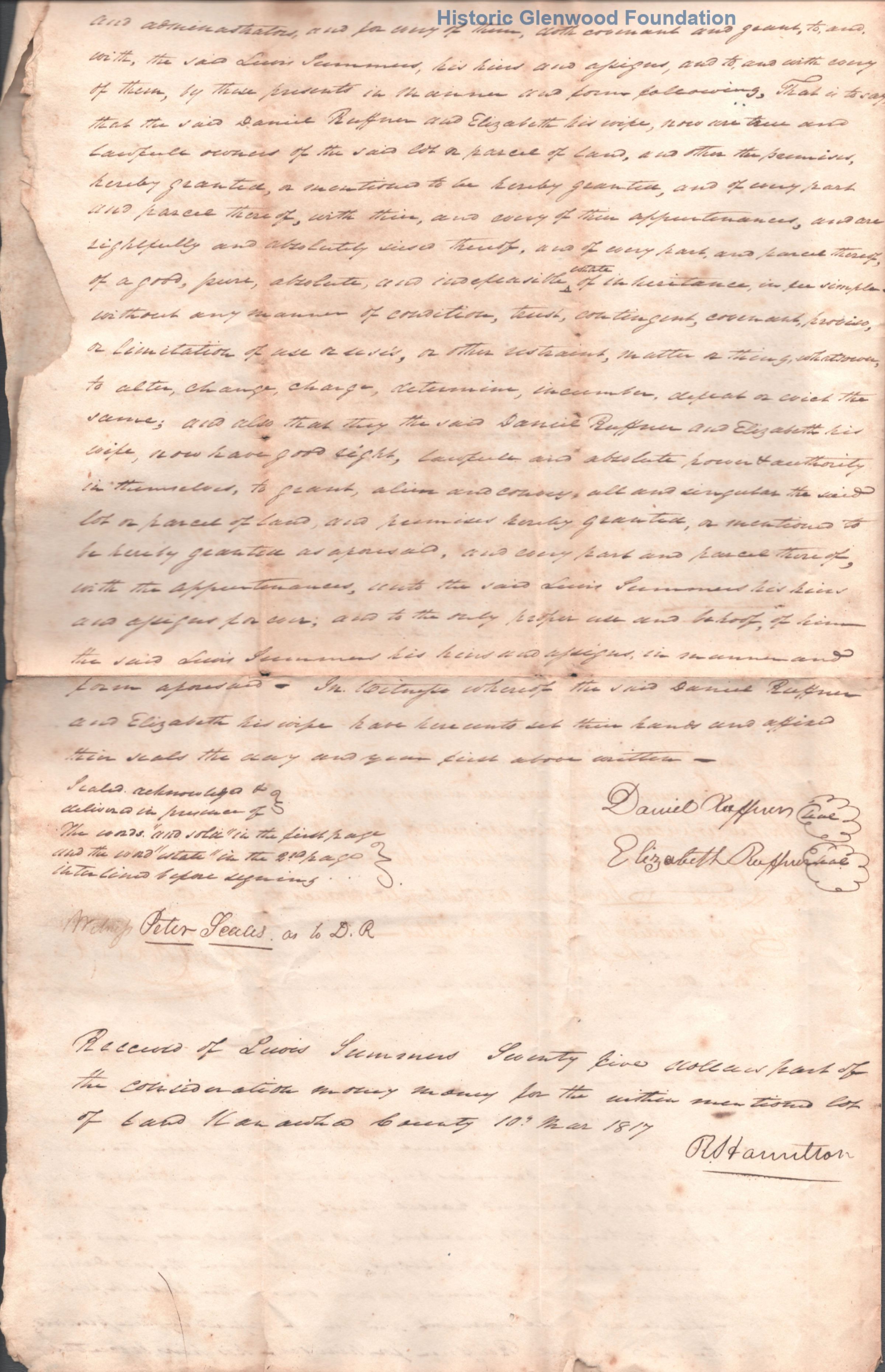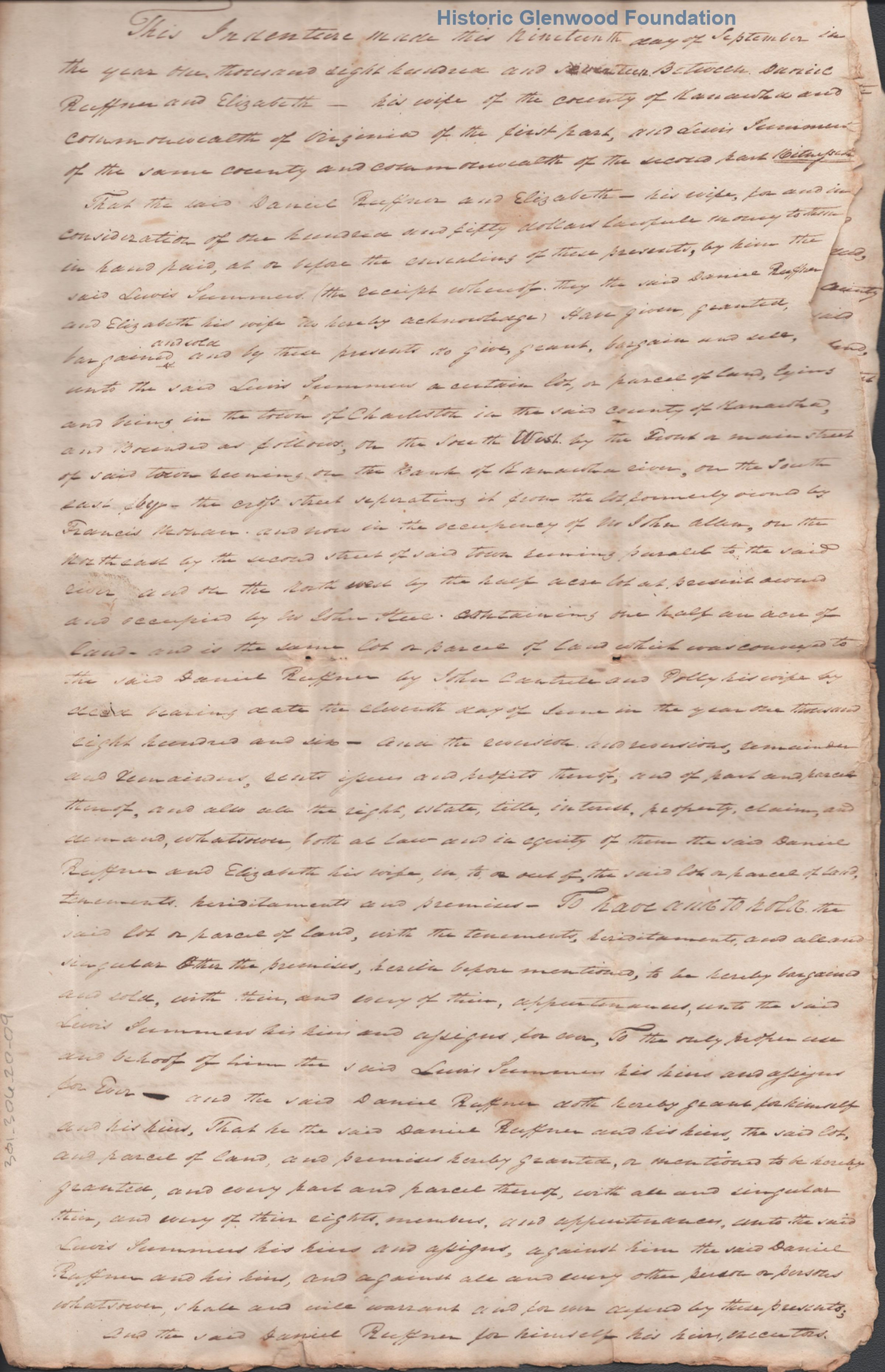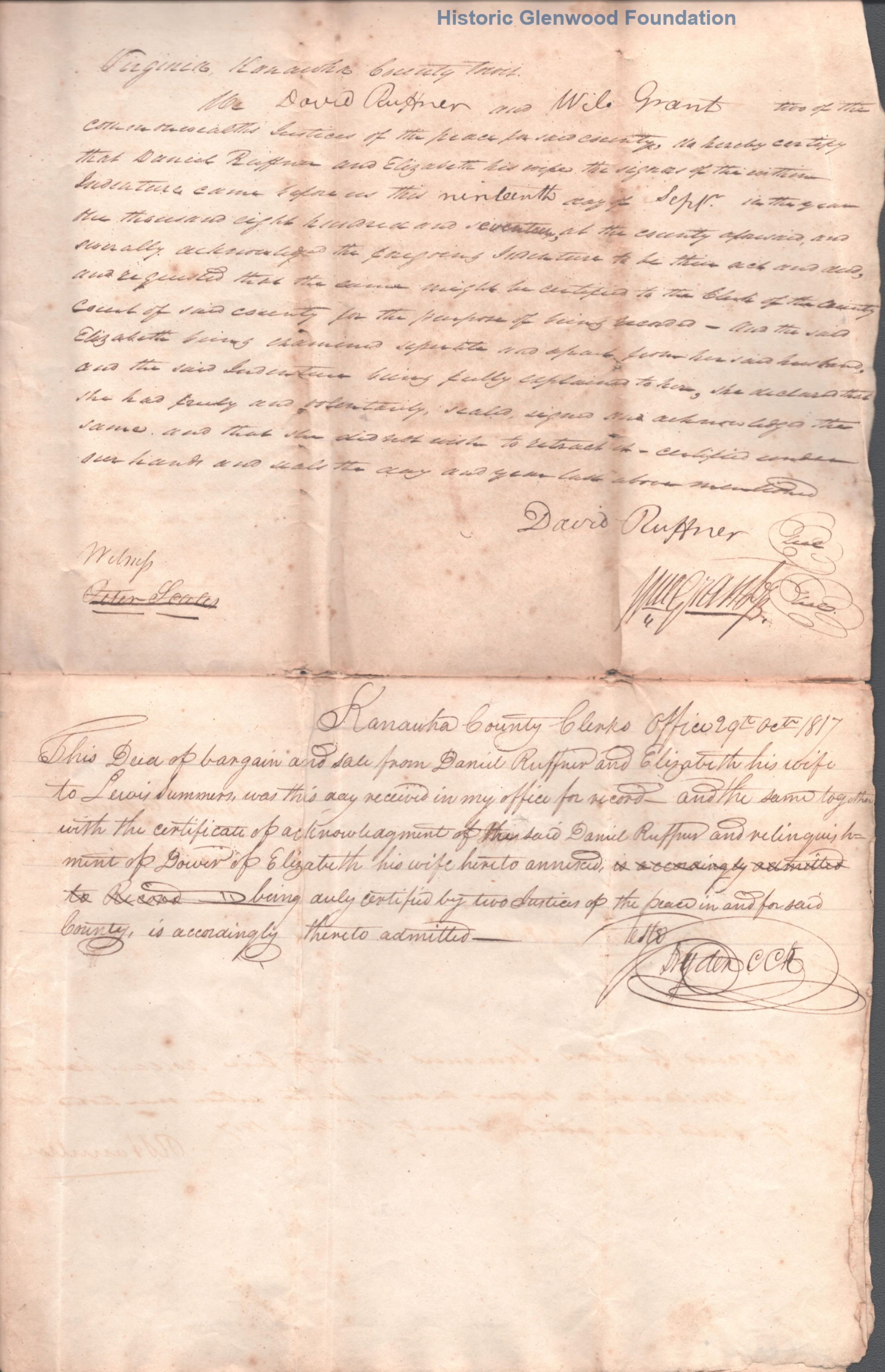 Judge Lewis Summers, property transfer, Daniel & Elizabeth Ruffner, September 19, 1817Entry/Object ID