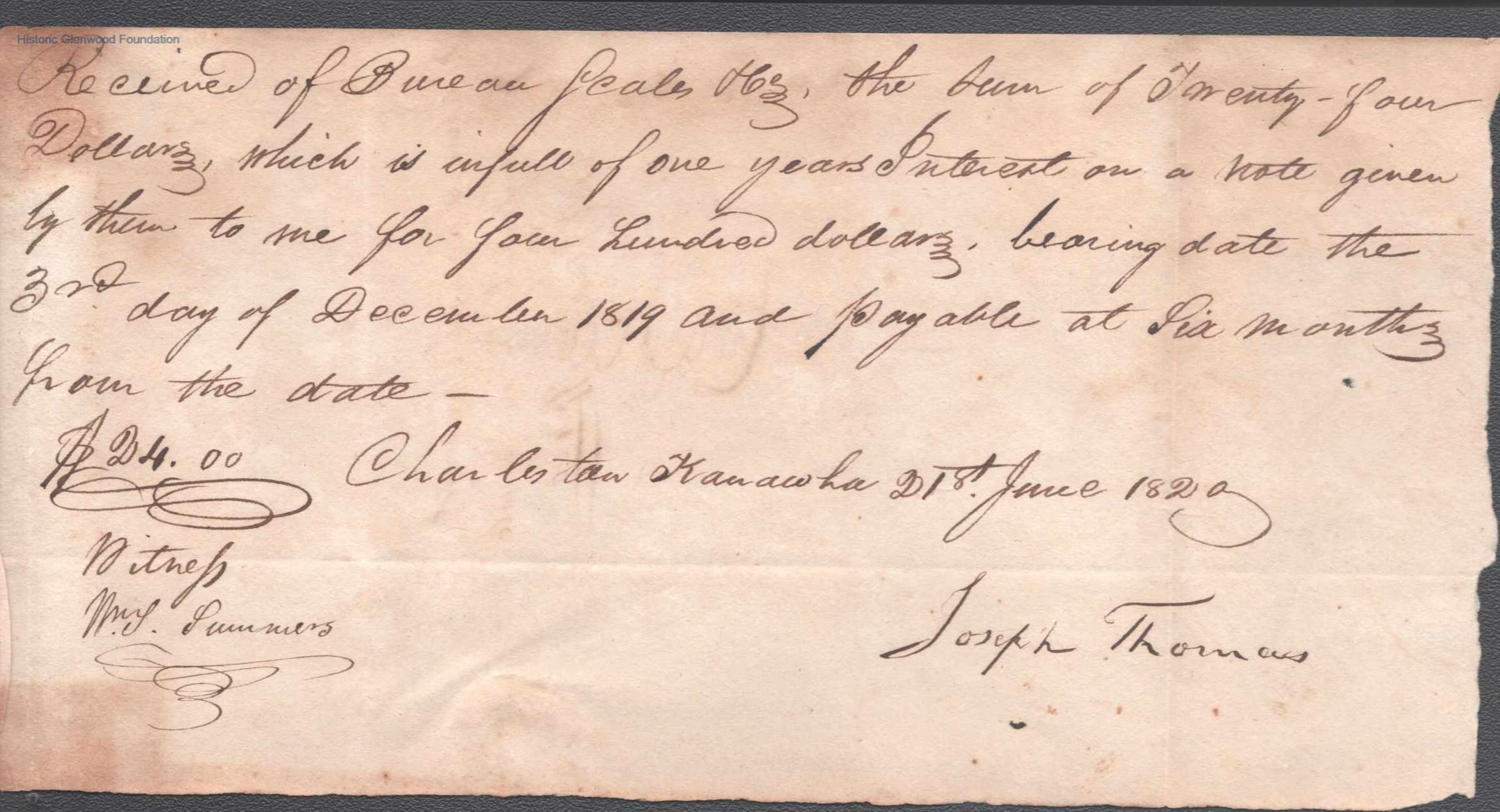 Judge Lewis Summers, ephemera from Bureau & Scales receipt book 1819-1820