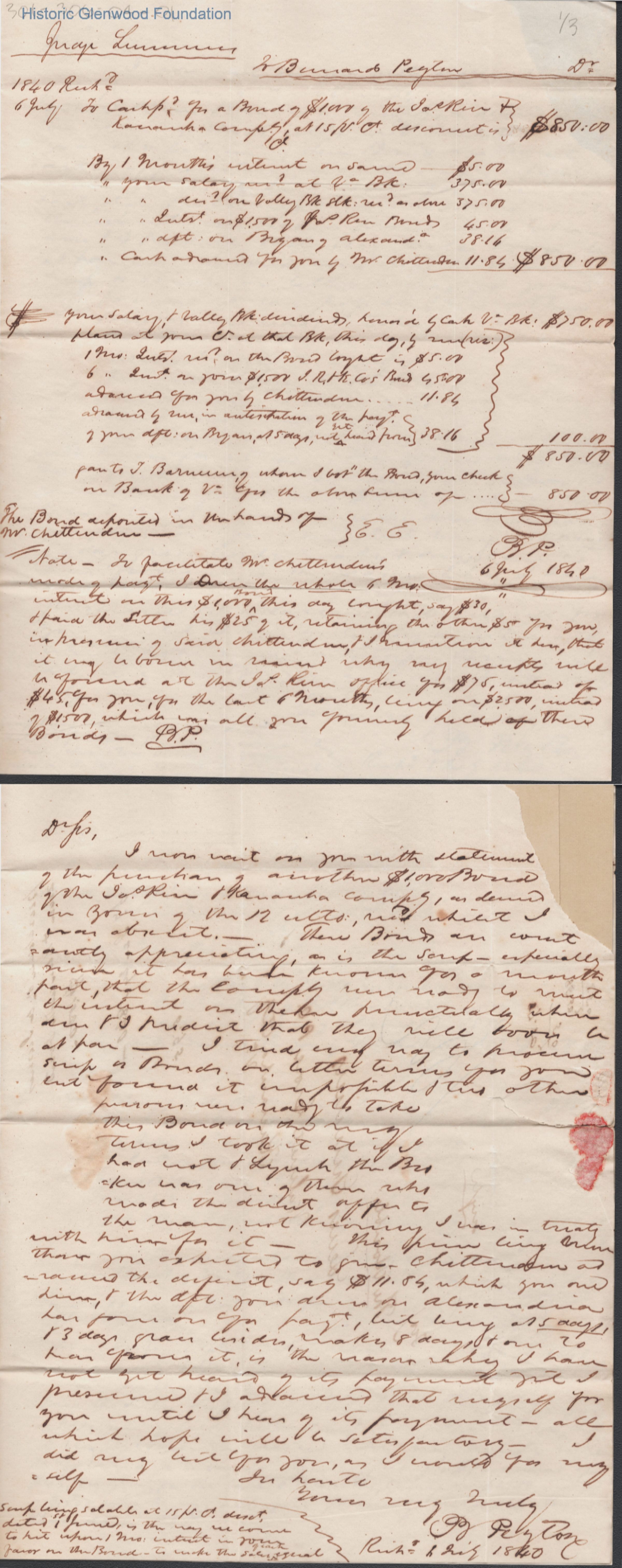 Financial statement & single page letter to Judge Lewis Summers from B. Peyton