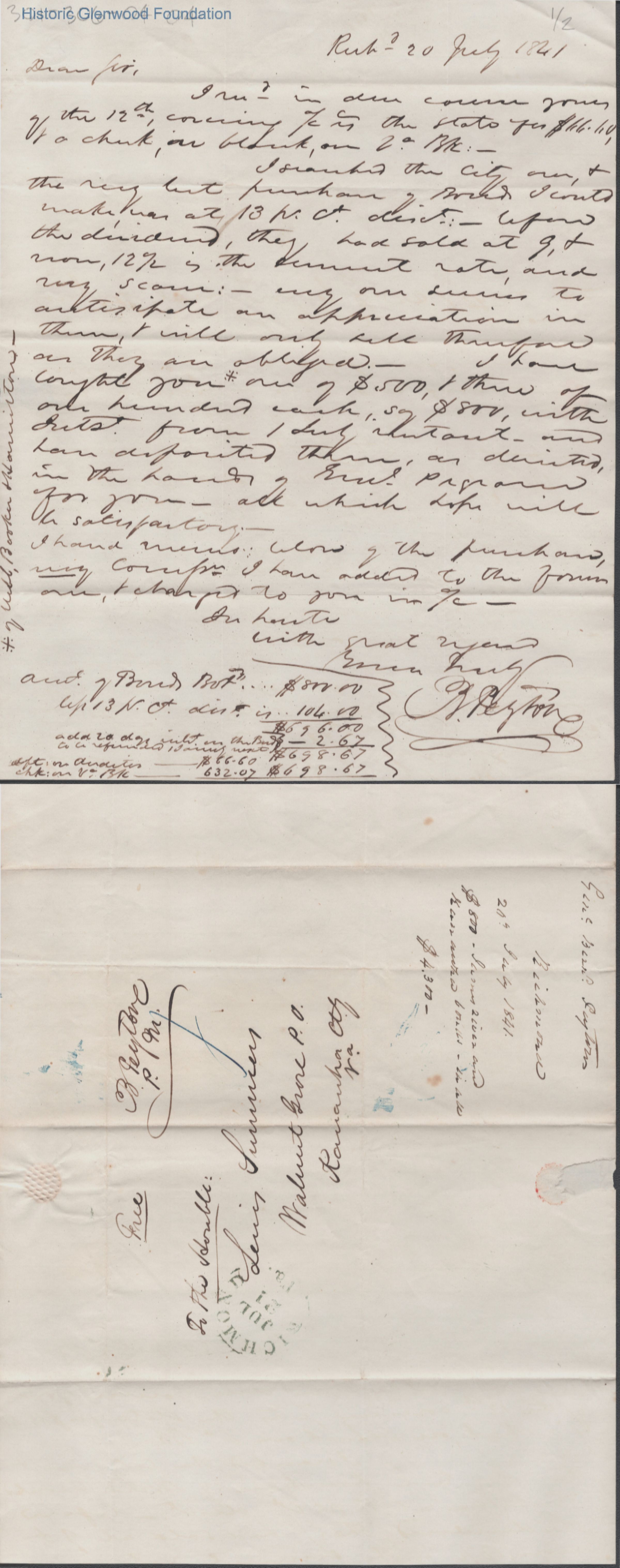 Judge Lewis Summers from B. Peyton, Jul 20, 1841