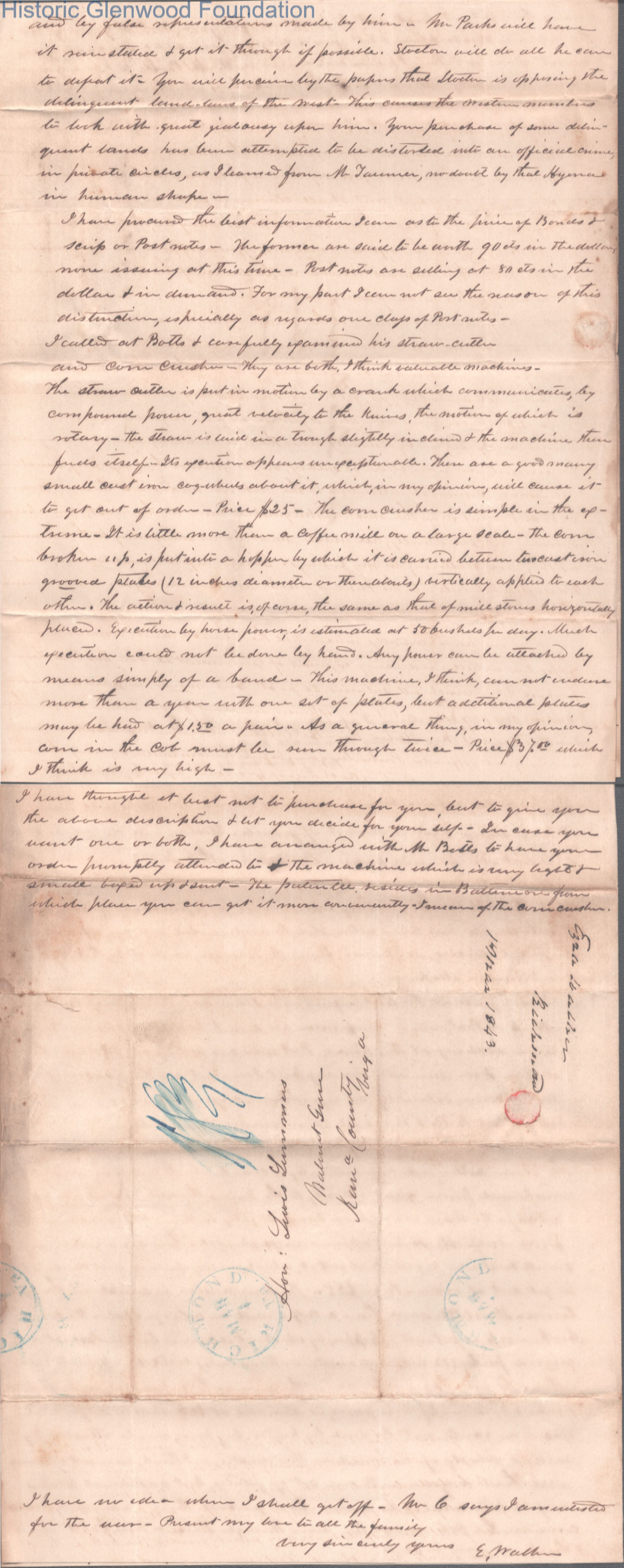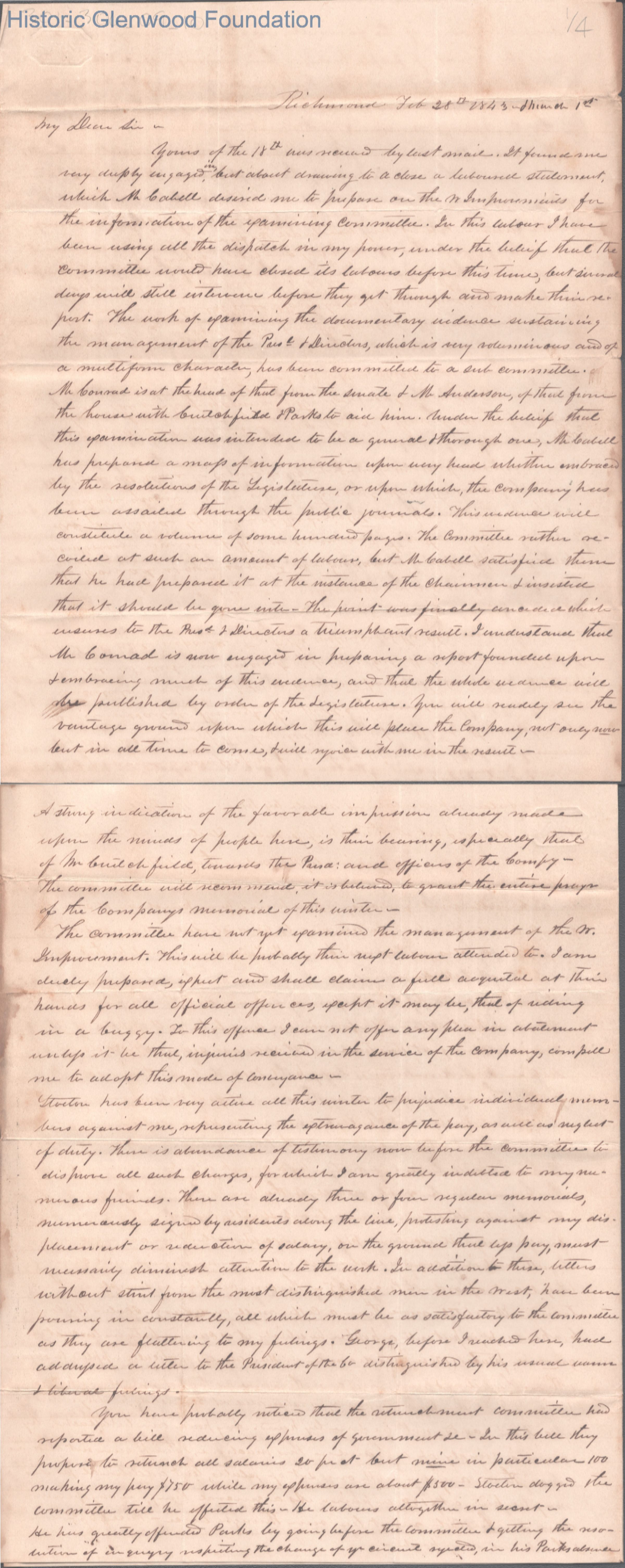 Four-page letter to Judge Lewis Summers from Ezra Walker, Feb 28, 1843.