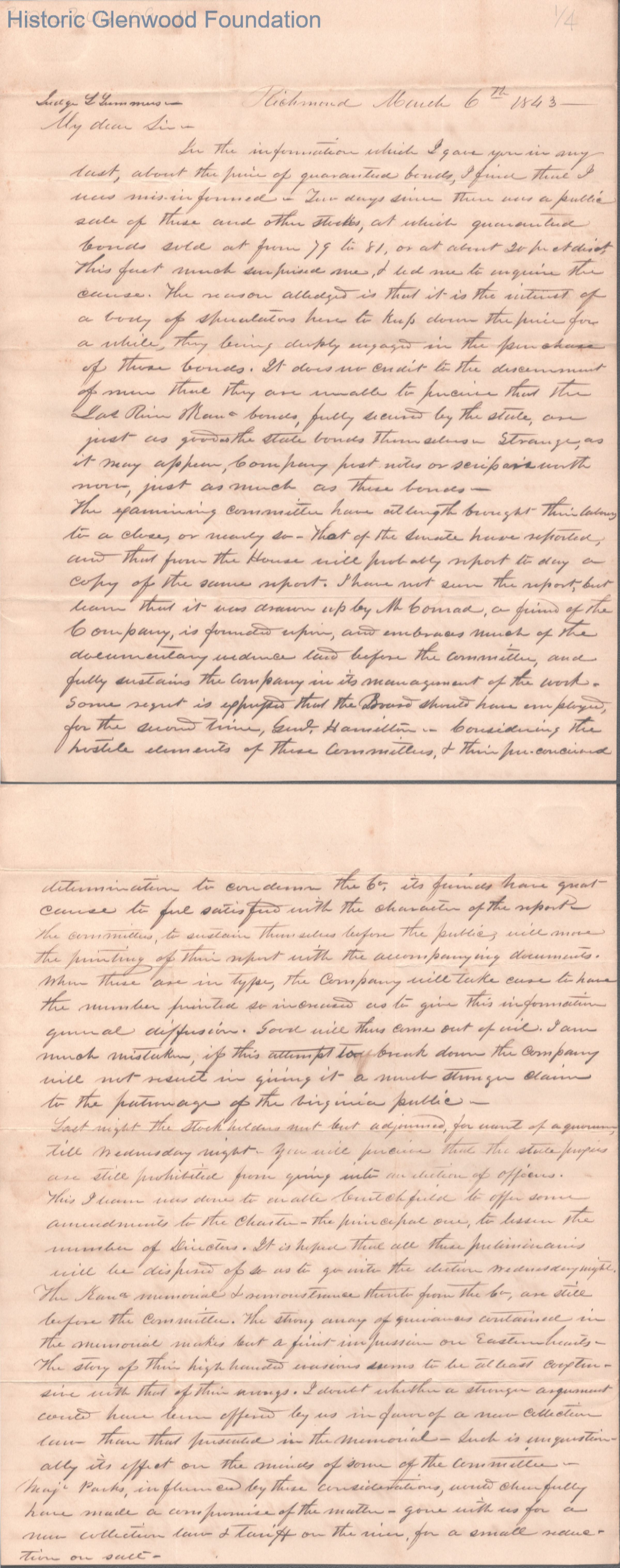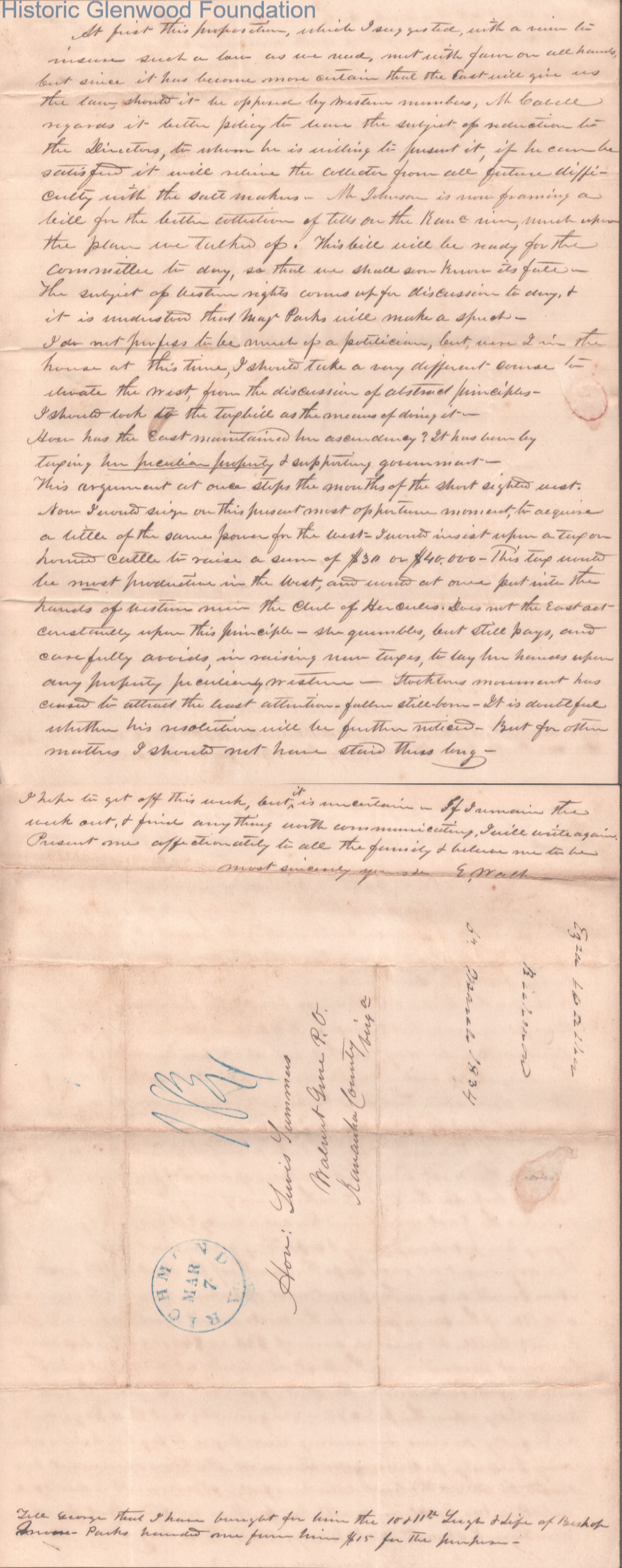 Three-page letter to Judge Lewis Summers from Ezra Walker, Mar 6, 1843.