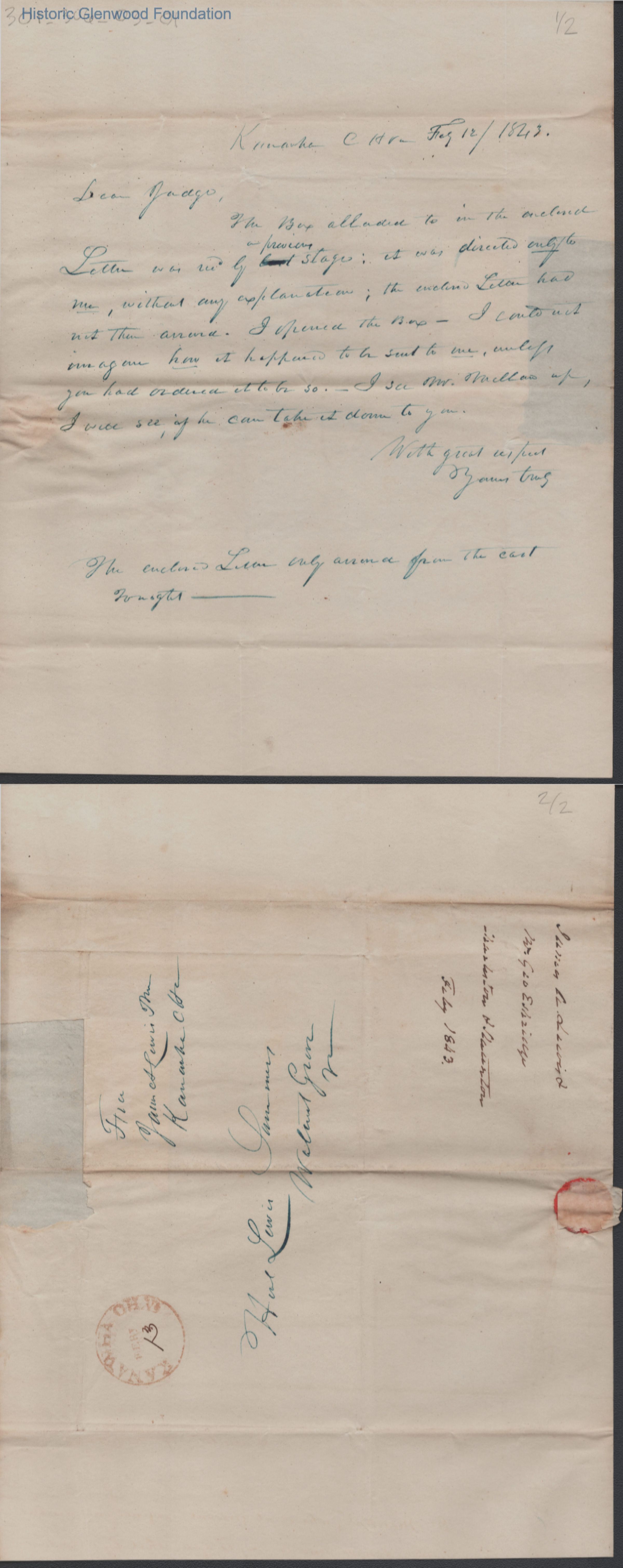 Judge Lewis Summers from James Lewis, Feb 12, 1843