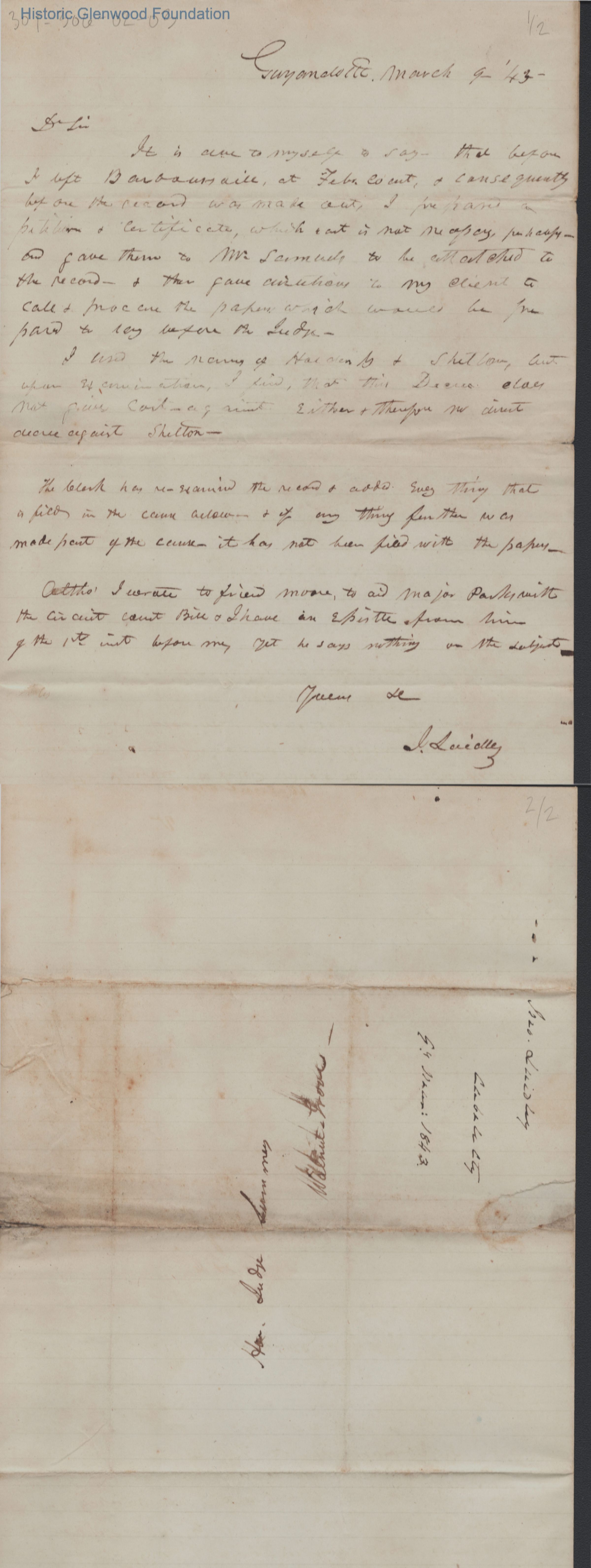 Judge Lewis Summers from James M. Laidley, Mar 9, 1843Entry/Object ID