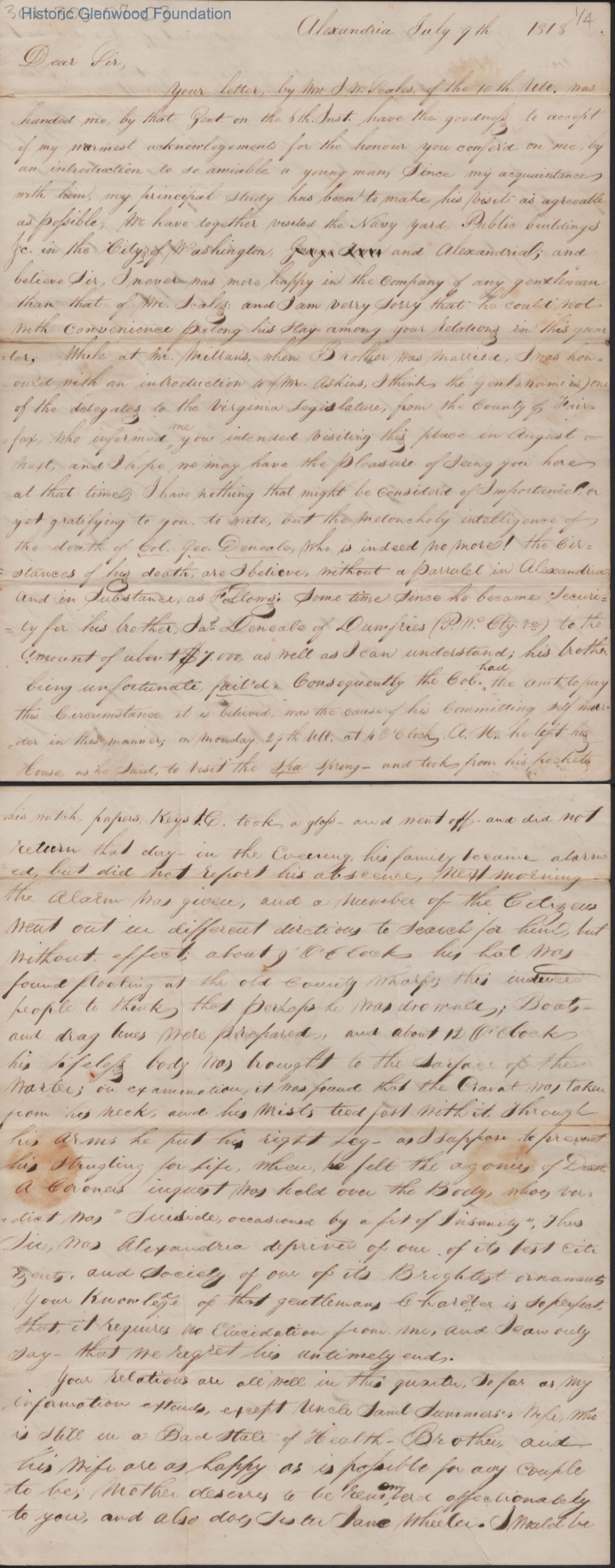 Three-page letter to Judge Lewis Summers from William S. Summers, Jul 9, 1818.