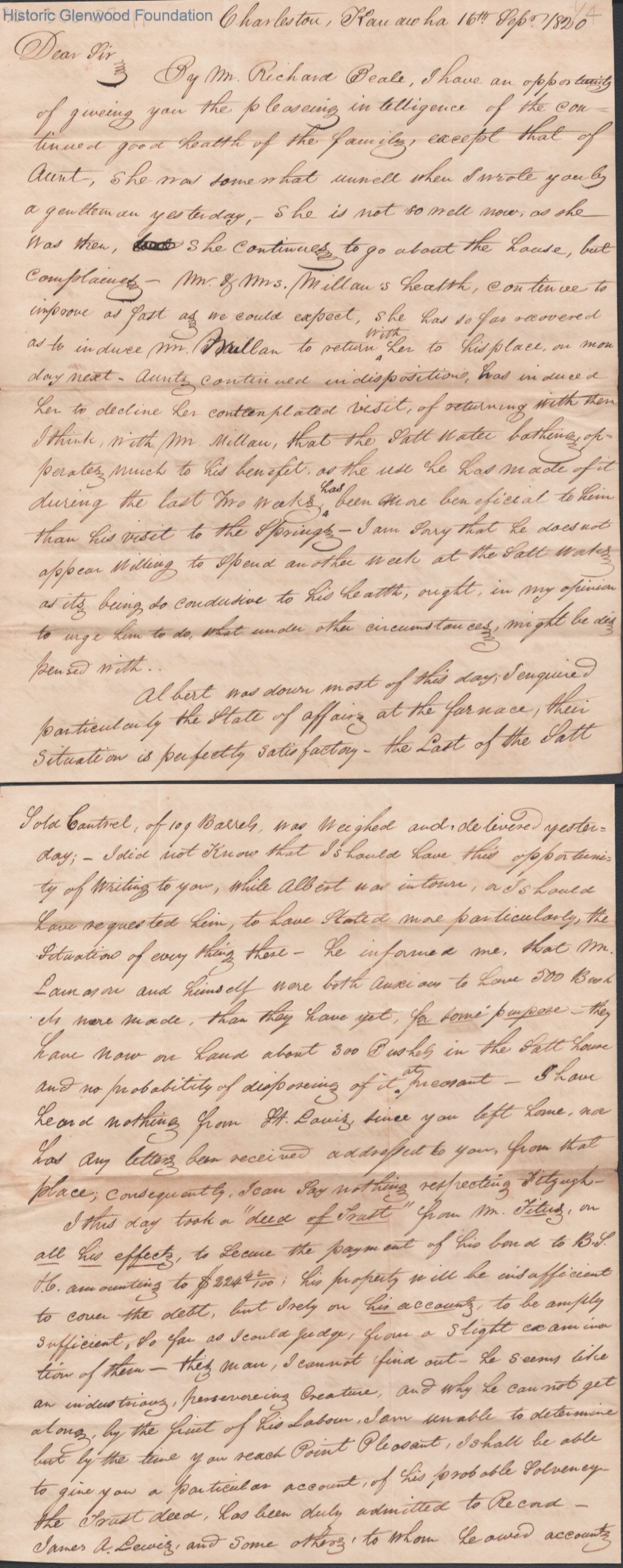 Three-page letter to Judge Lewis Summers from William S. Summers, Sep 16, 1820.