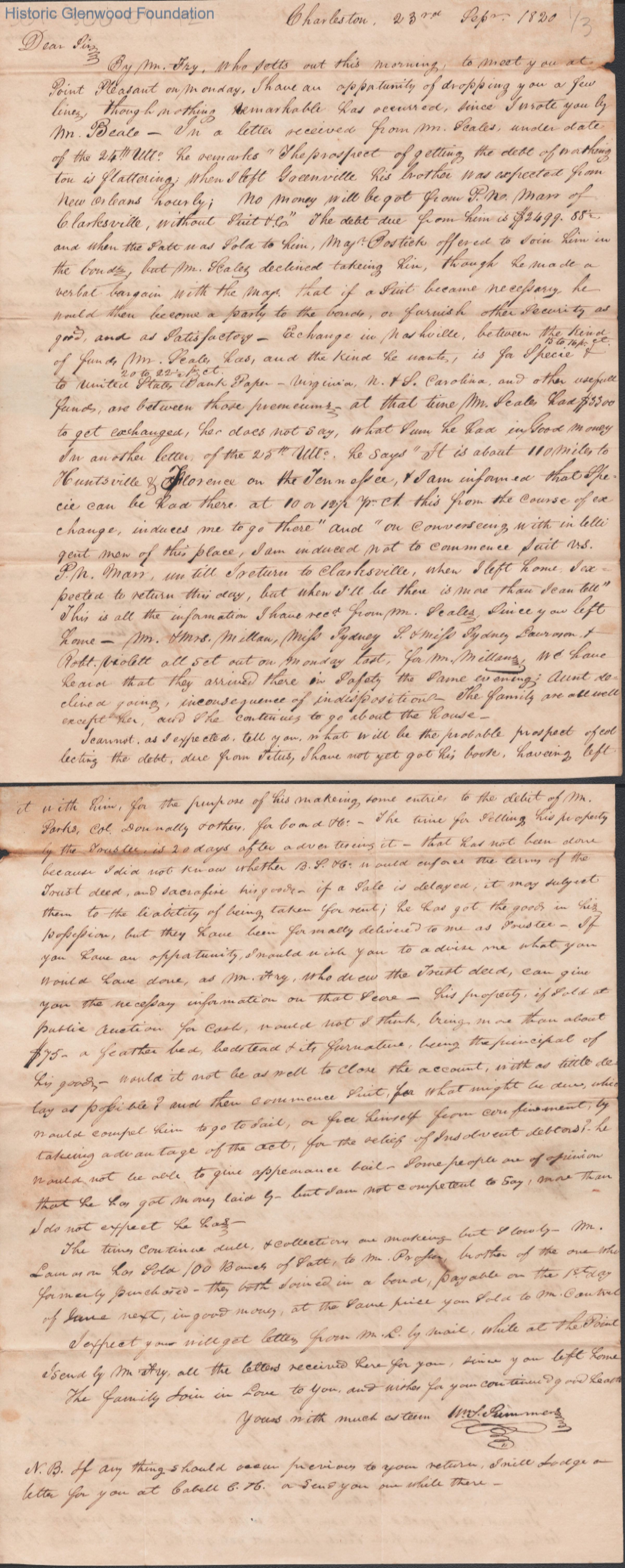 Two-page letter to Judge Lewis Summers from William S. Summers, Sep 23, 1820.