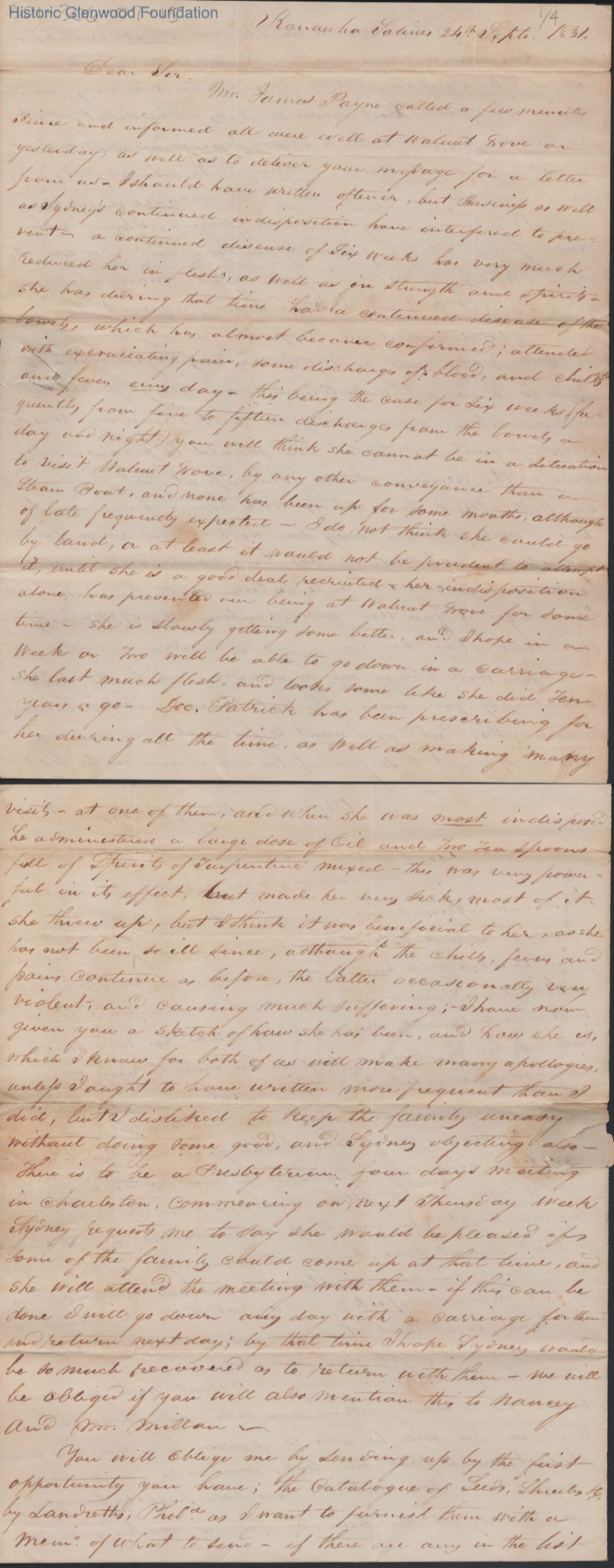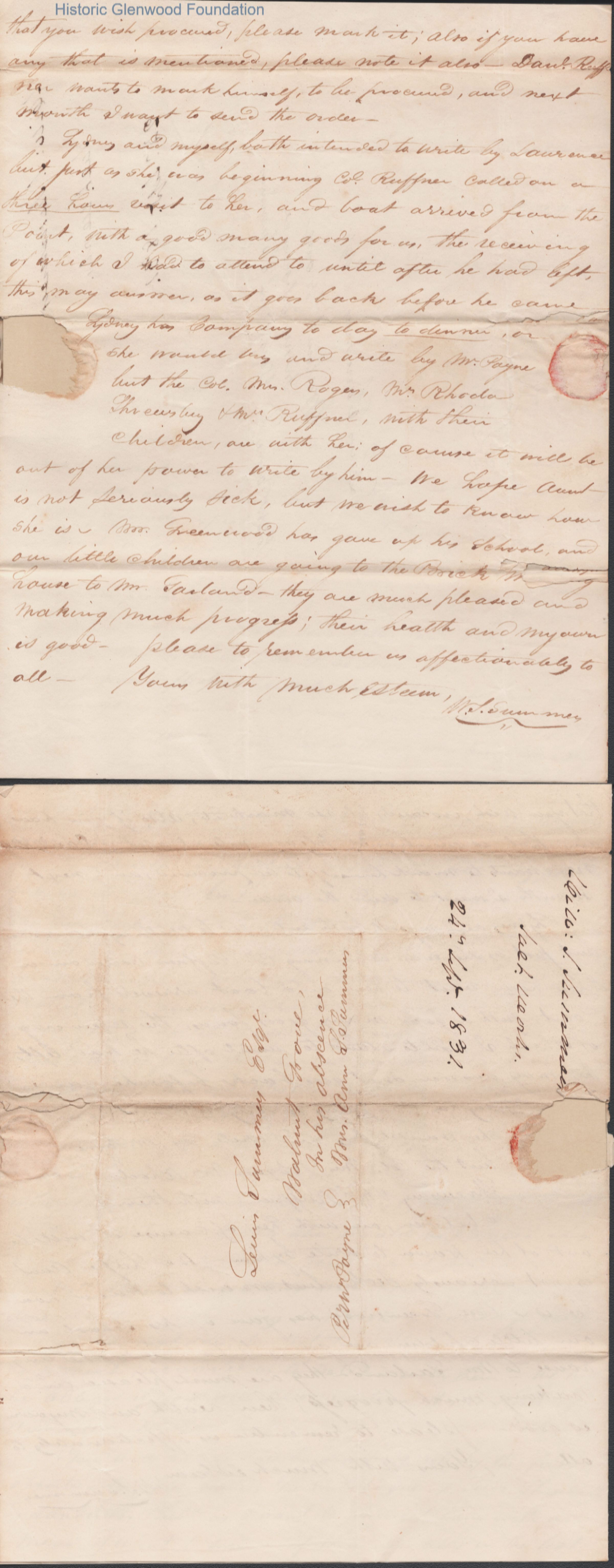 Three-page letter to Judge Lewis Summers from William S. Summers, Sep 24, 1831.