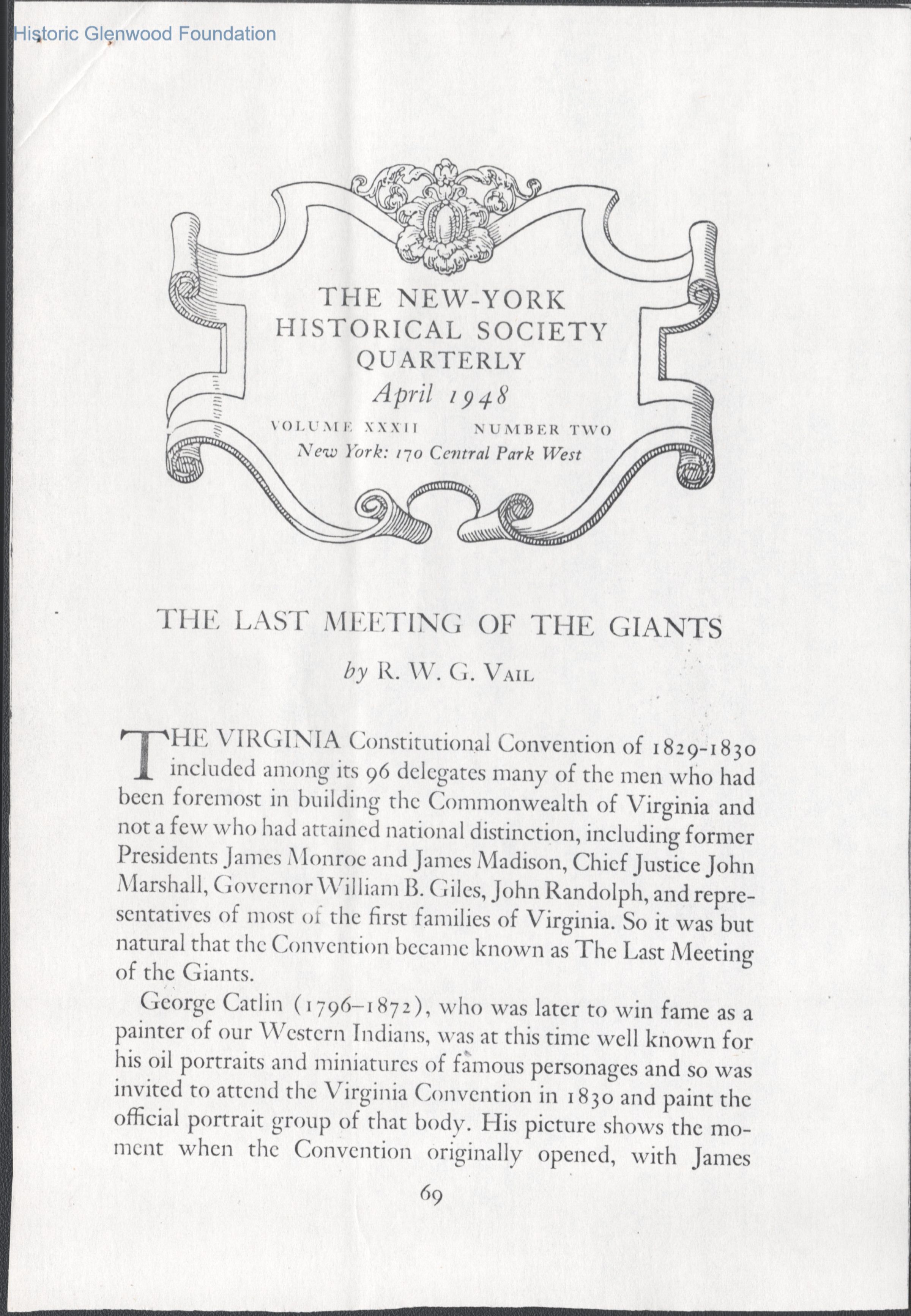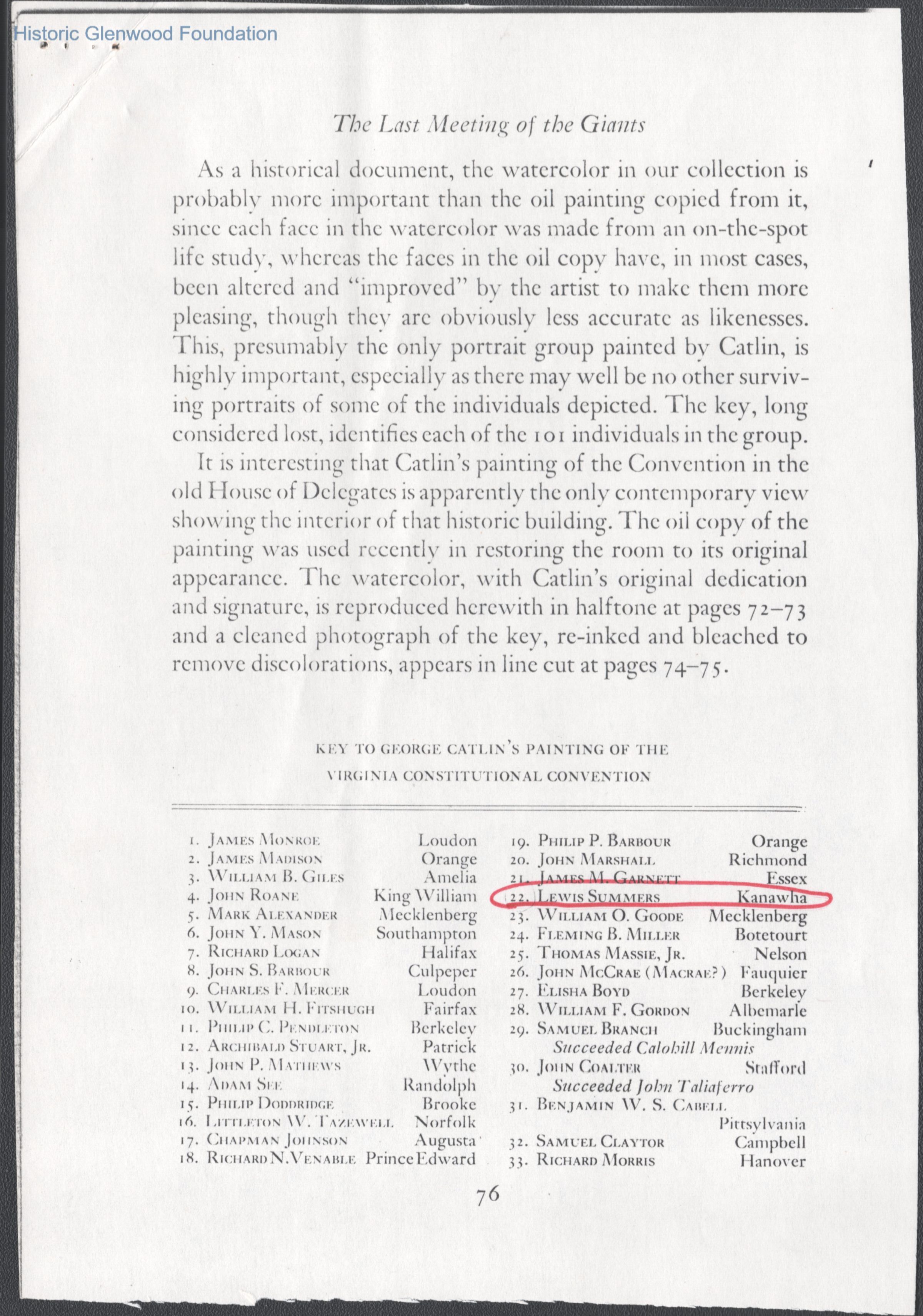 New York Historical Quarterly, April 1948, article re: George Catlin painting of the Virginia Constitutional Convention of 1829-1830, of which Lewis Summers was a delegate