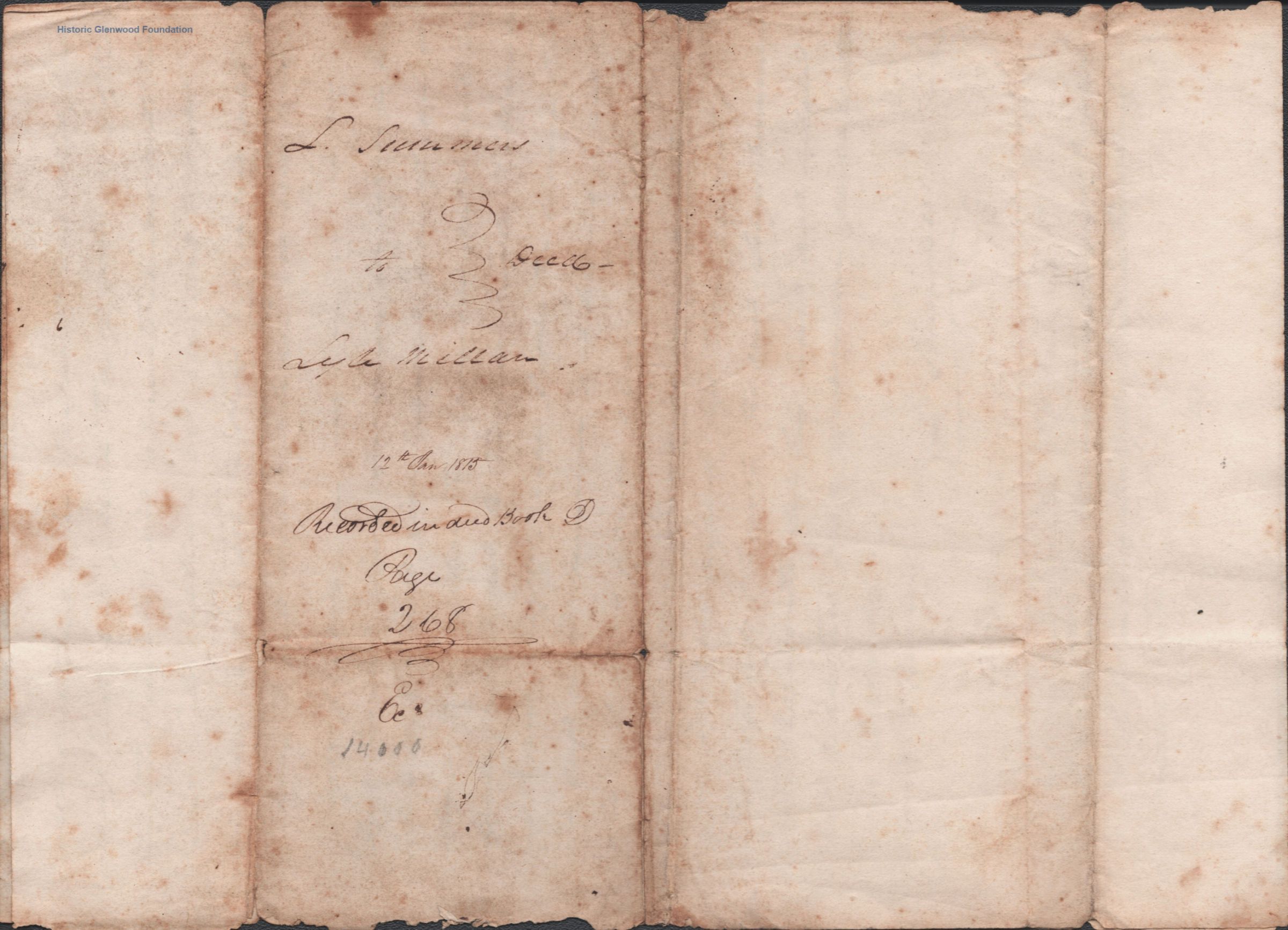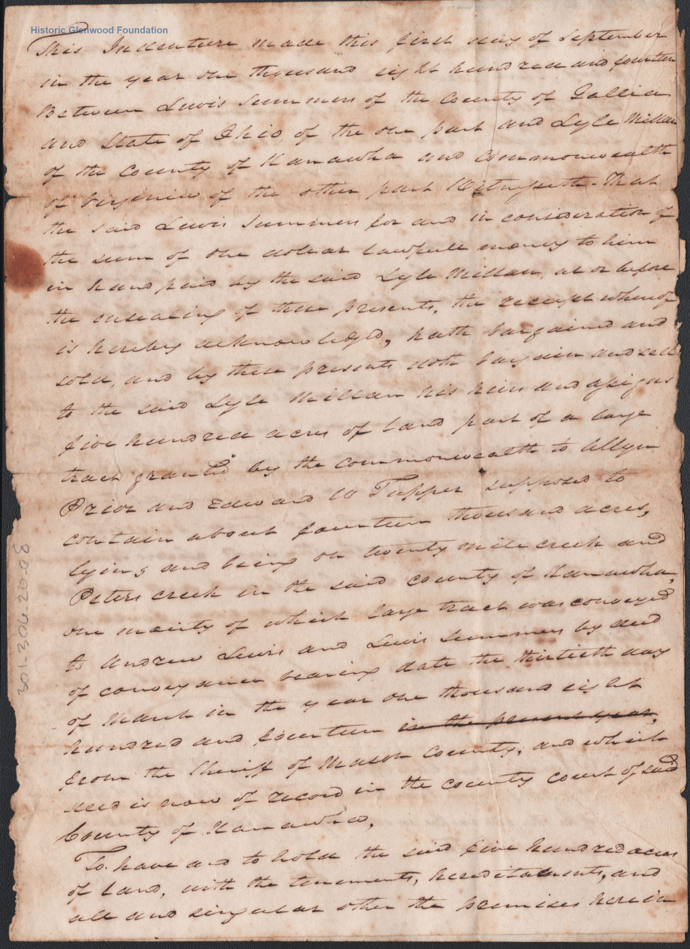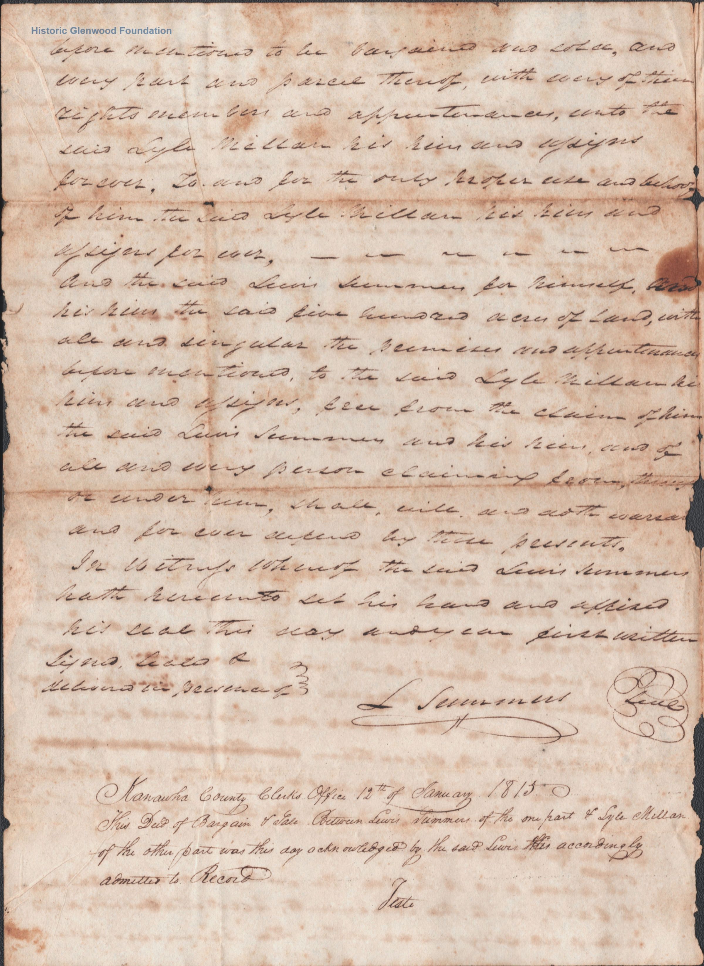 Judge Lewis Summers, property transfer from Lyle Millam, September 1, 1814Entry/Object ID