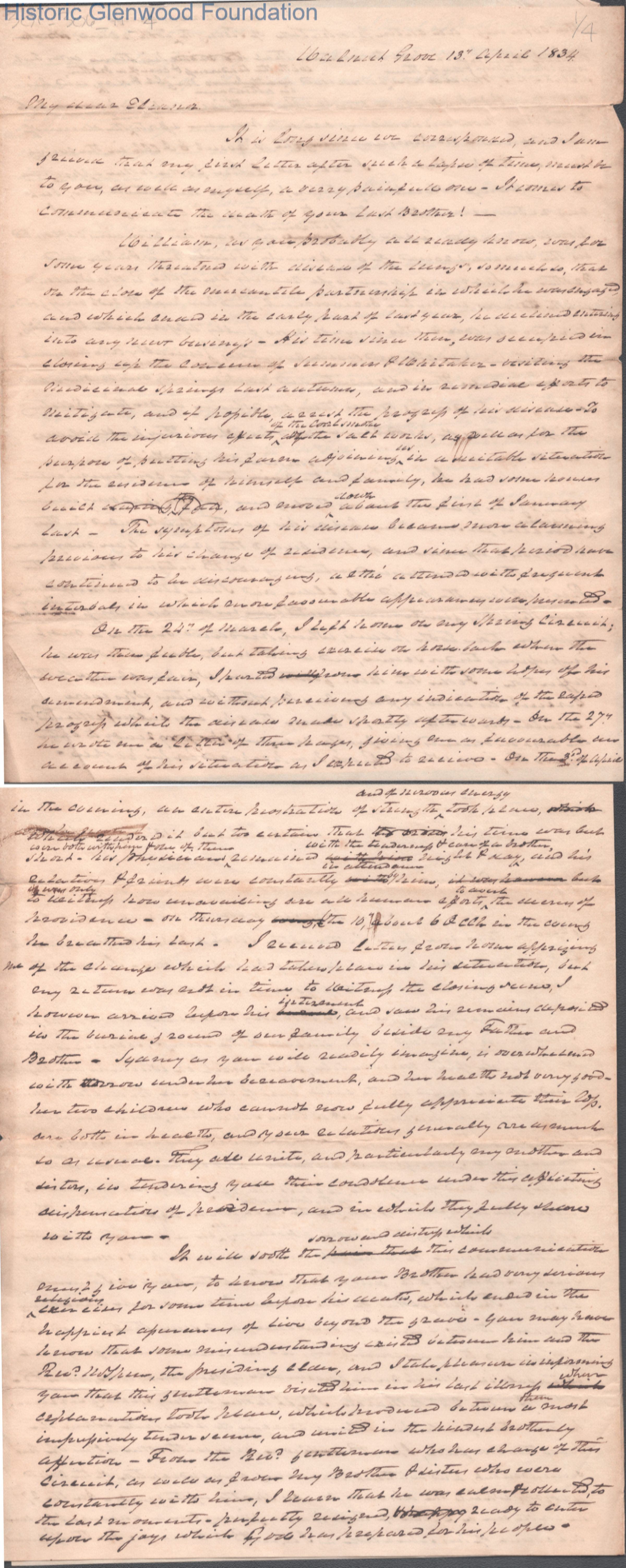 Judge Lewis Summers to Eleanor Fox, Apr 13, 1834