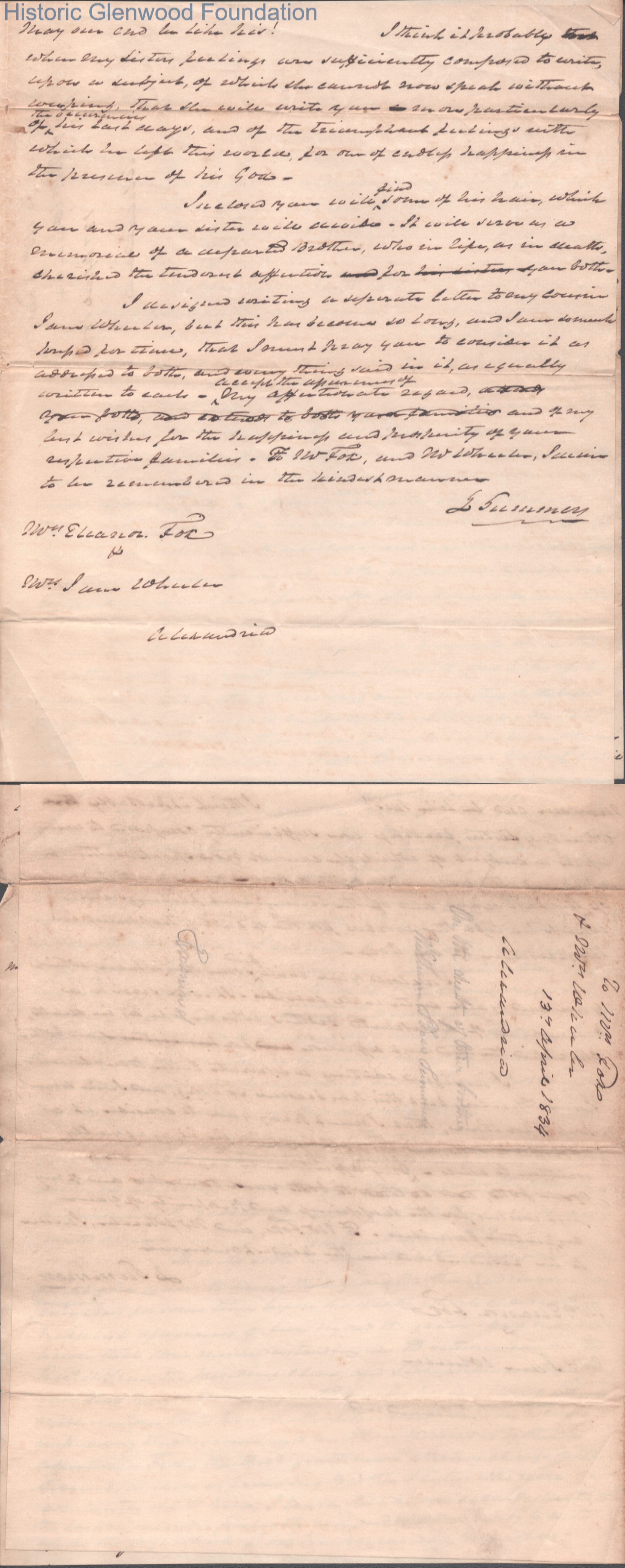 Three-page letter from Judge Lewis Summers to Eleanor Fox, Apr 13, 1834.