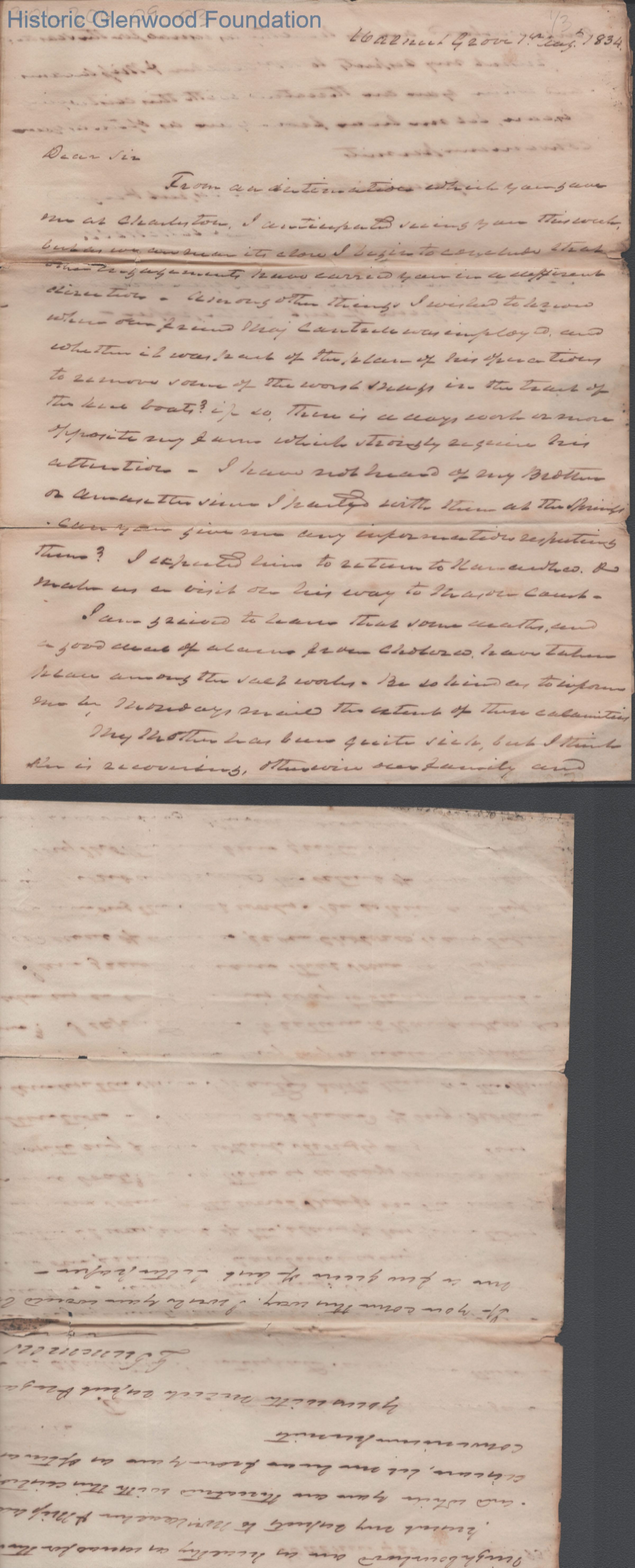 Two-page letter from Judge Lewis Summers to Ezra Walker, Aug 7, 1834.