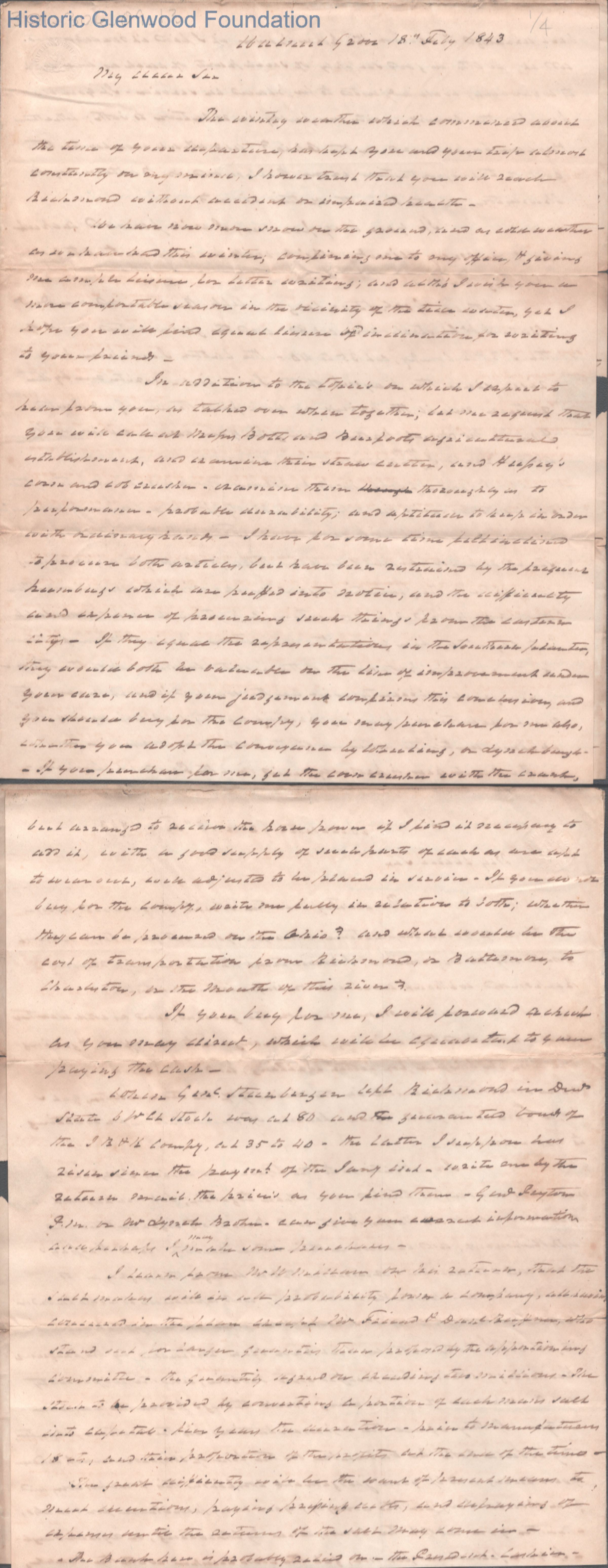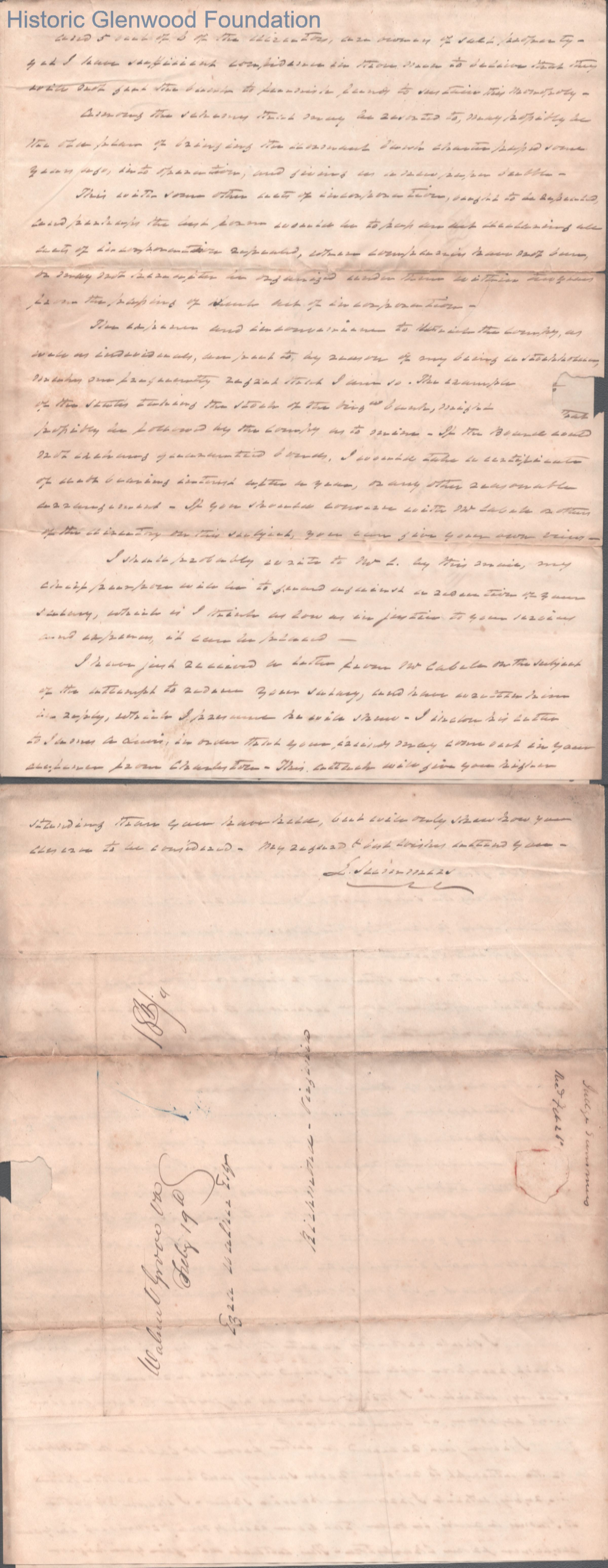 Three-page letter from Judge Lewis Summers to Ezra Walker, Feb 18, 1843.
