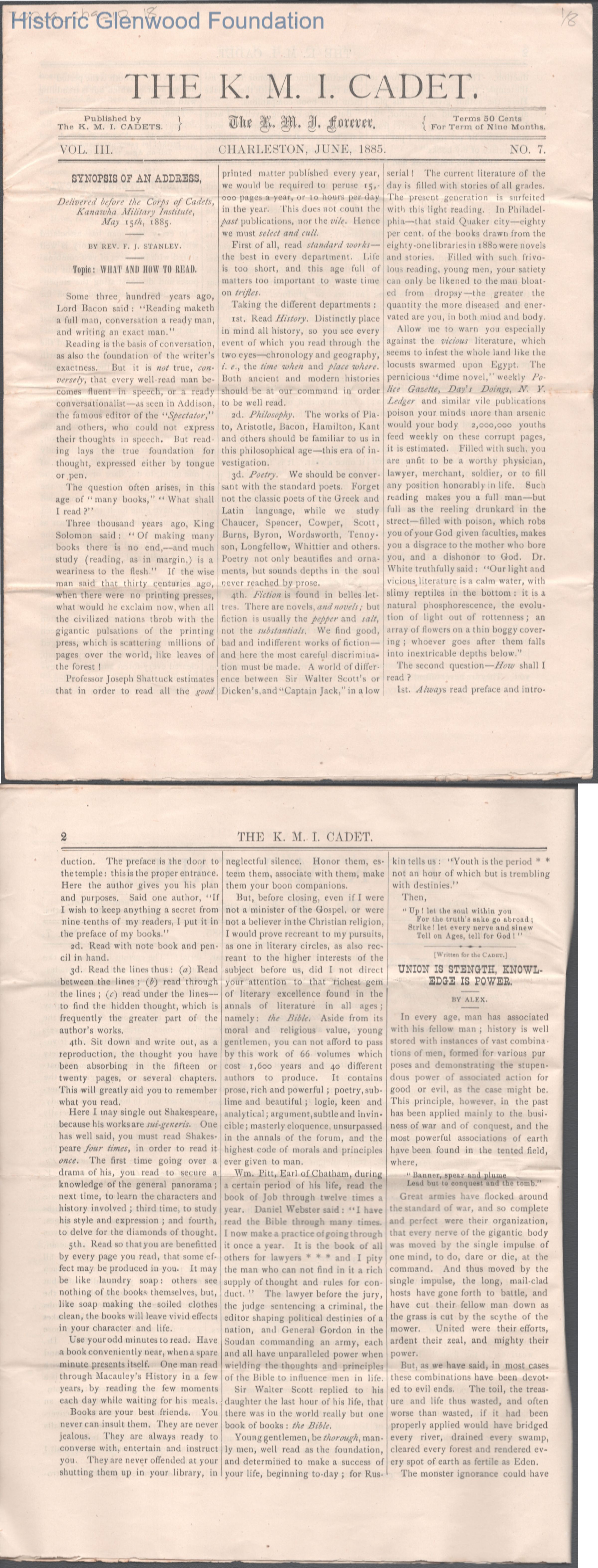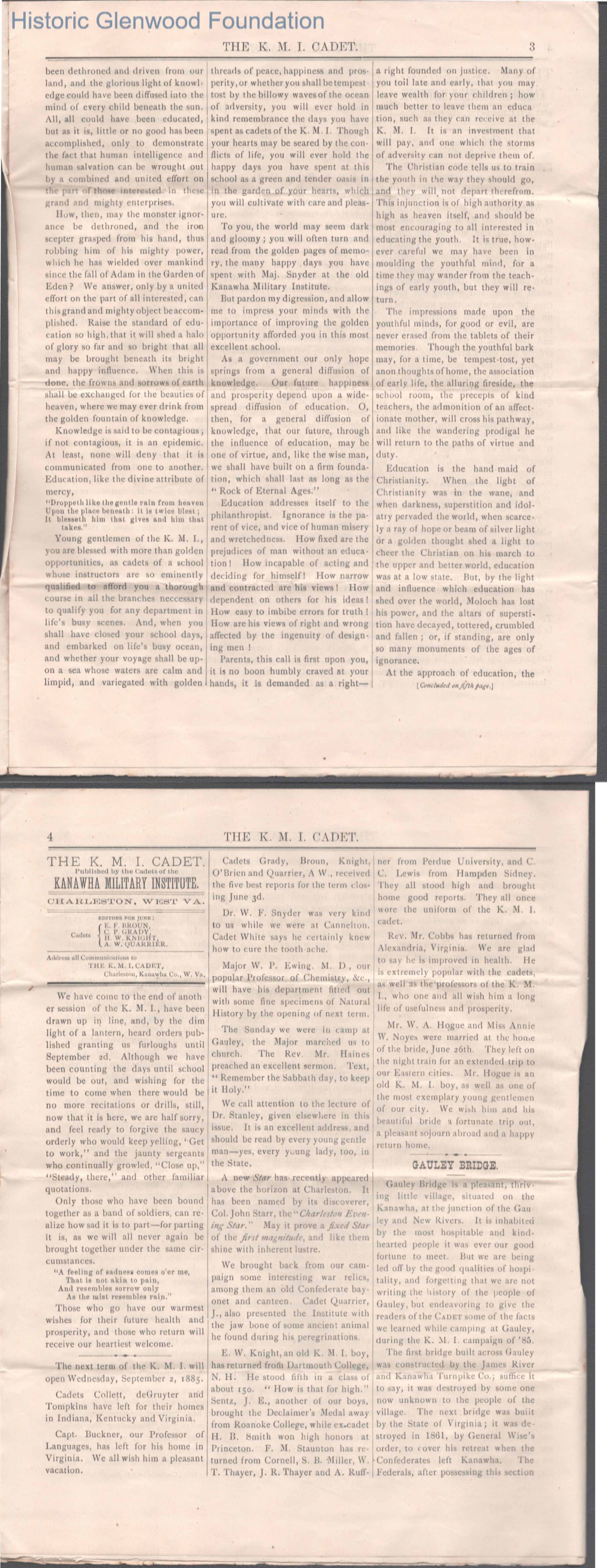The Kanawha Military Institute K.M.I. Cadet, Vol. III, Issue 7, Jun 1885.