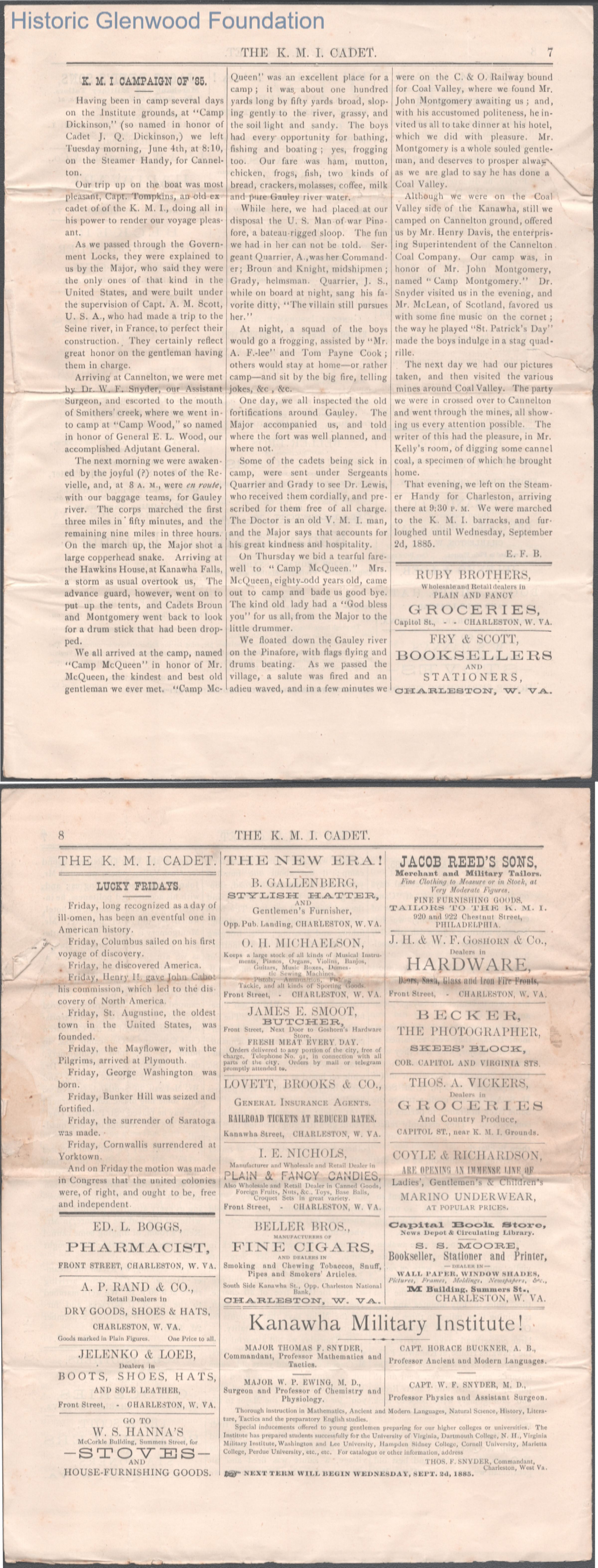 Kanawha Military Institute K.M.I. Cadet, Jun 1885