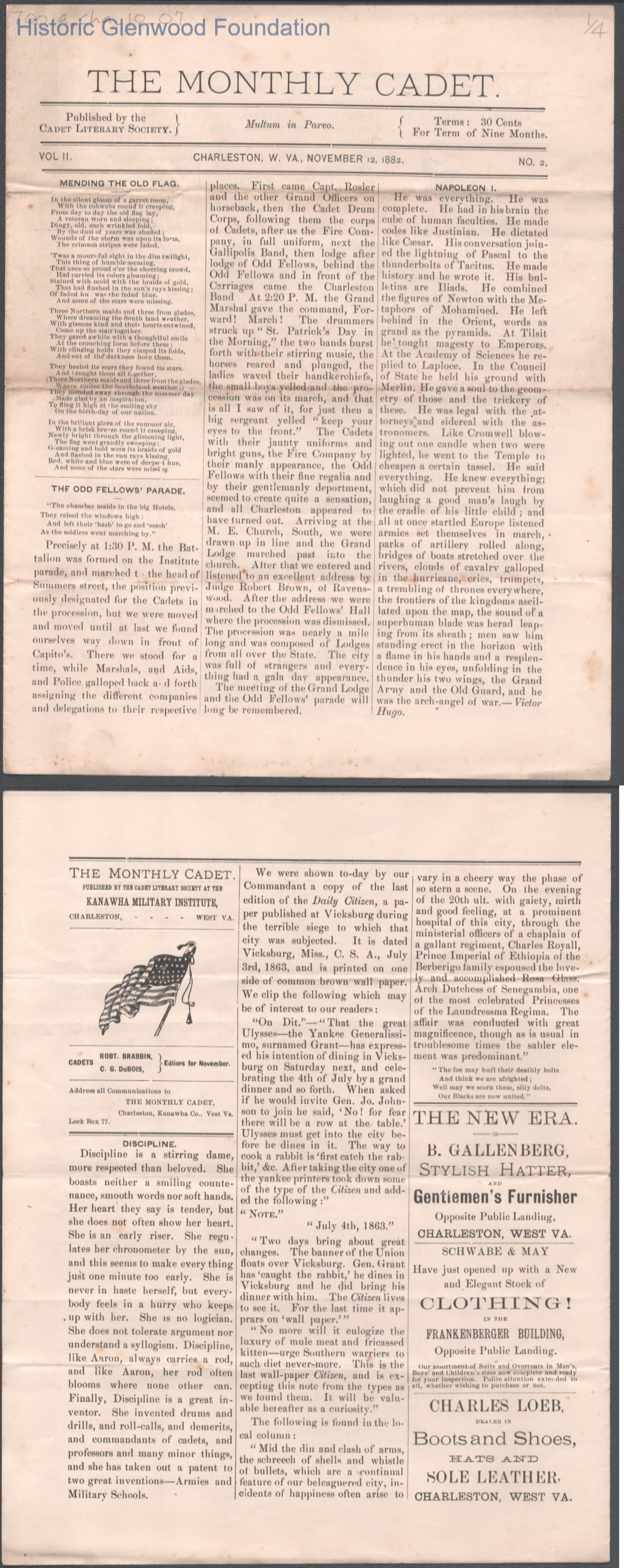The Kanawha Military Institute Monthly Cadet, Vol. II, Issue 2, Nov 12, 1882.