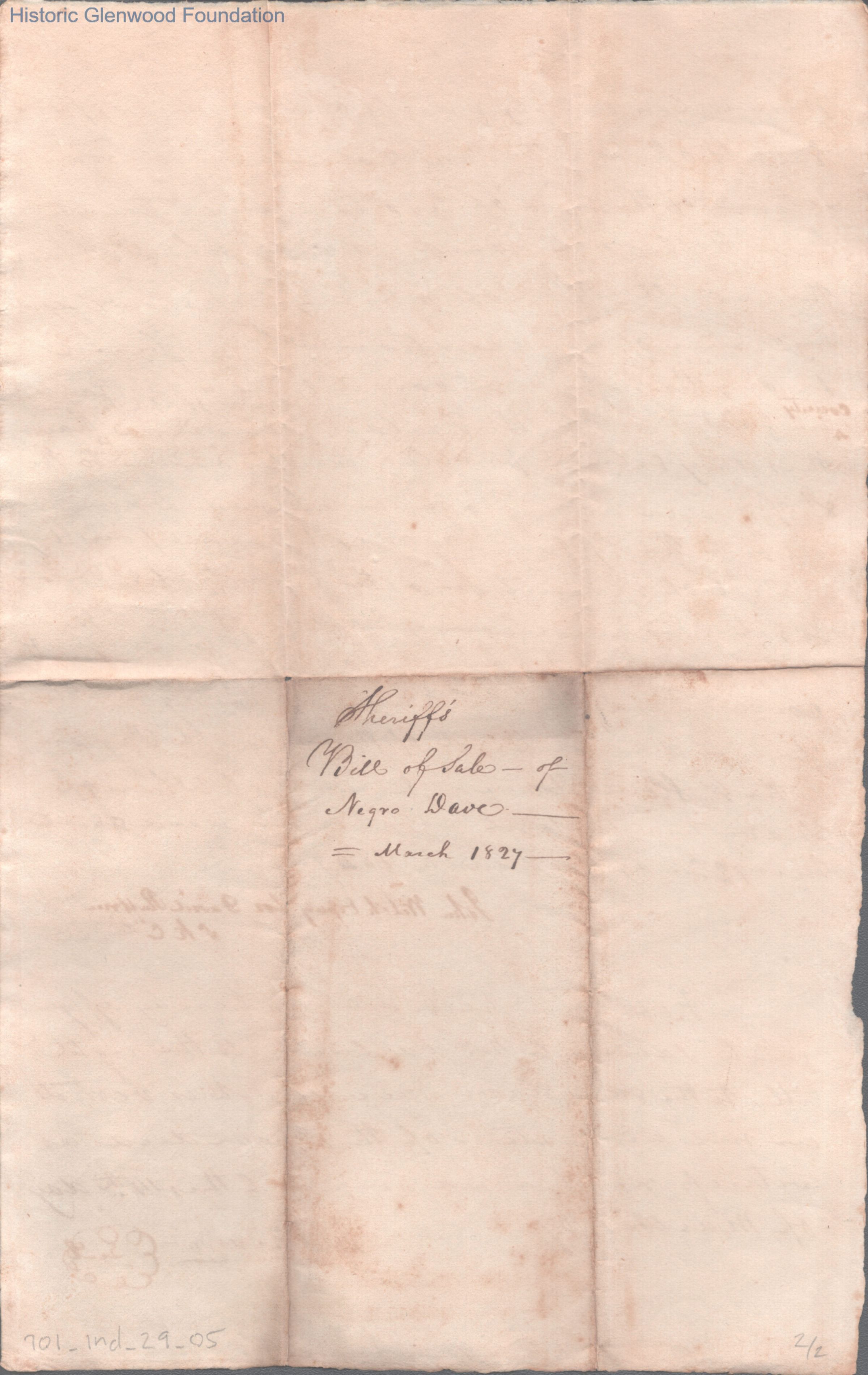 Kanawha Sheriff Receipt for Payment of Auctioned Slave, Mar 12, 1827.