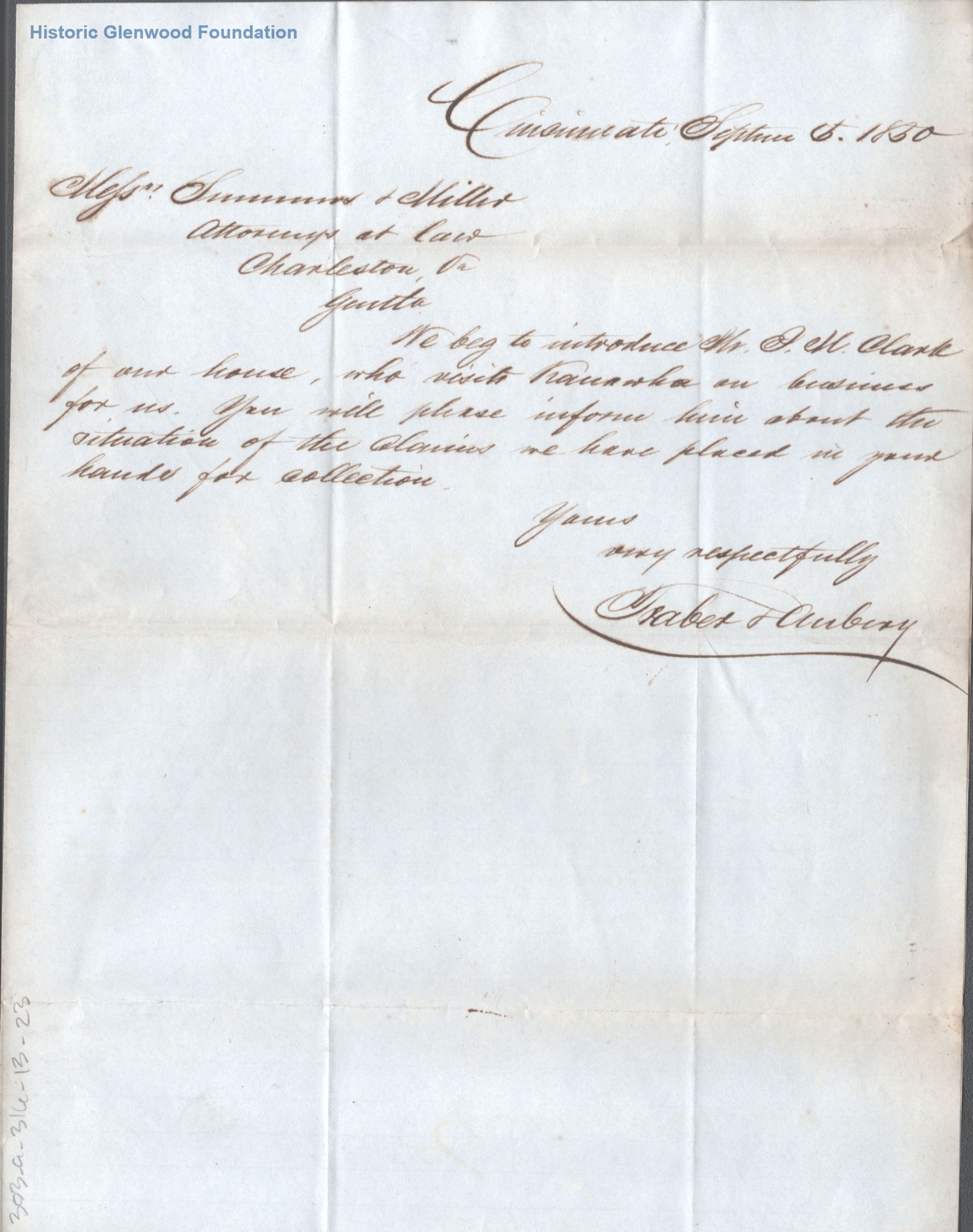 Letter of introduction for J. M. Clark to Summers & Miller; September 5, 1850