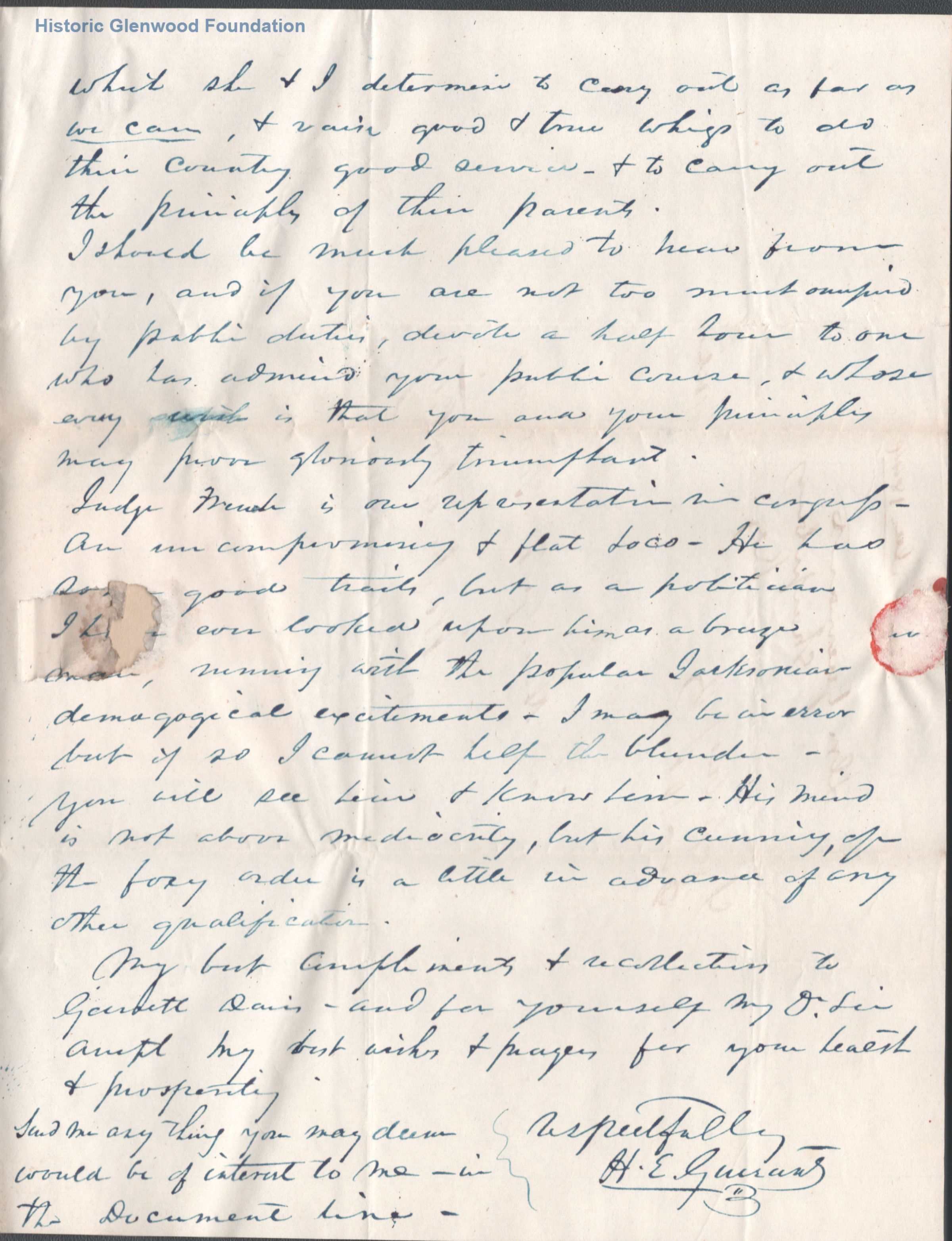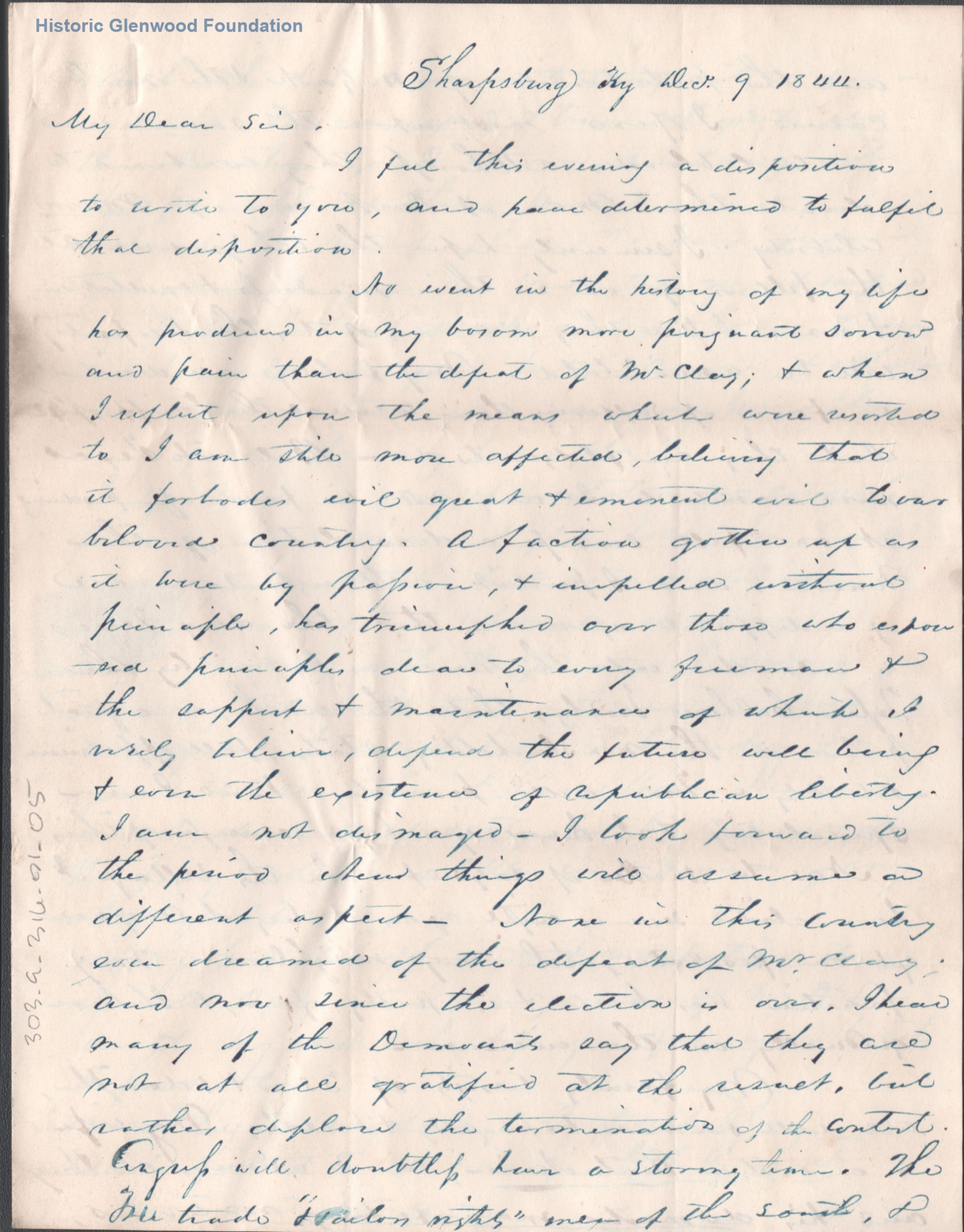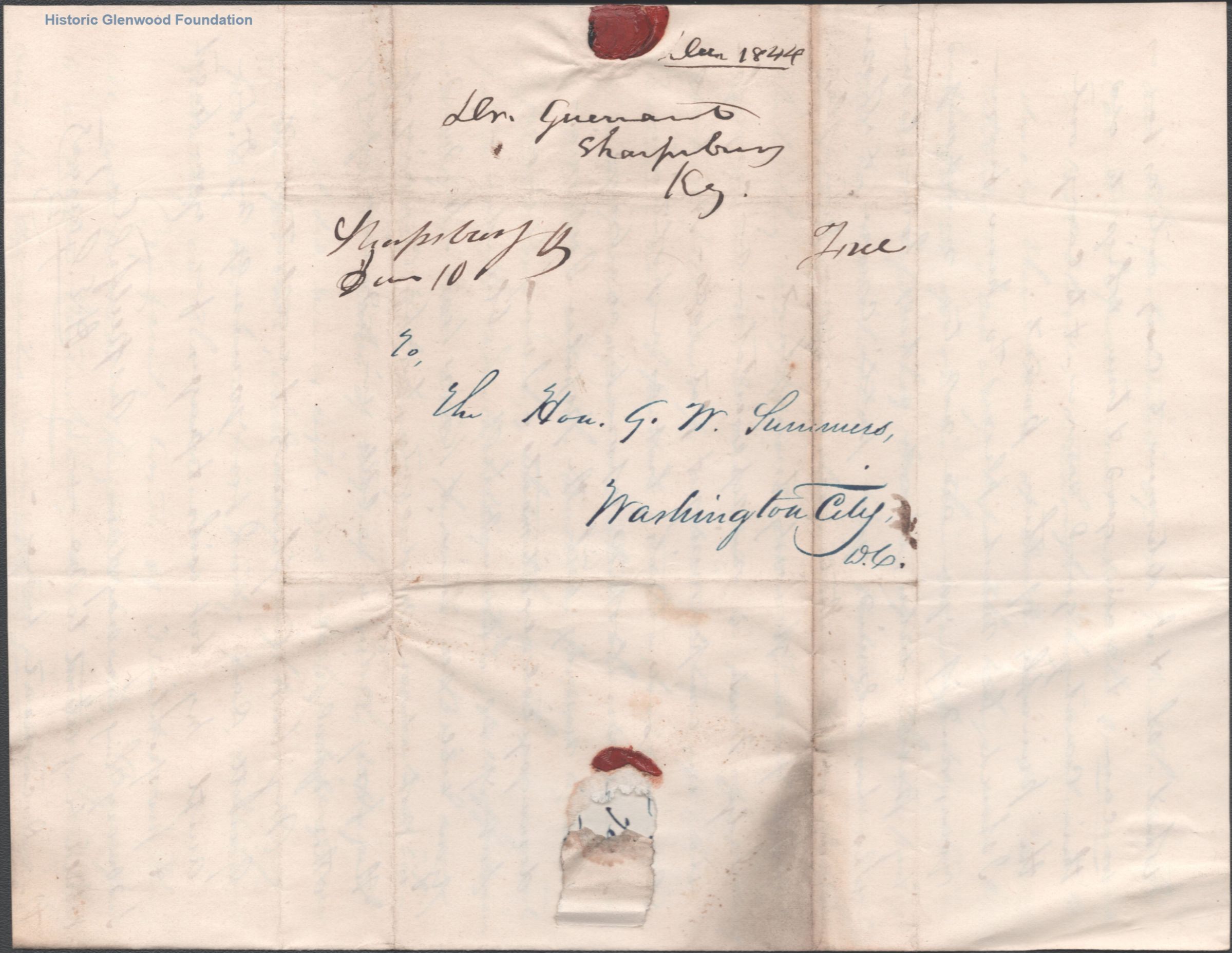 Letter to Judge George Summers, December 9, 1844, author's name Dr. ?