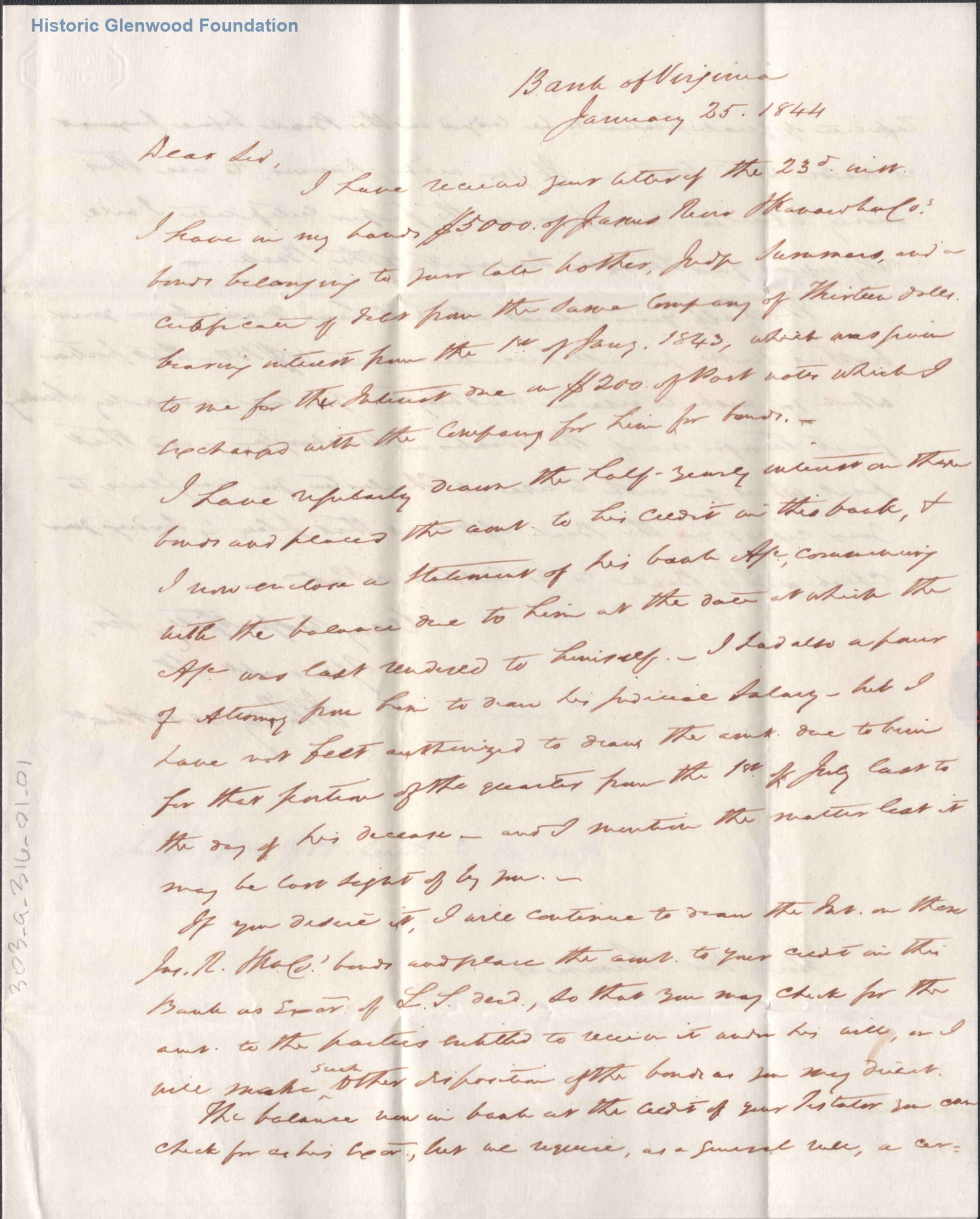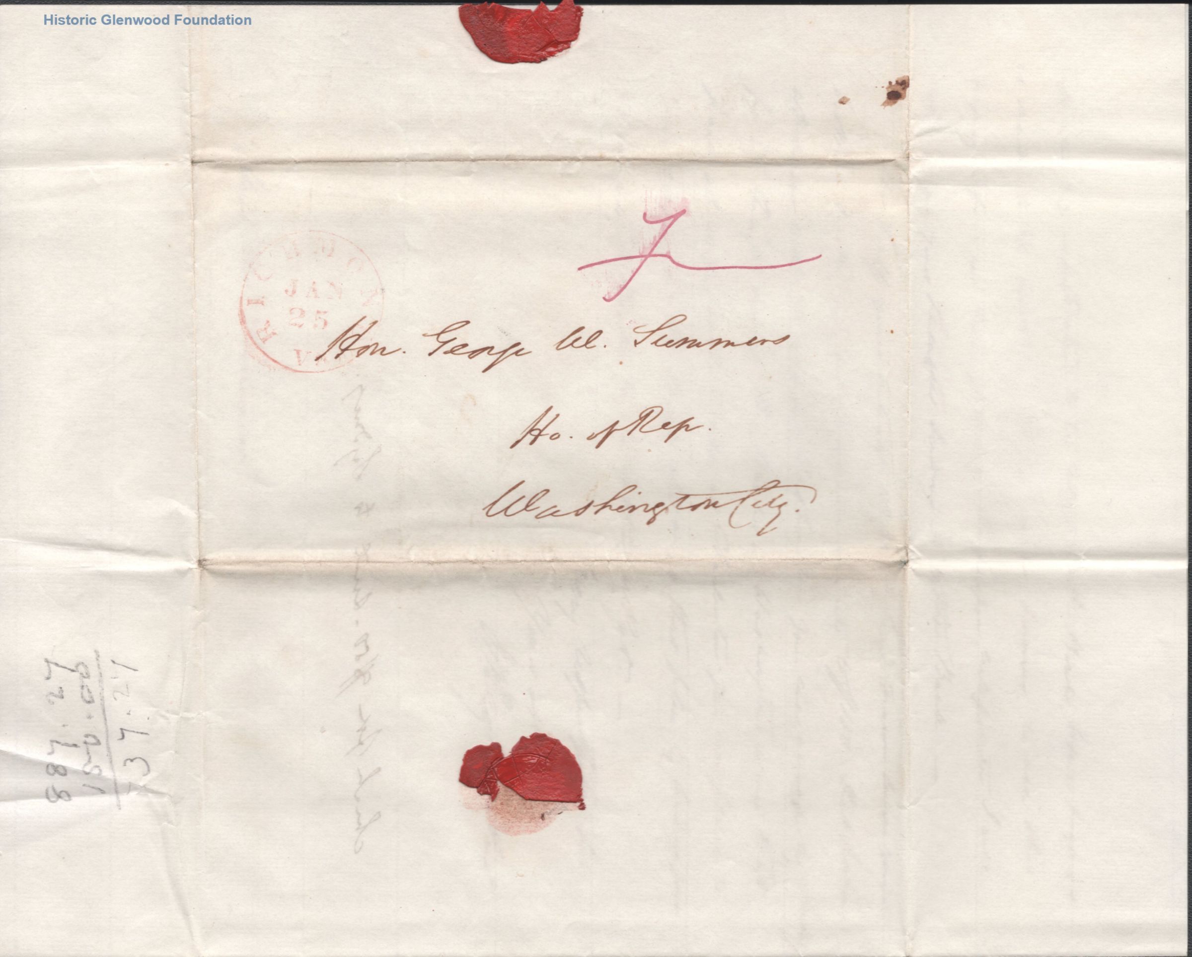 Letter to Judge George Summers from unidentified author, January 25, 1844Entry/Object ID
