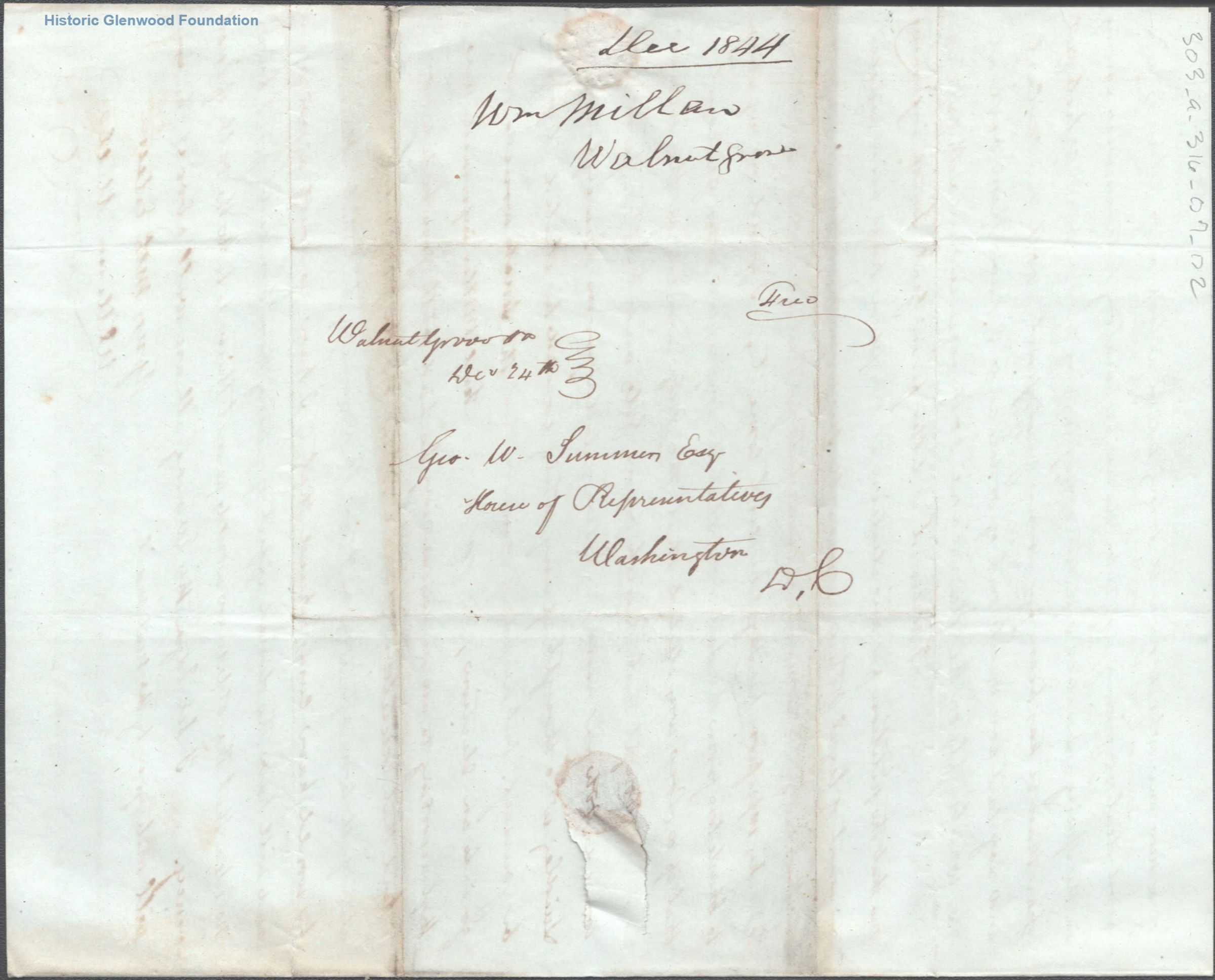Letter to Judge George Summers from William Millan, December 23, 1844Entry/Object ID