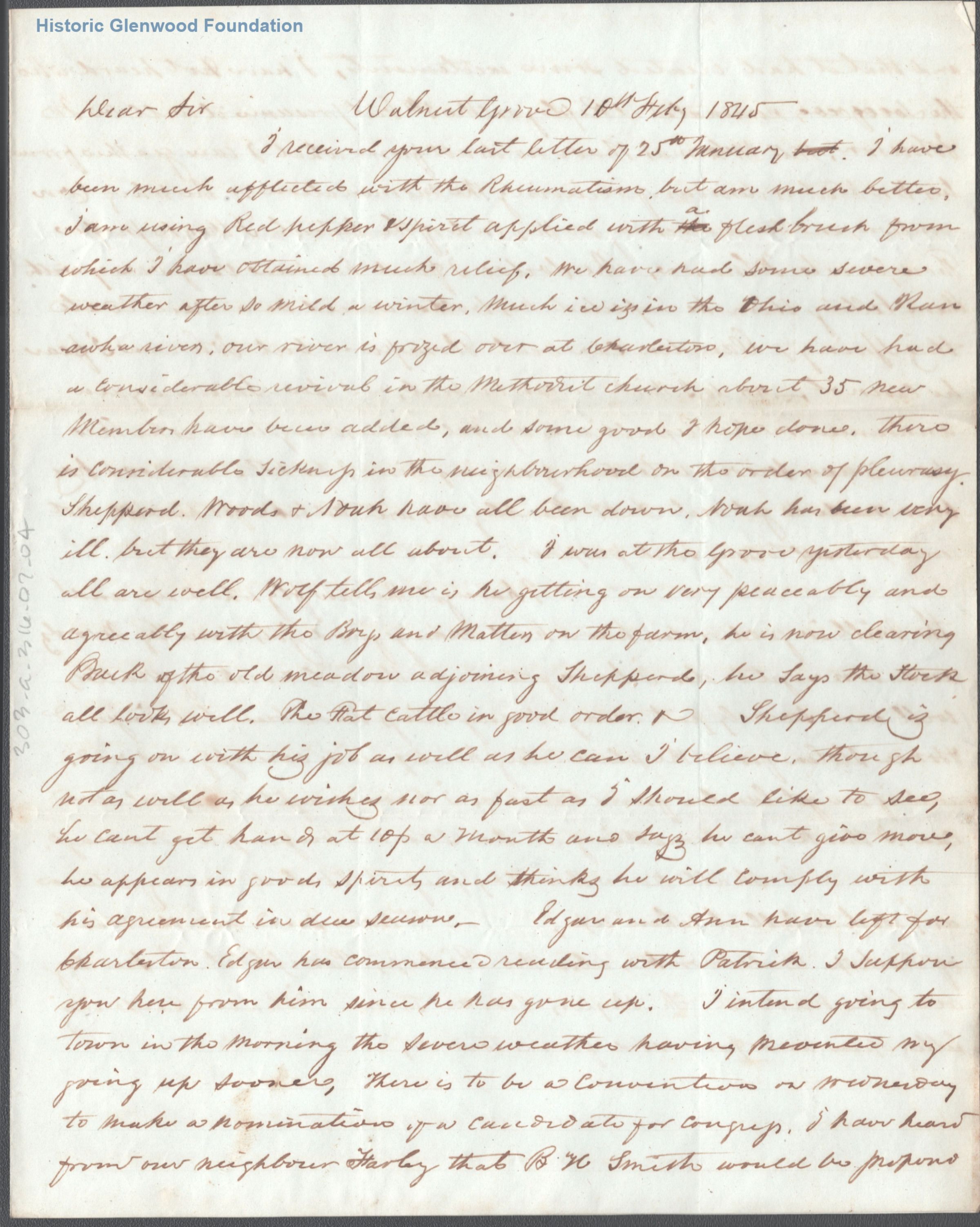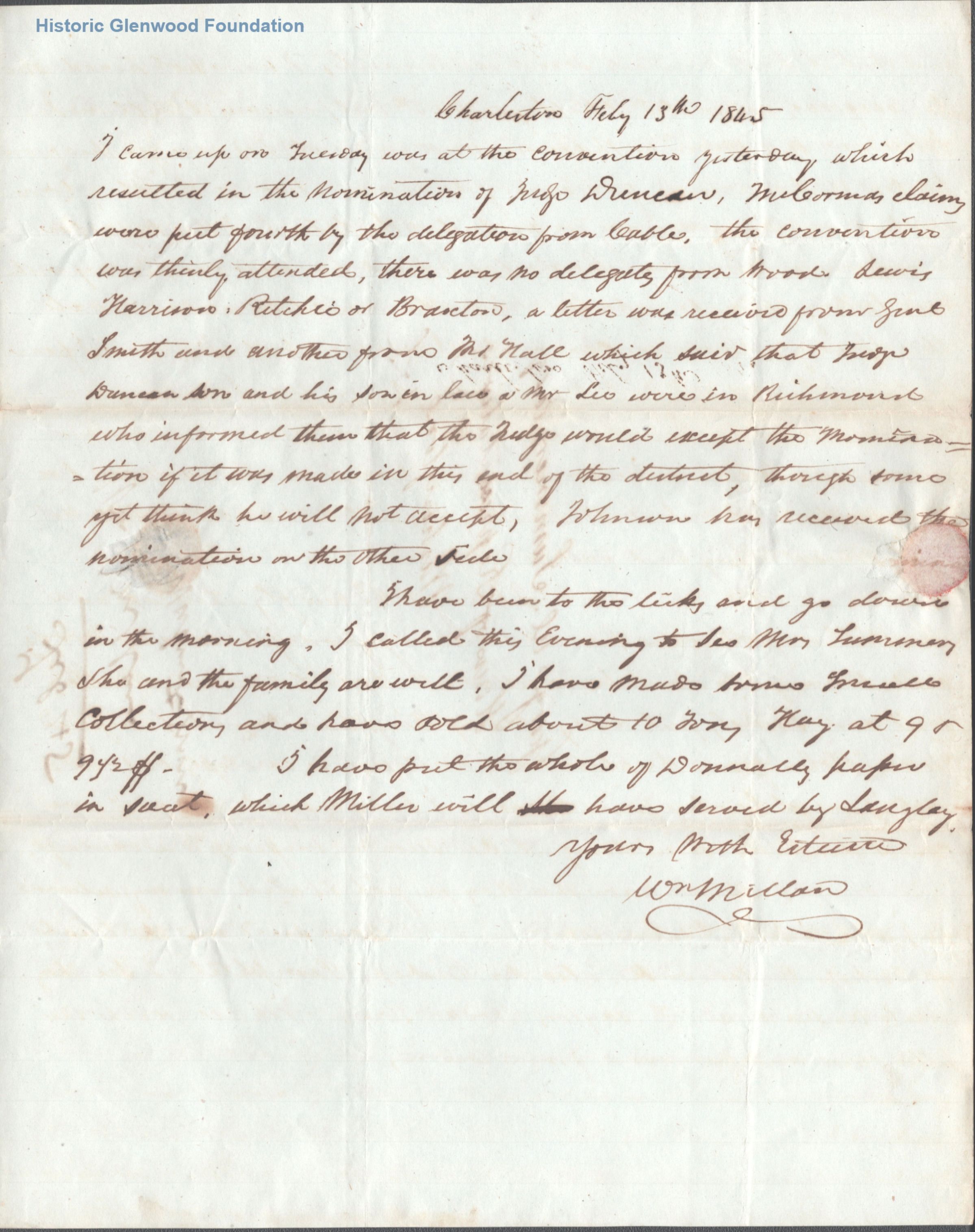 Letter to Judge George Summers from William Millan, February 10, 1845Entry/Object ID