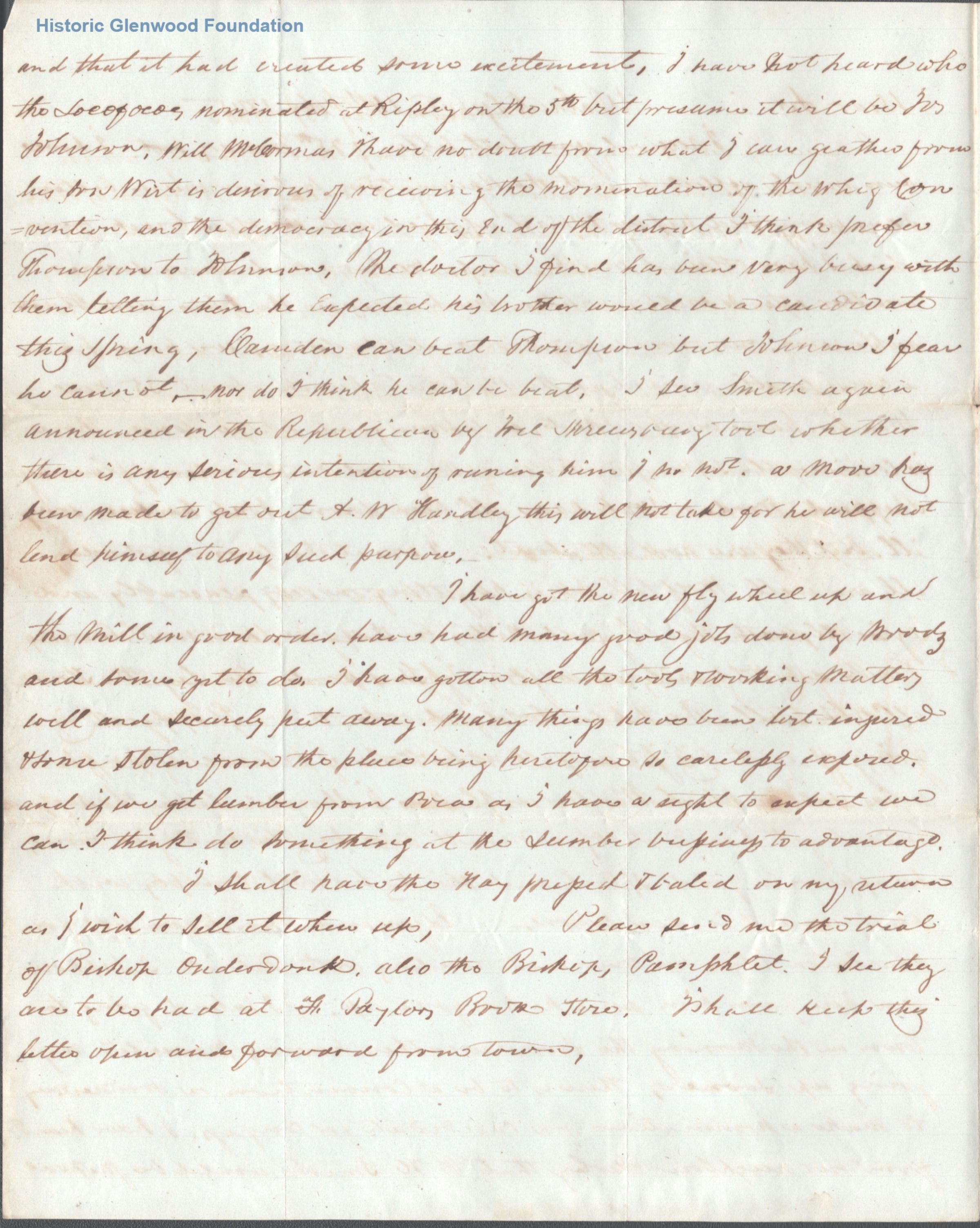 3-page letter to Judge George Summers from William Millan at Walnut GroveDate(s) of Creation