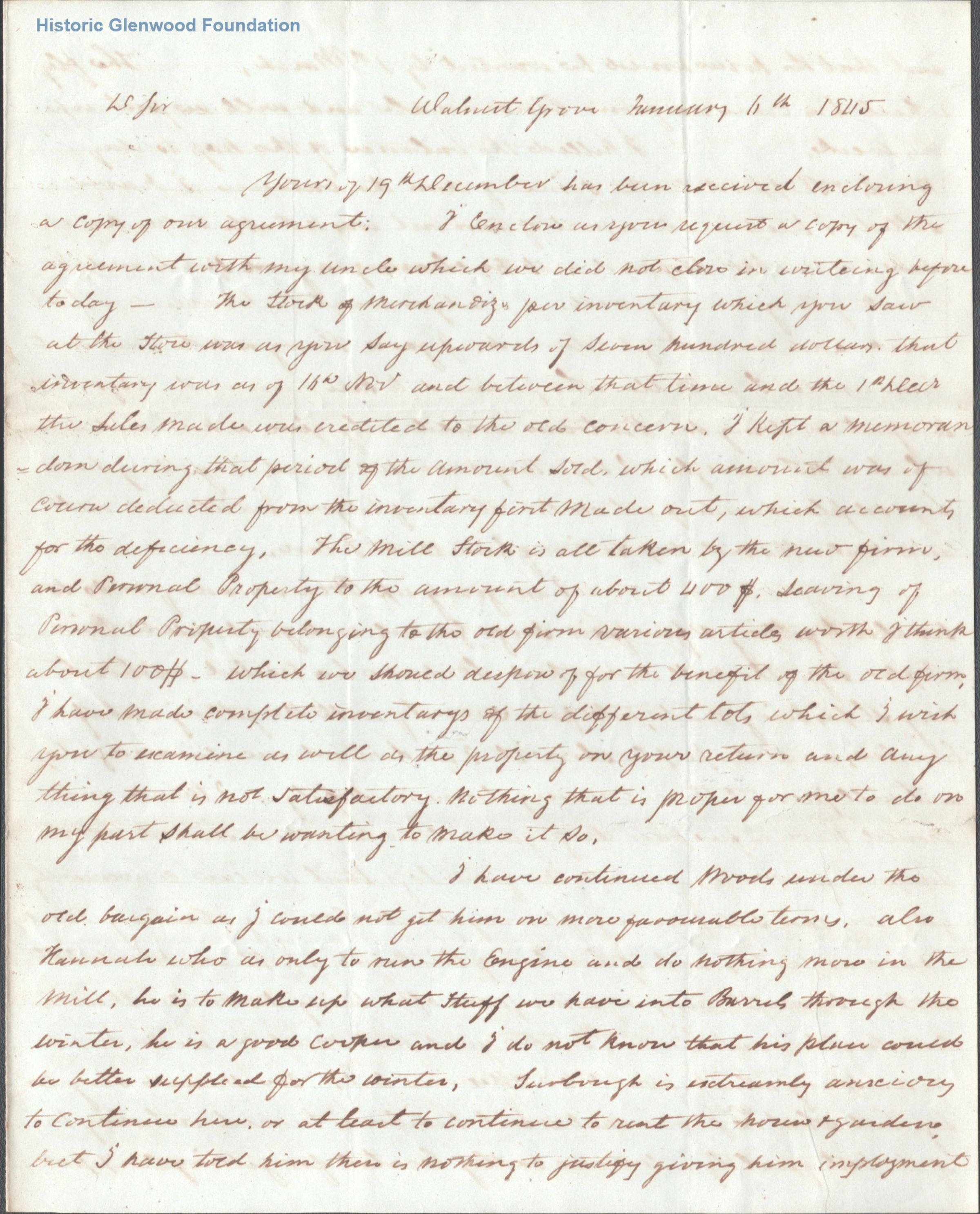3+ page letter to Judge George Summers from William Millan at Walnut GroveDate(s) of Creation