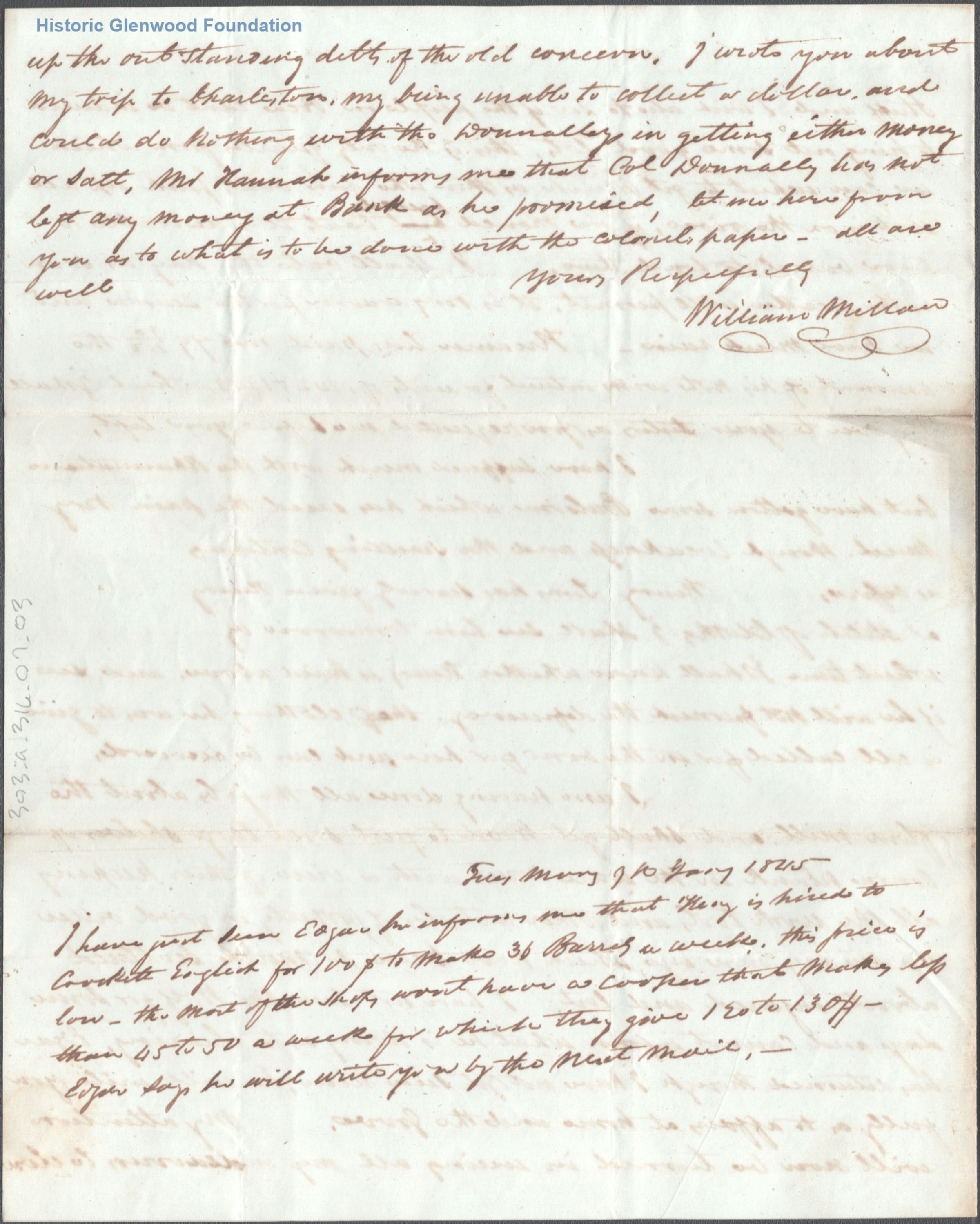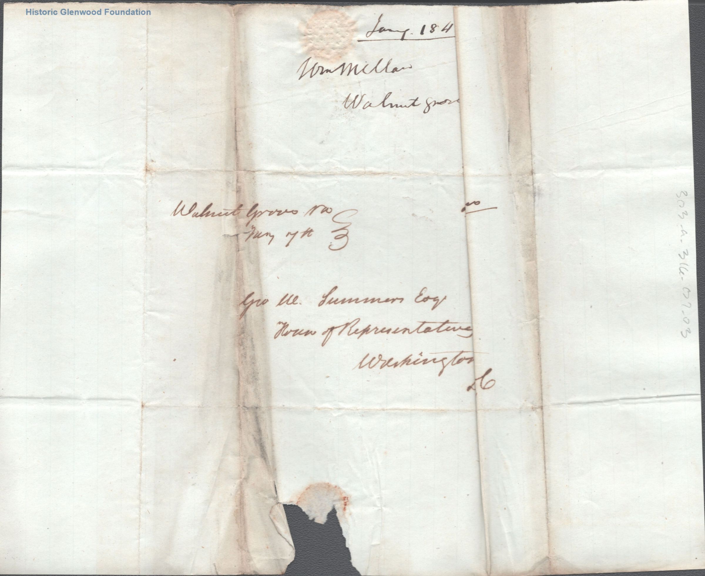 Letter to Judge George Summers from William Millan, January 6, 1845Entry/Object ID