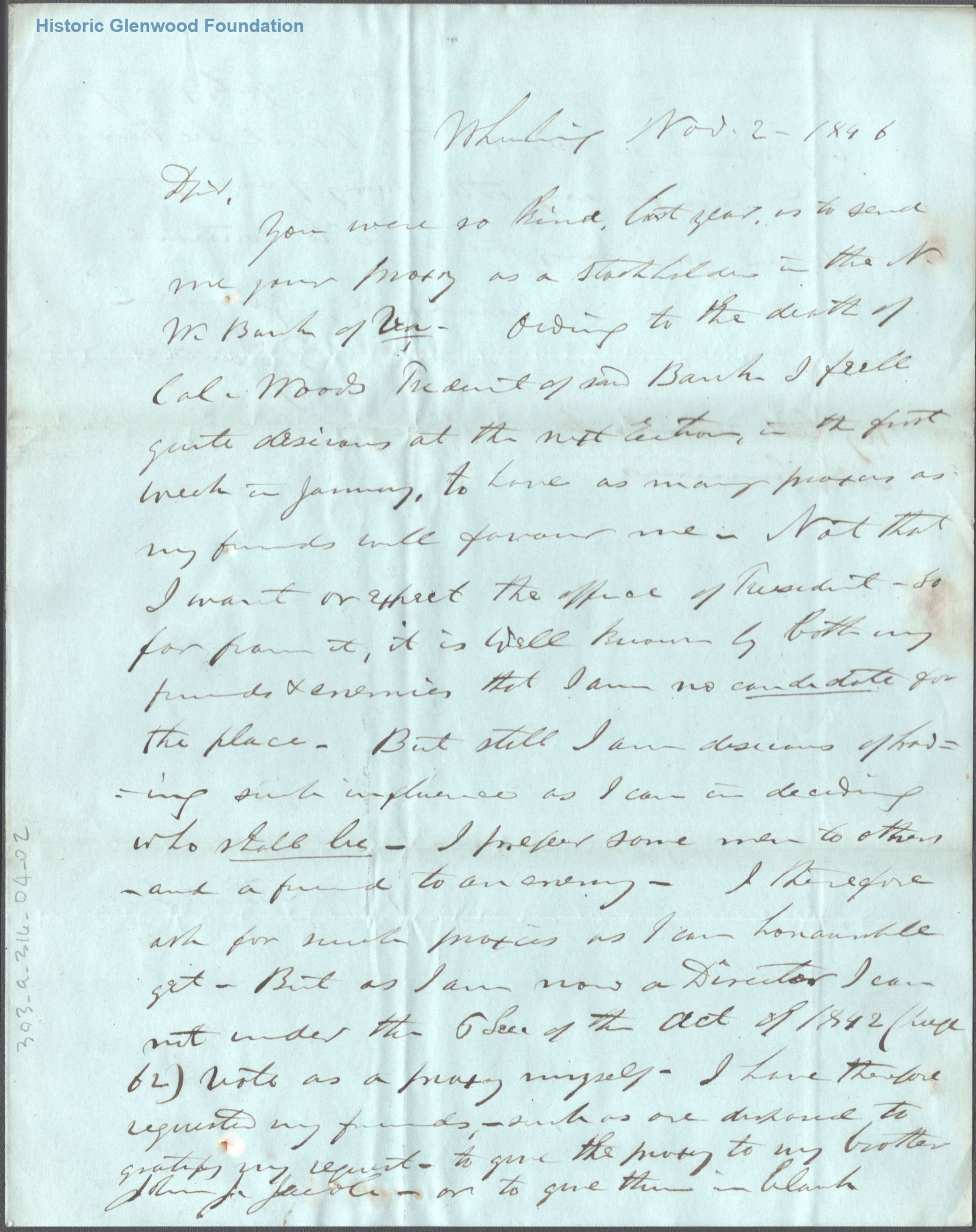 Letter to Judge George Summers from Z. Jacob, November 2, 1846