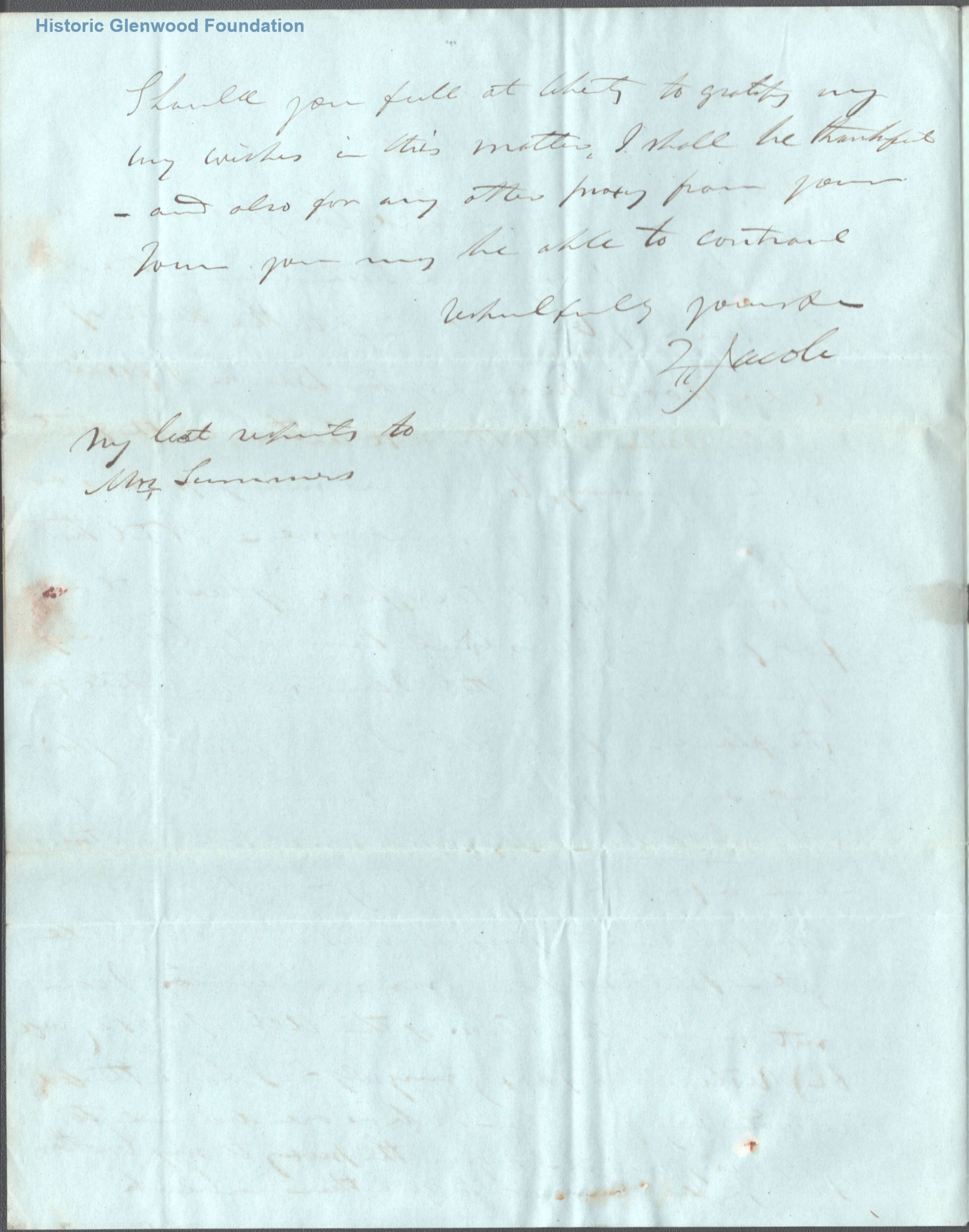1 1/2 page letter to Judge George Summers from Z (Zachariah?) Jacob