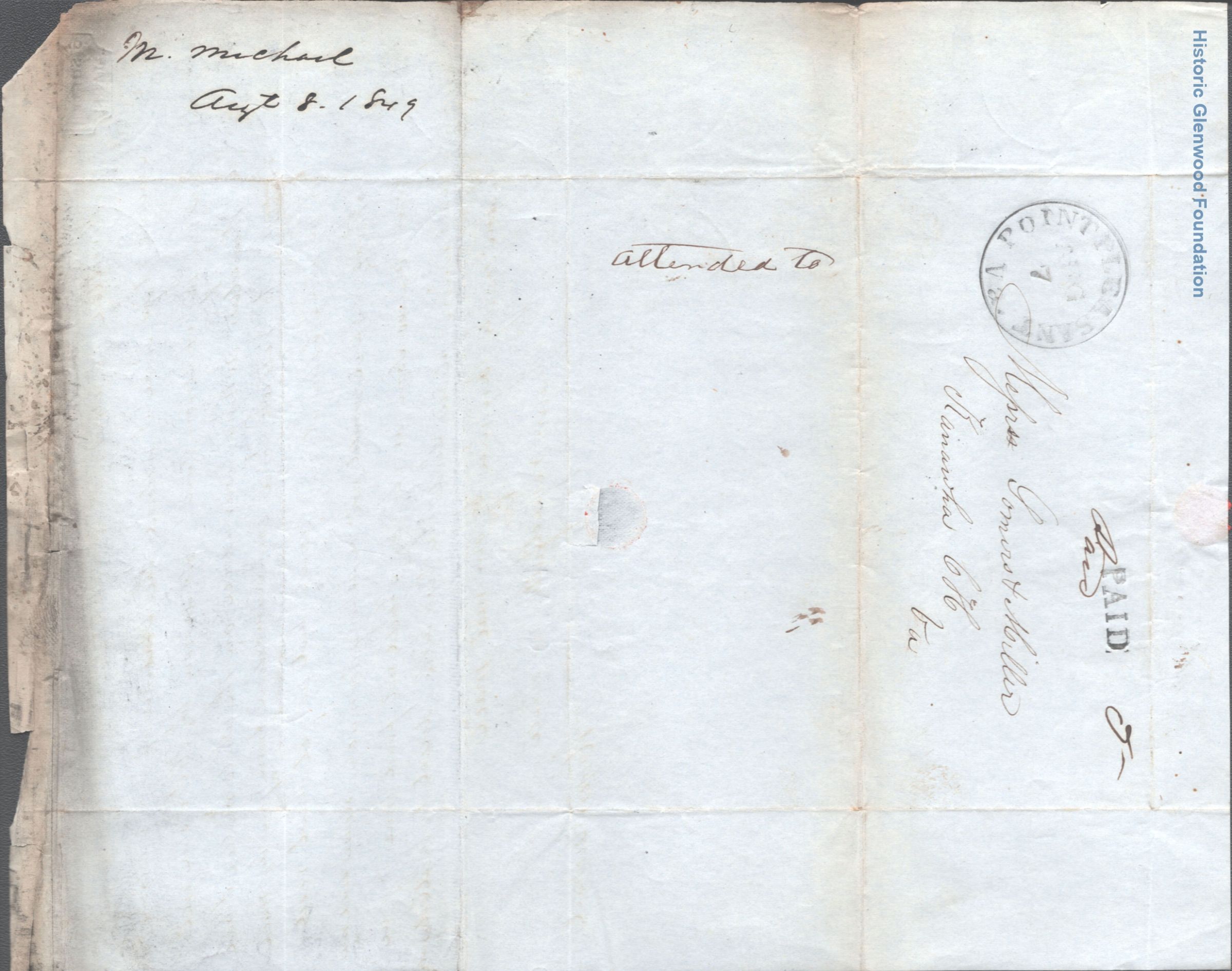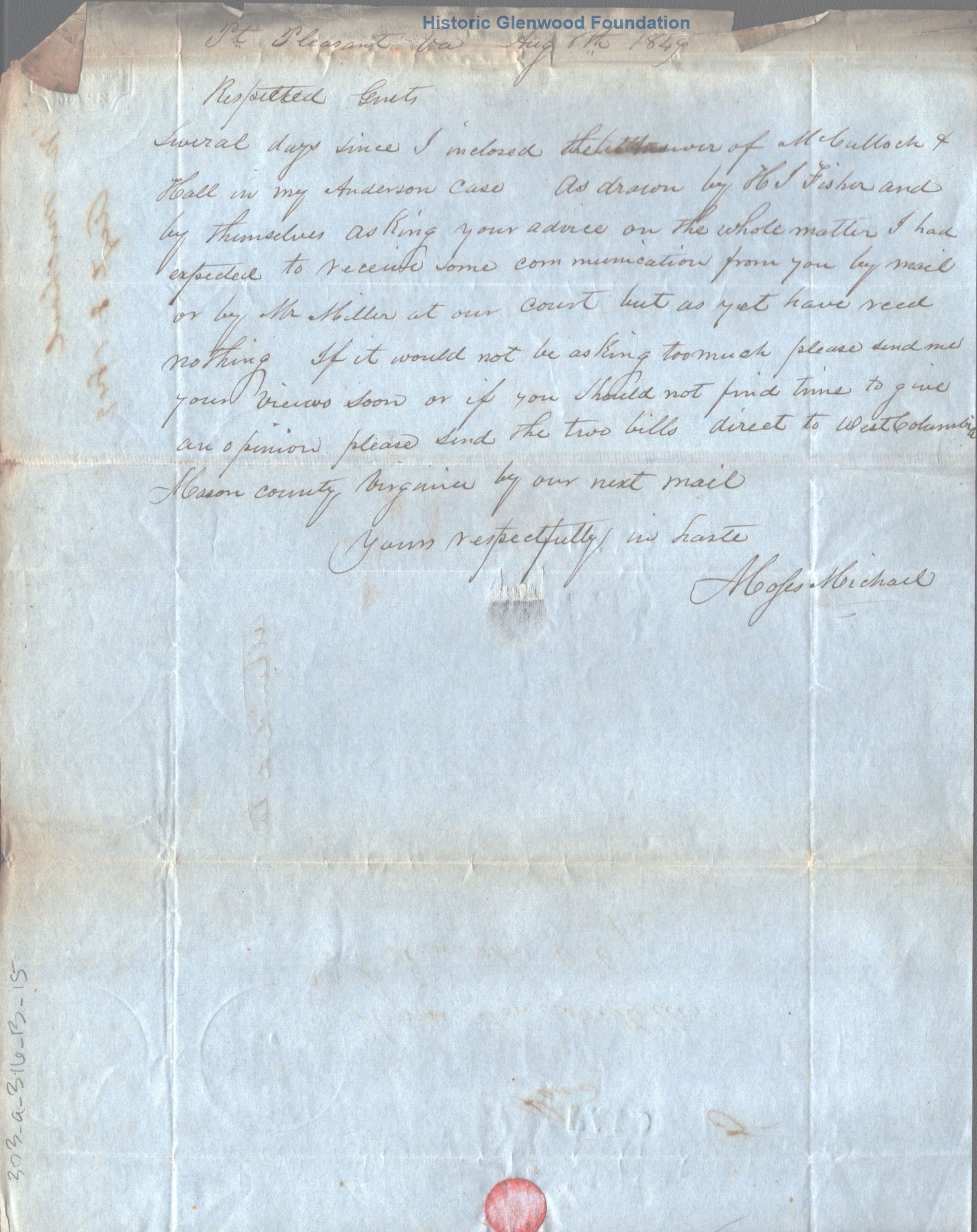 Correspondence from legal client of Summers & Miller: M. Michael; August 8, 1849