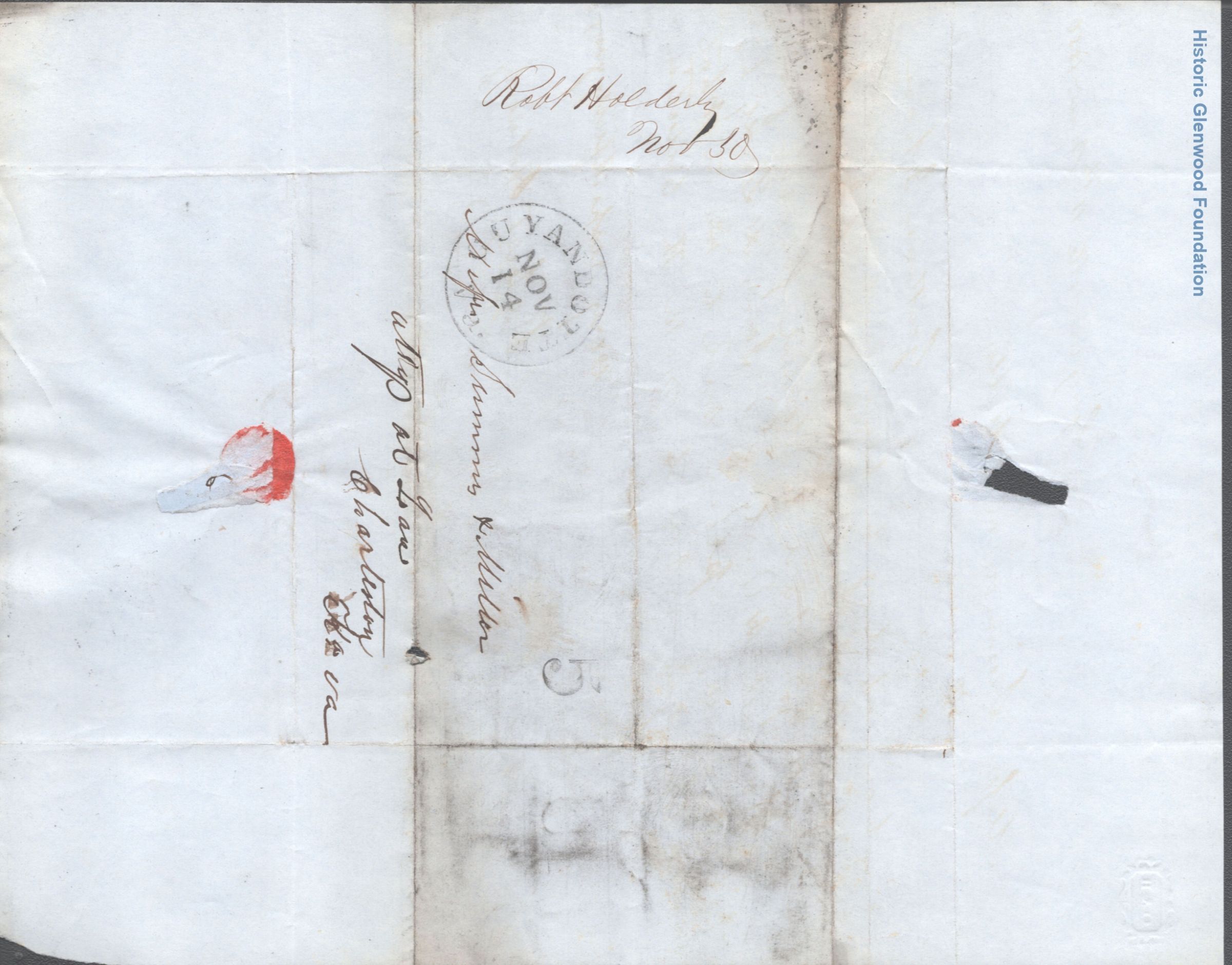 Correspondence from legal client of Summers & Miller: Robert Holderby; November 11, 1850