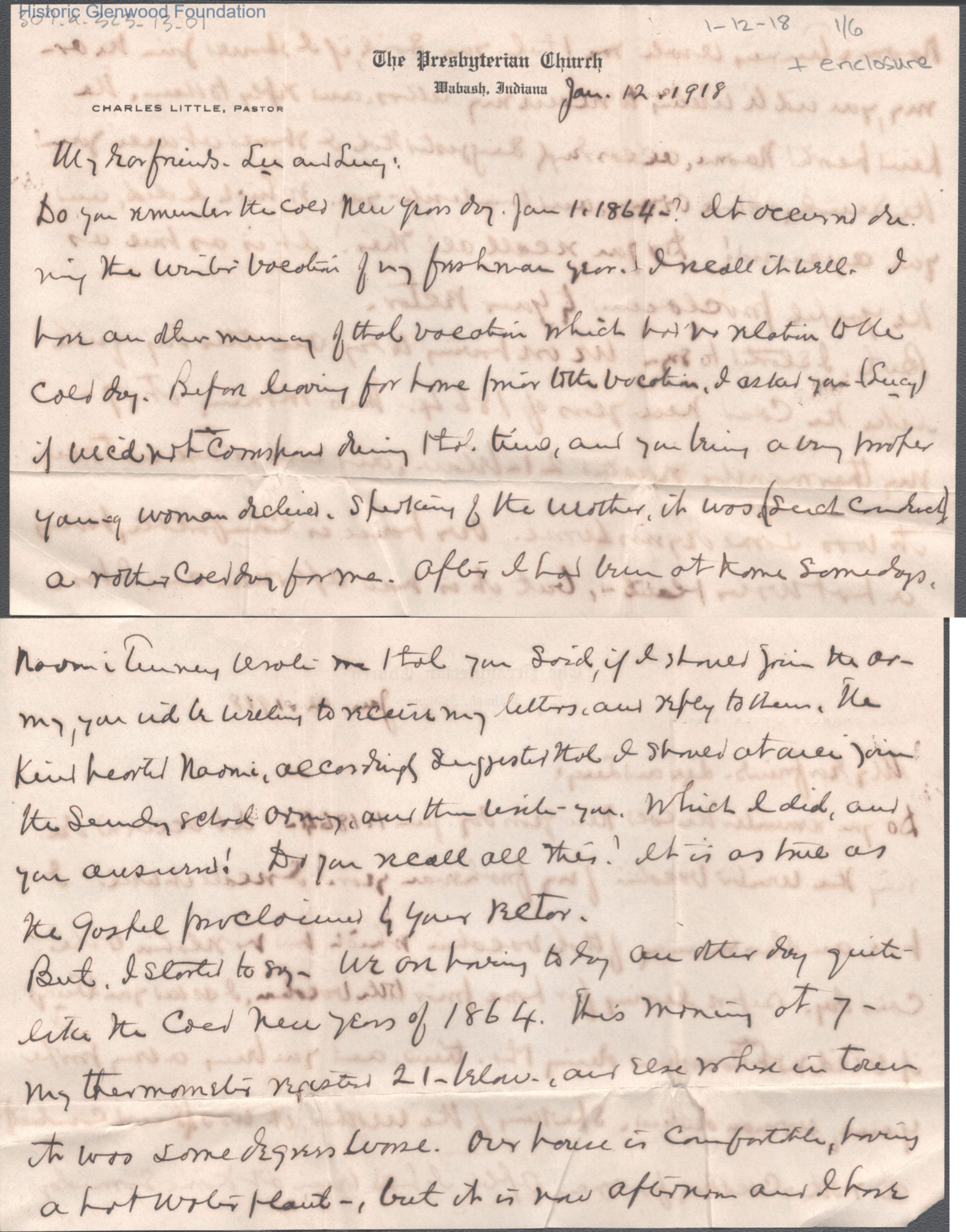 Six-page letter with enclosure to Lewis & Lucy W. Summers from Charles Little, Jan 12, 1918.