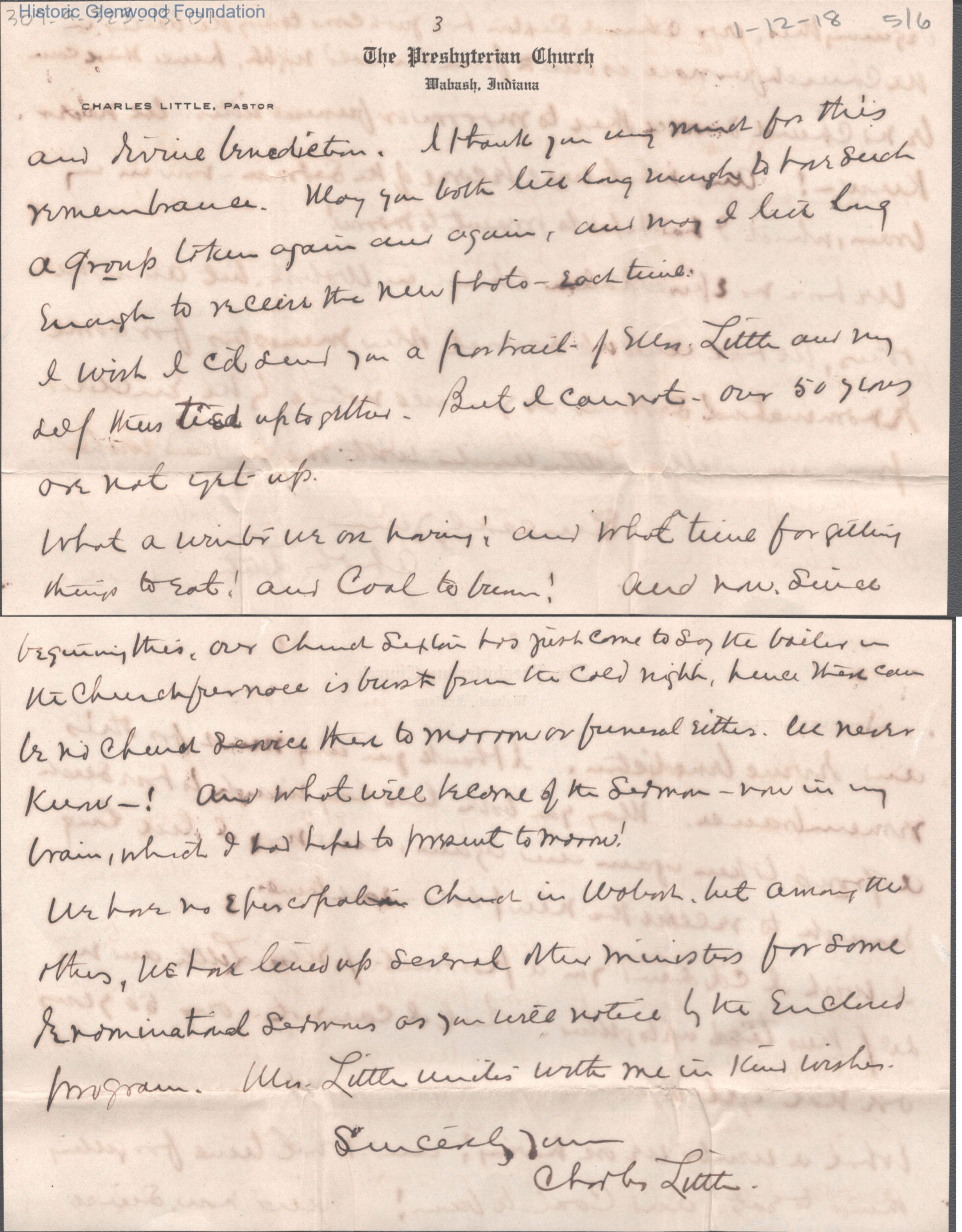 Lewis & Lucy W. Summers from Charles Little, Jan 12, 1918