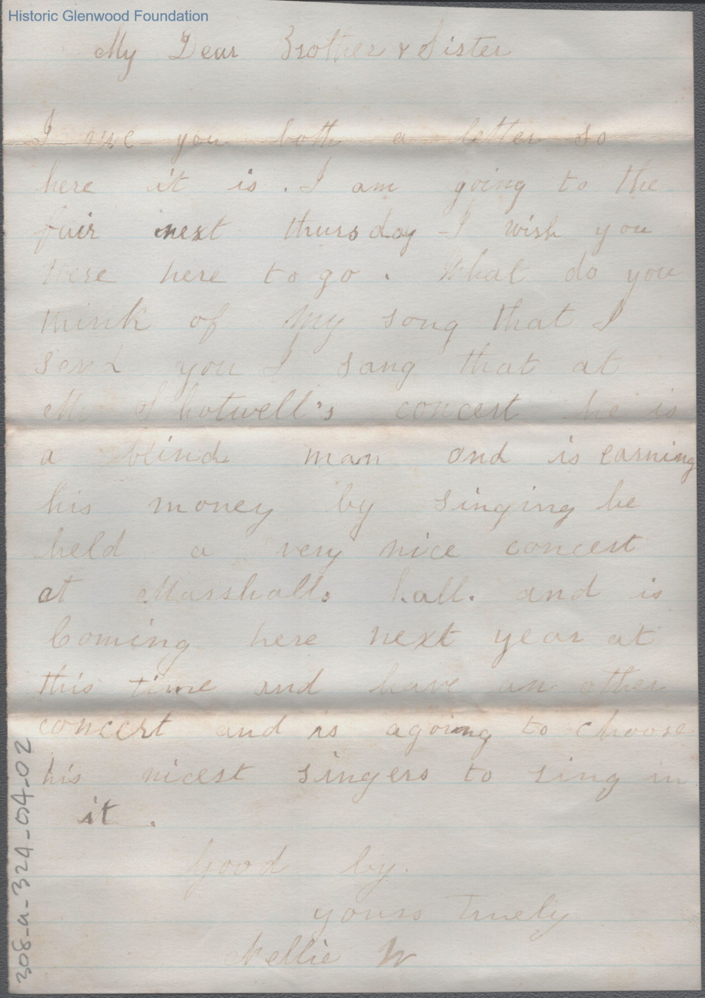 Single page letter to Lewis & Lucy W. Summers from Lucy's sister Ellen W. Follett, no date.