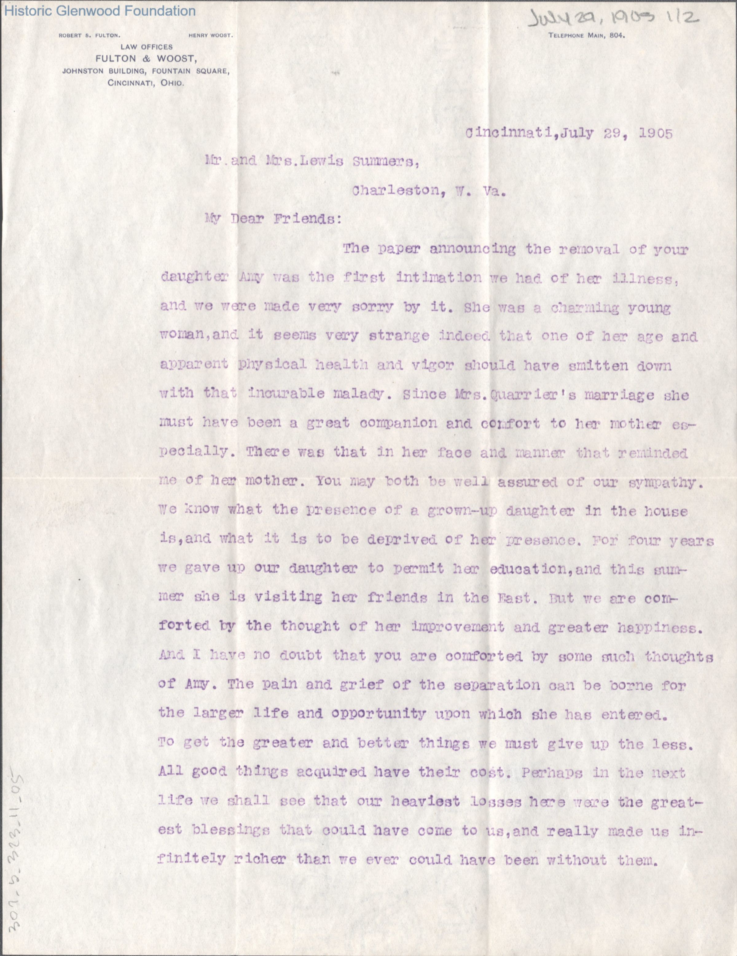 Lewis & Lucy W. Summers from Robert S. Fulton, Jul 29, 1905