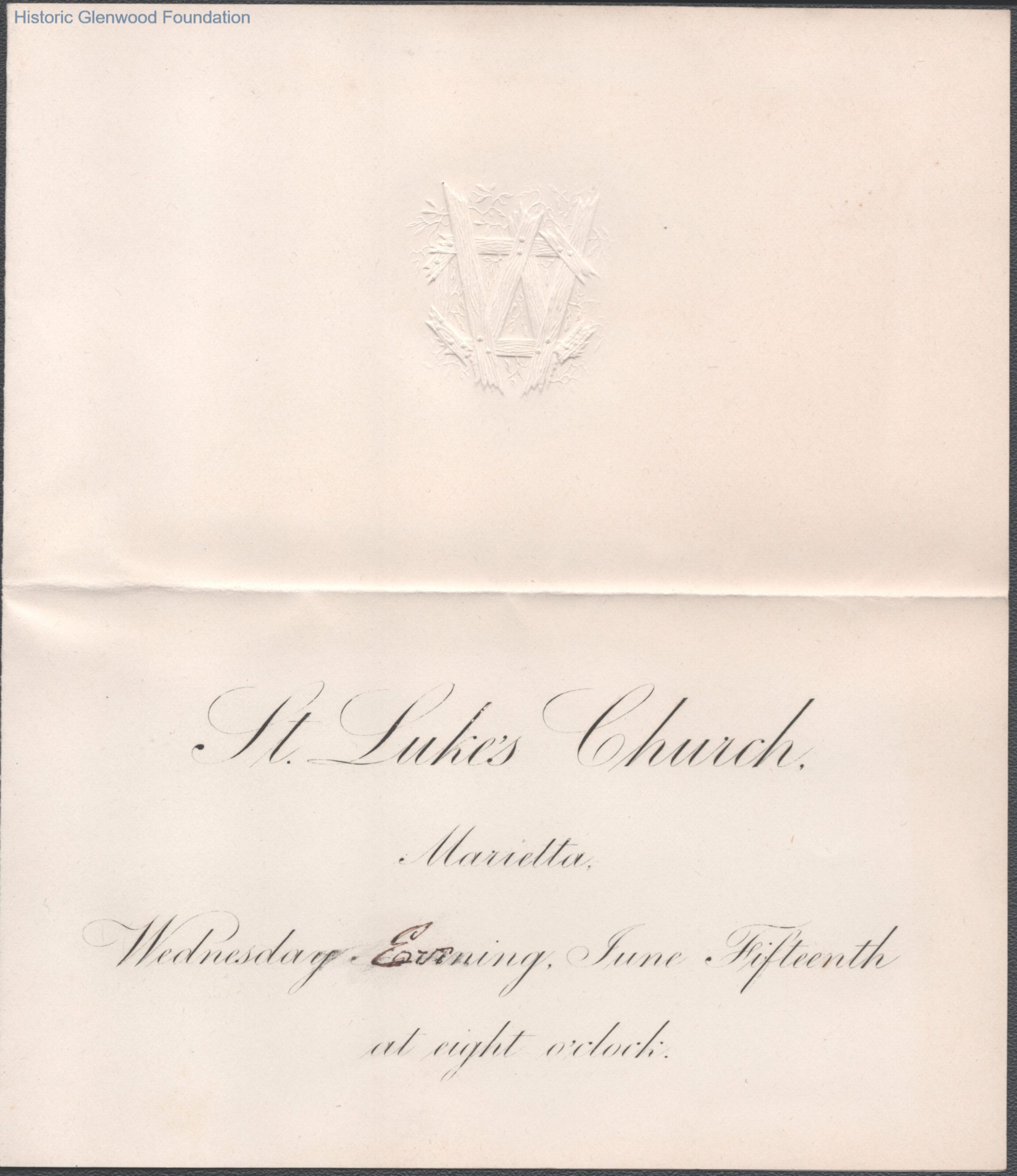 Invitation to St. Luke's Church in Marietta, Ohio, no year (although "Wednesday June 15" with time is noted).