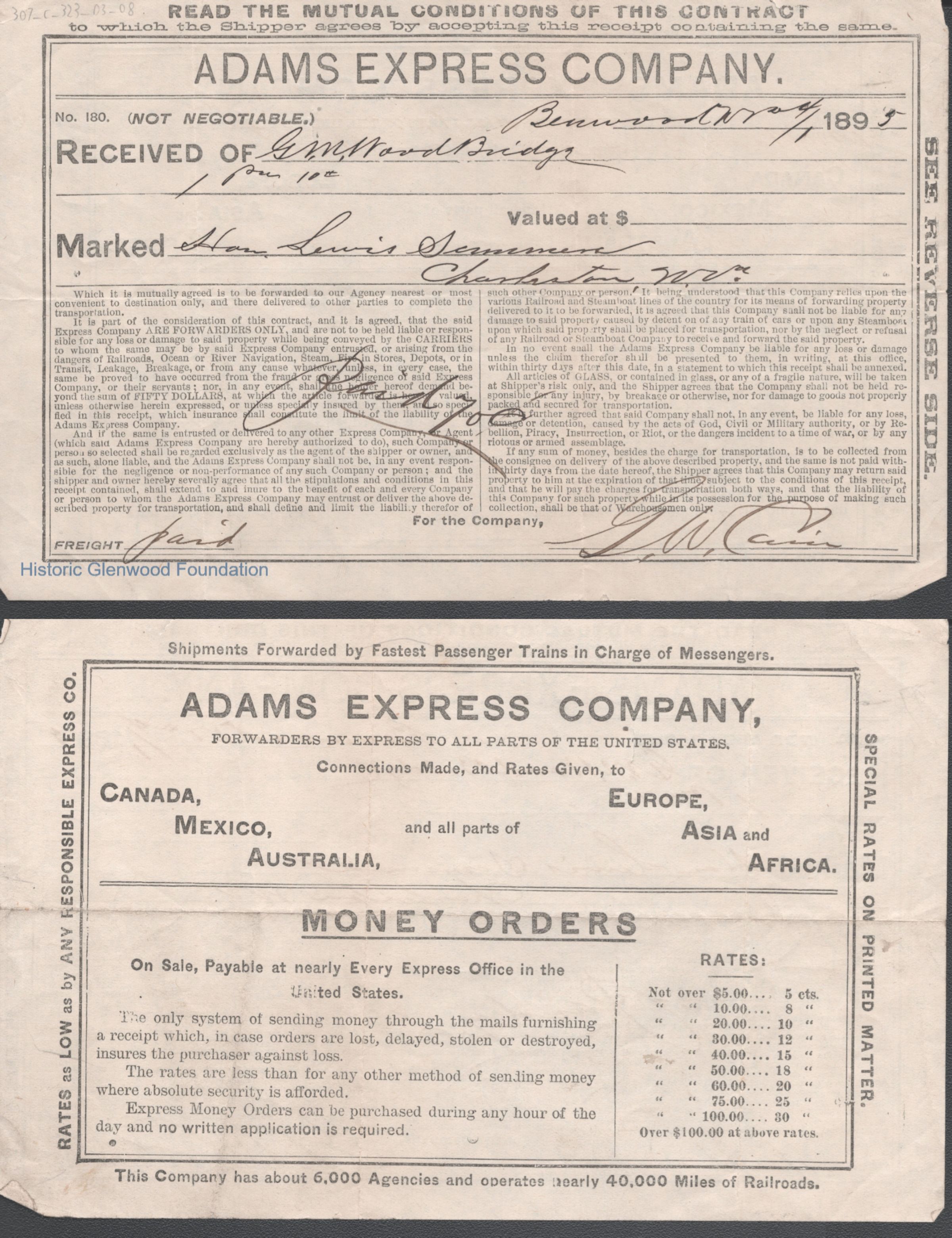 Lewis Summers, Adams Express Company check