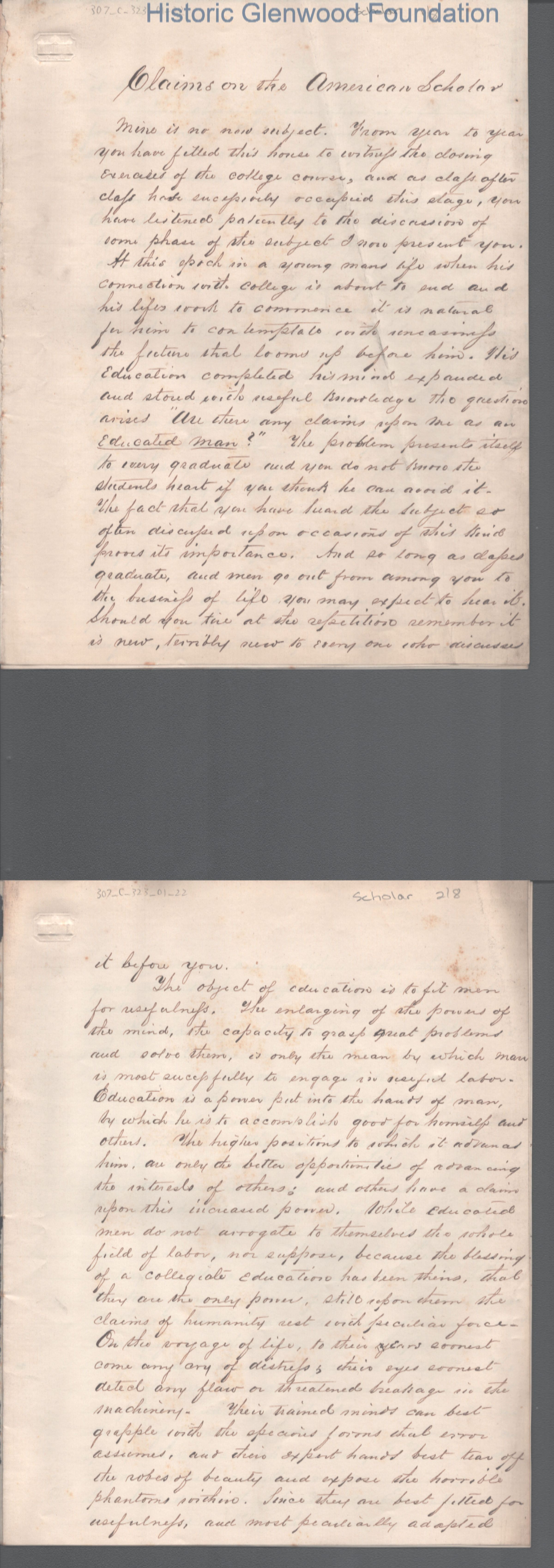 Lewis Summers, composition "Claims on the American Scholar"