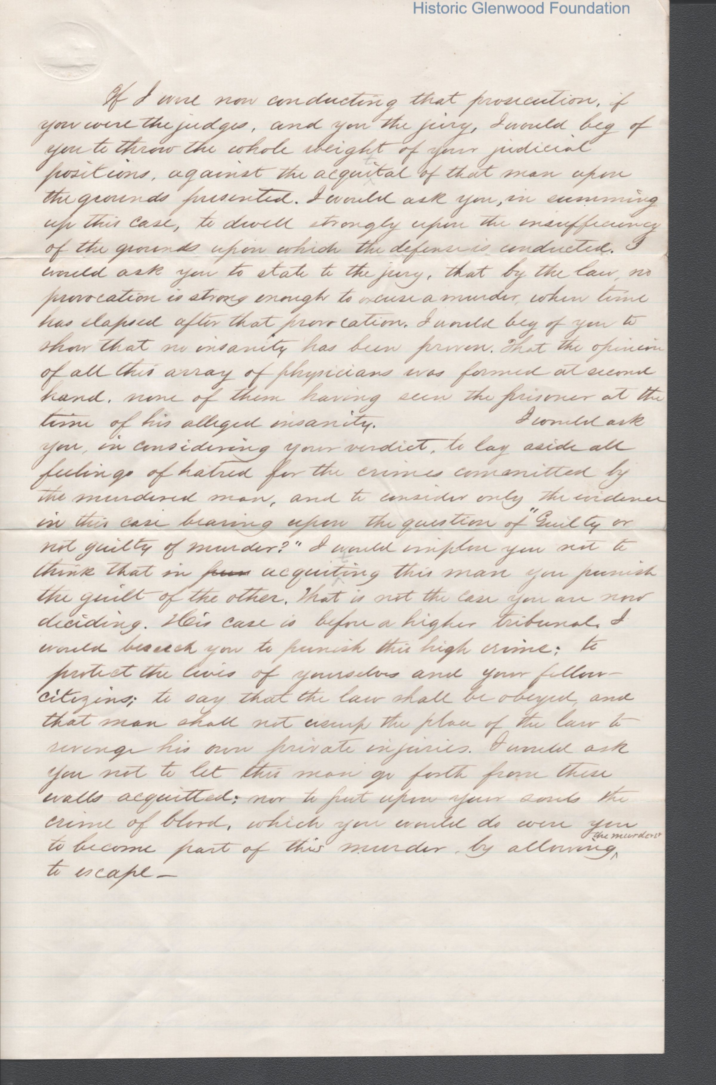 Lewis Summers, composition on "Murder as a crime against mankind"