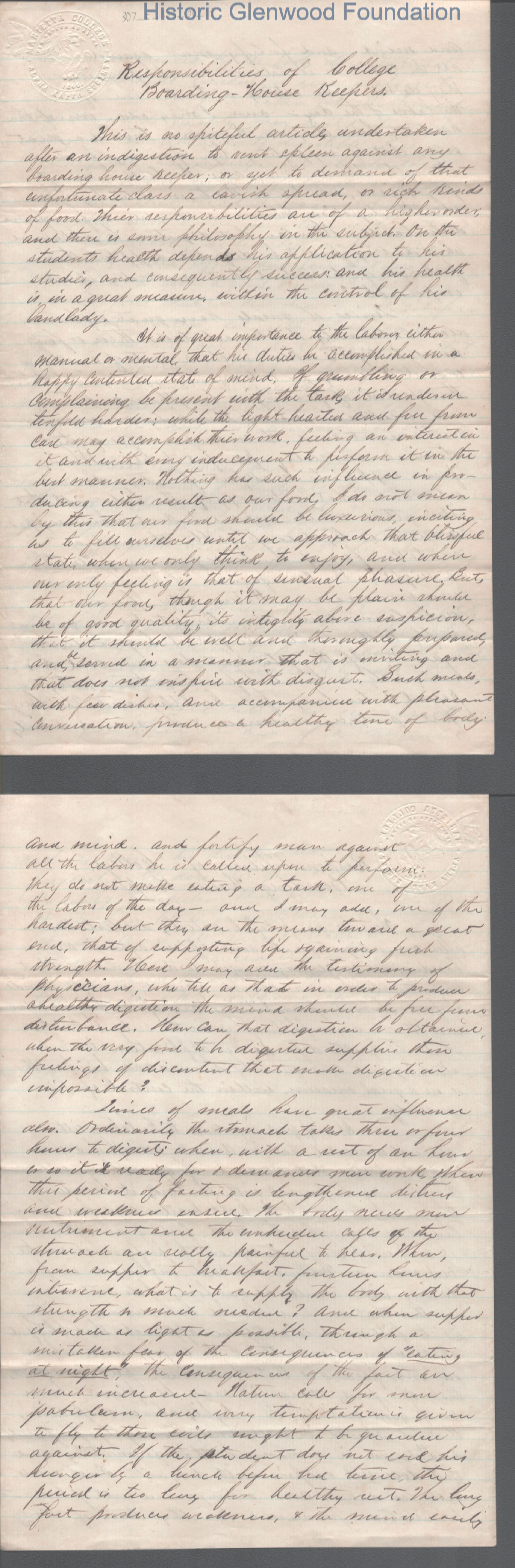 Lewis Summers, composition Responsibilities of College Boarding- House Keepers.