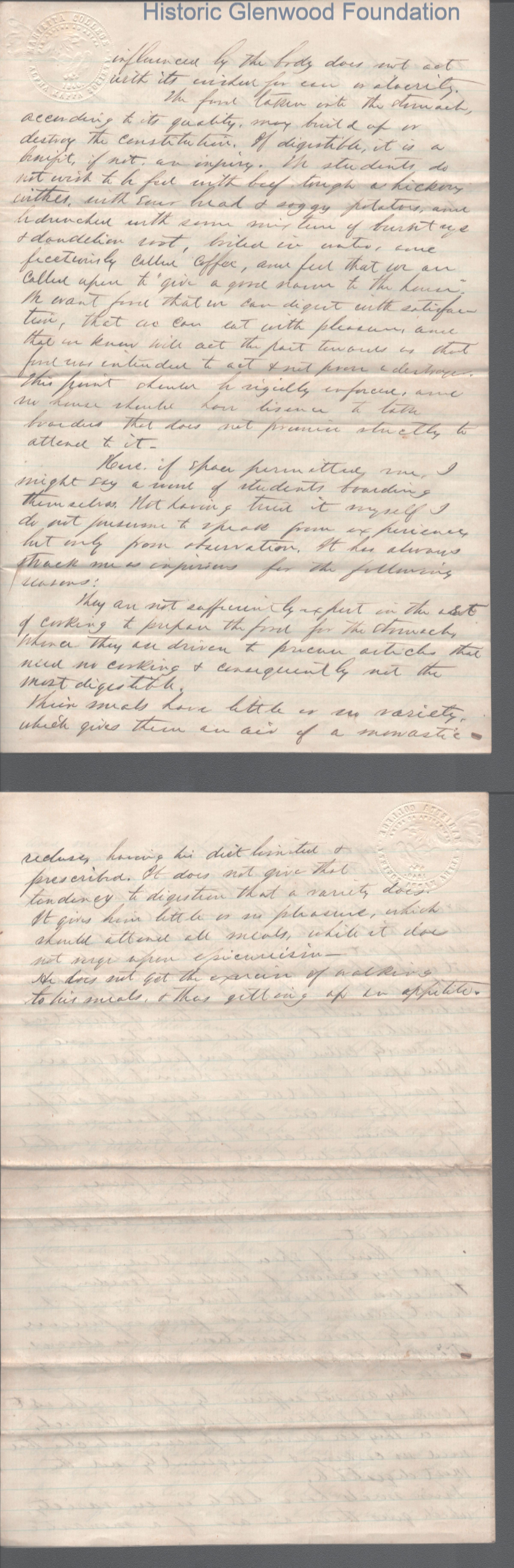 Lewis Summers, composition "Responsibilities of College Boarding- House Keepers."