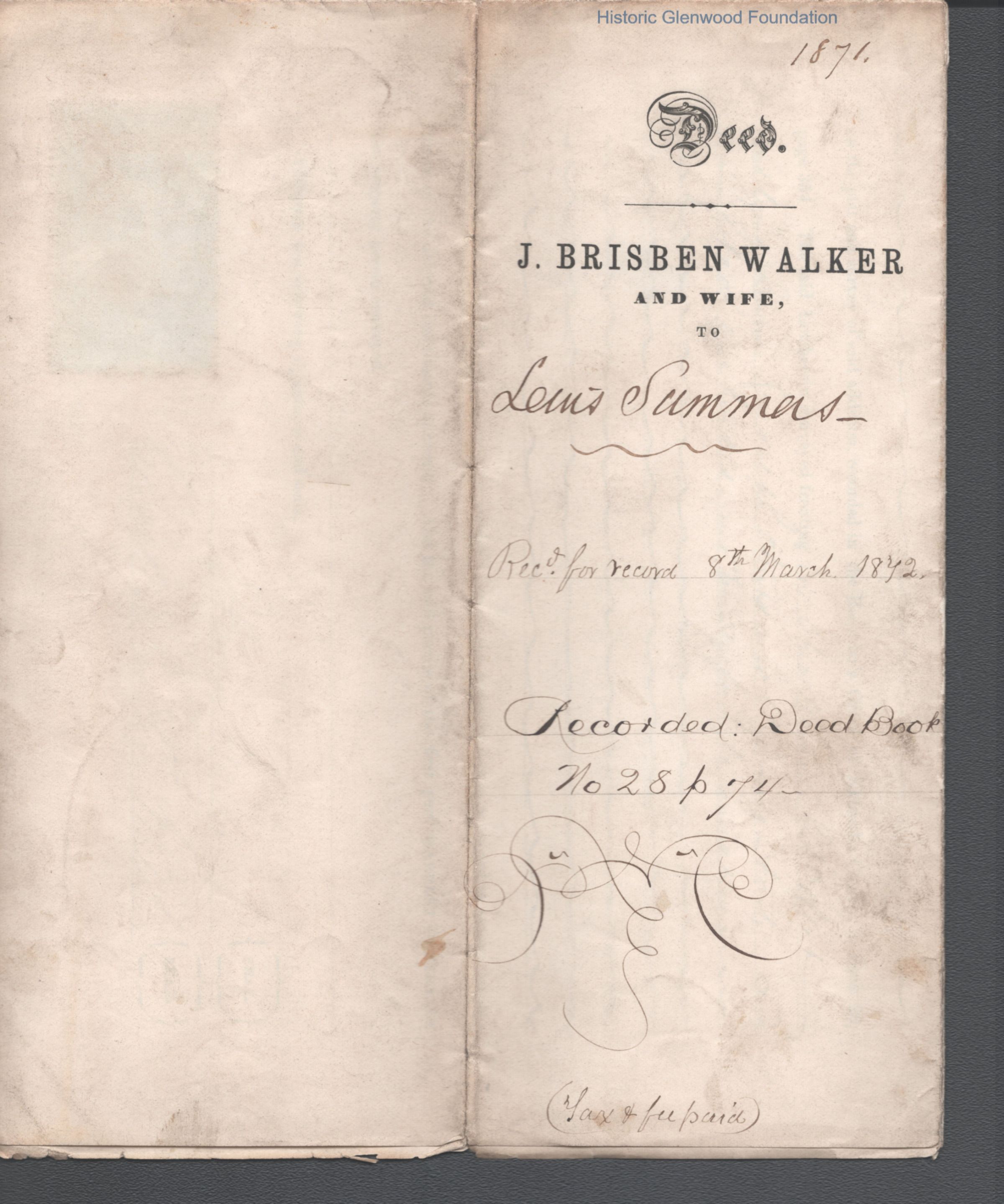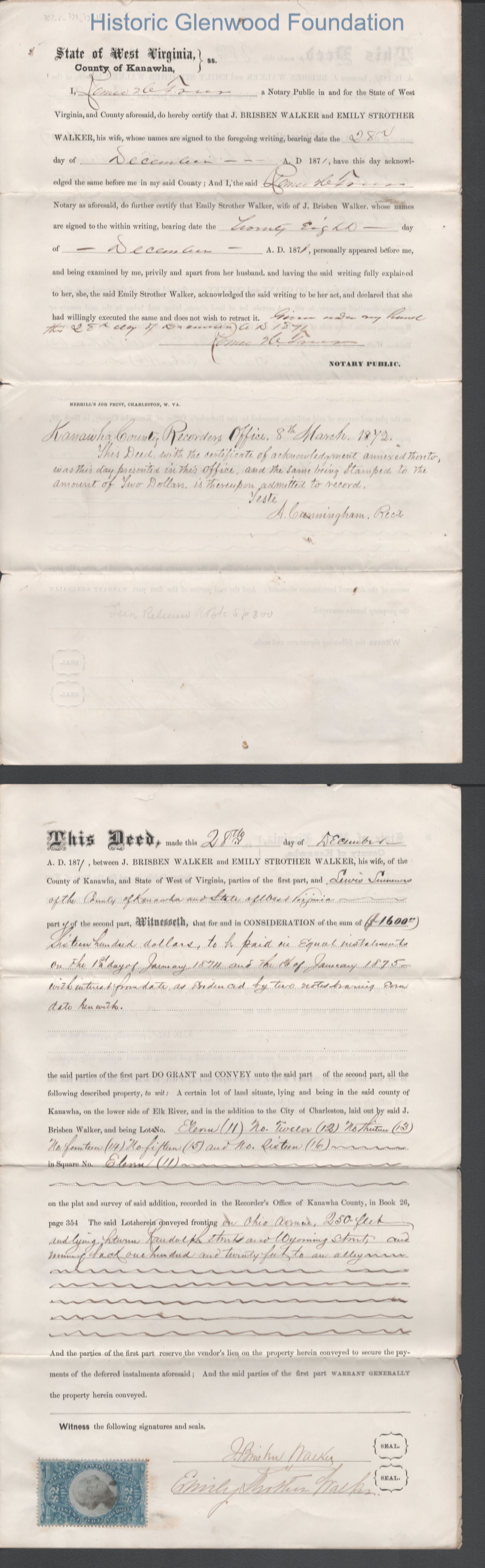 Lewis Summers, Property purchase from Brisben Walker and Emily Walker; December 28, 1871